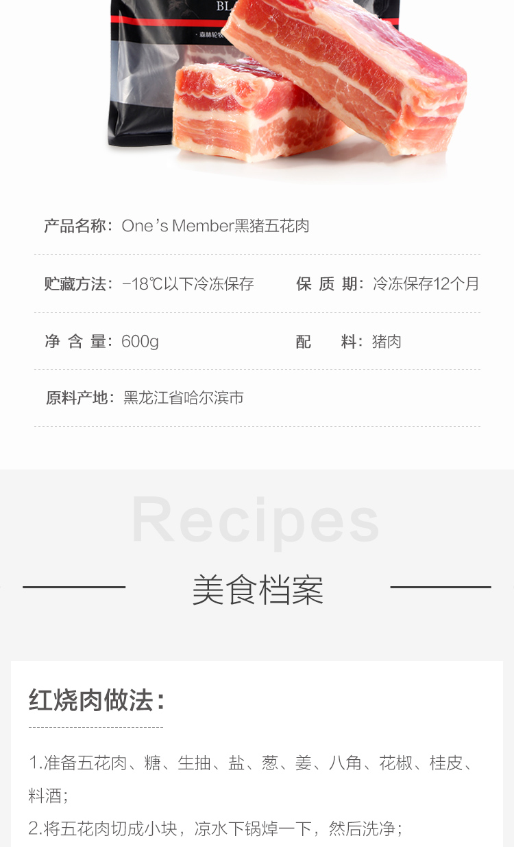 1号会员店 黑猪五花肉 600g