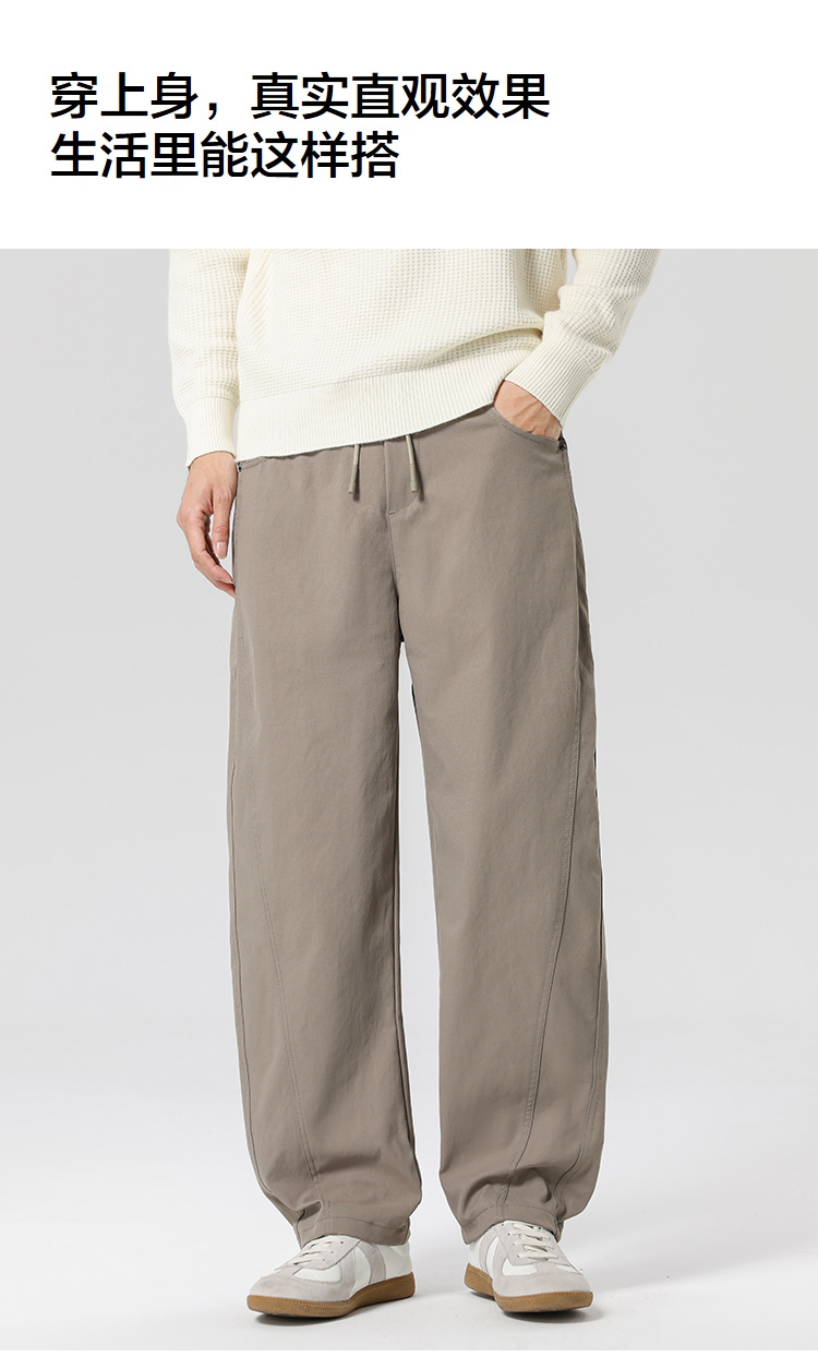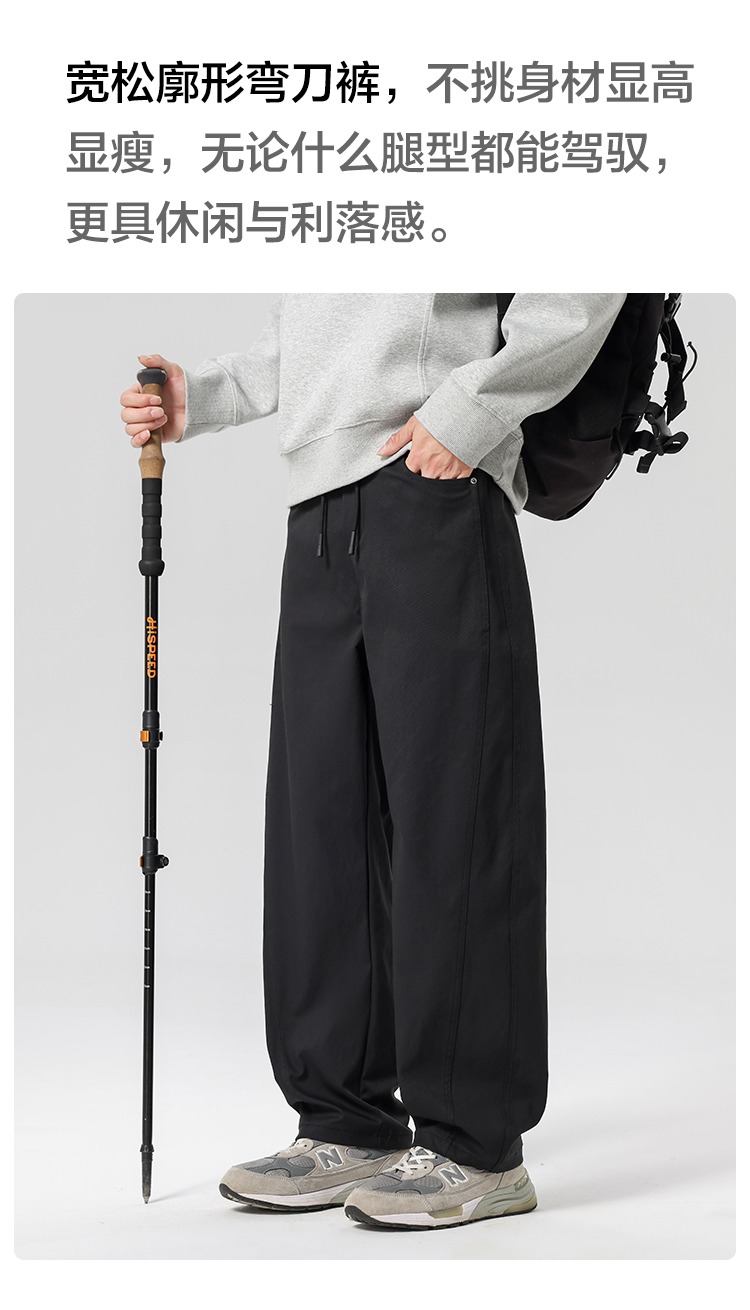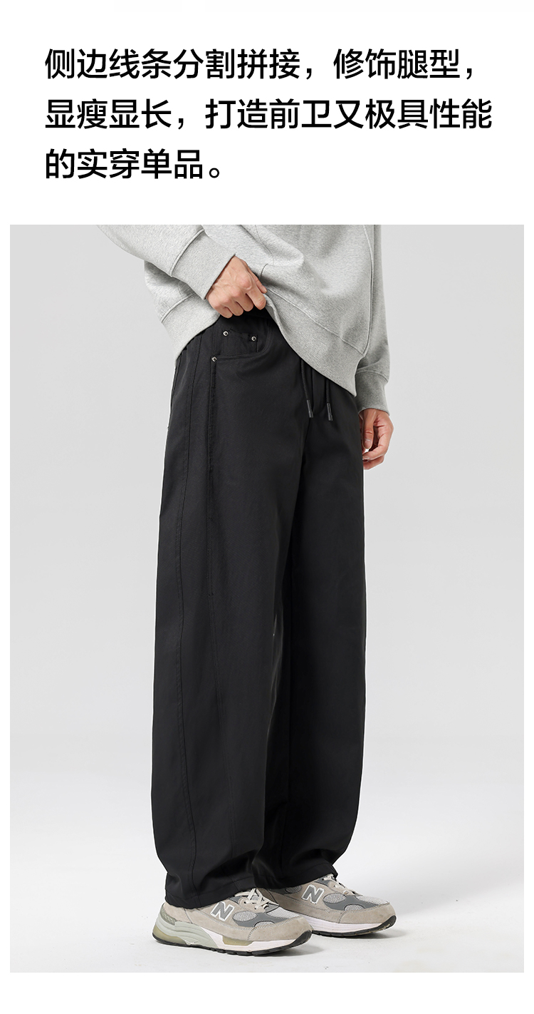 gxgjeans 男装【宽松弯刀裤】25秋款时尚潮流百搭男士休闲裤纯色系带通勤裤男K&C