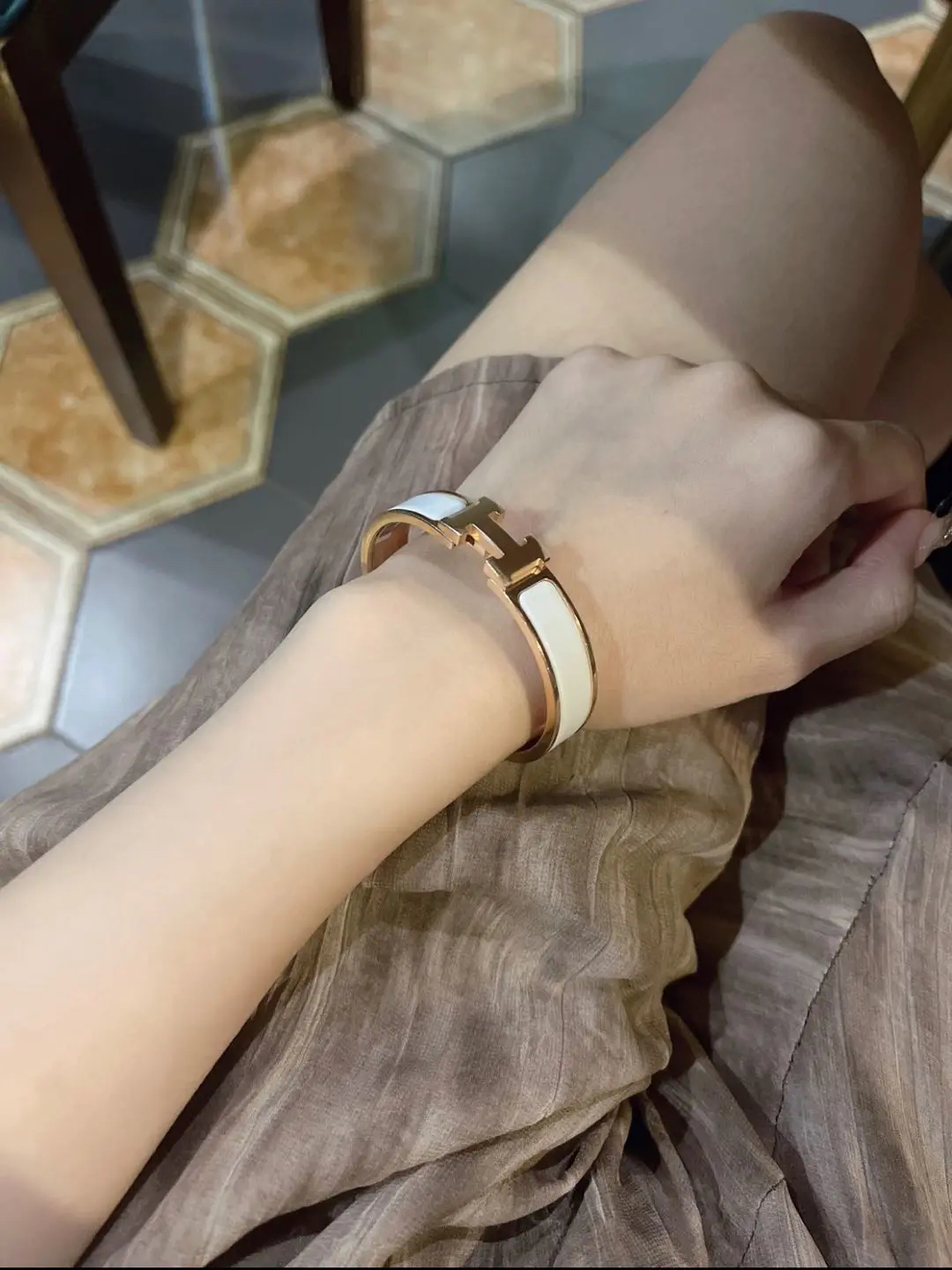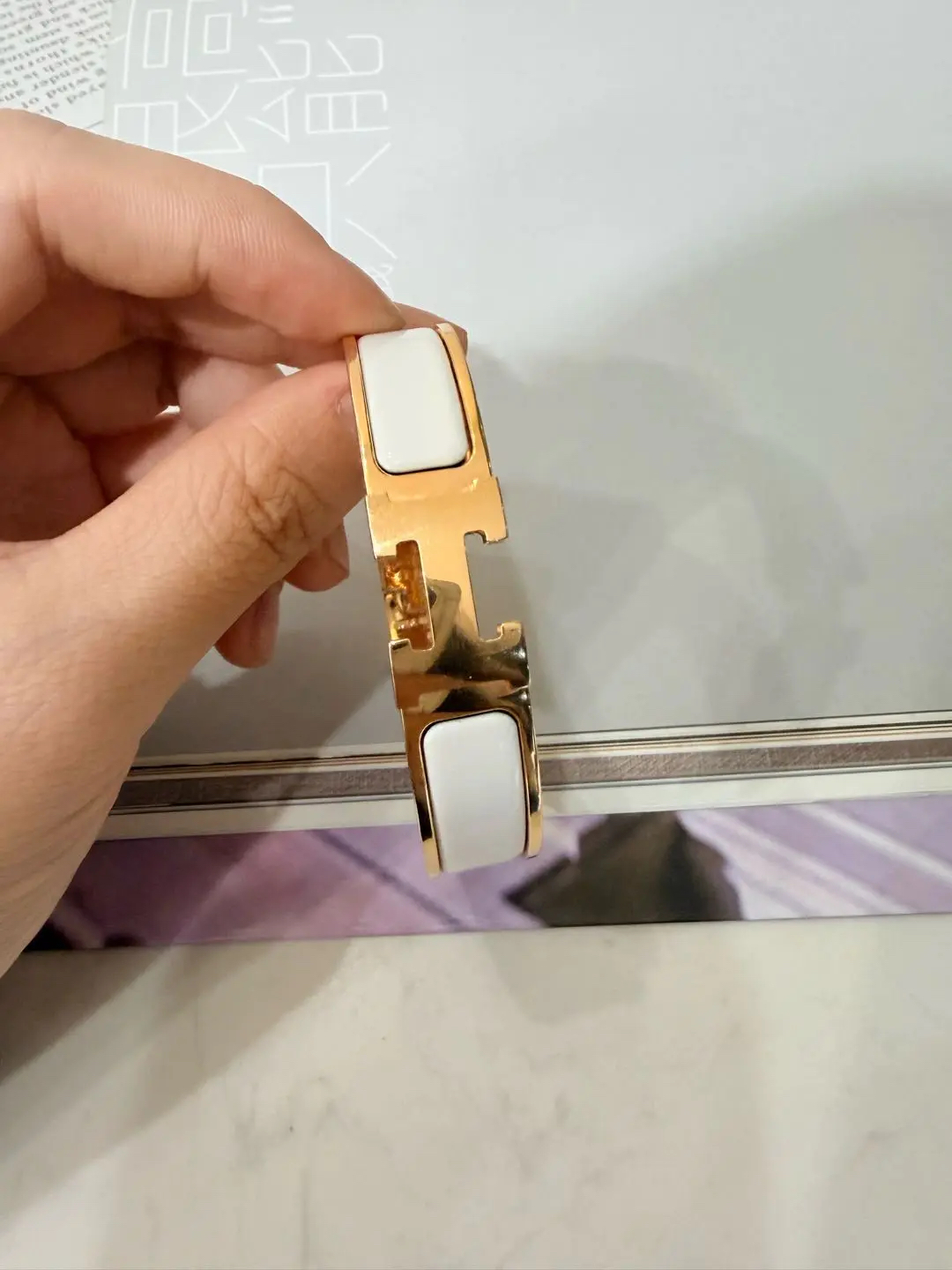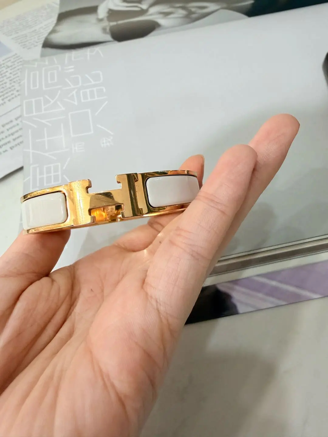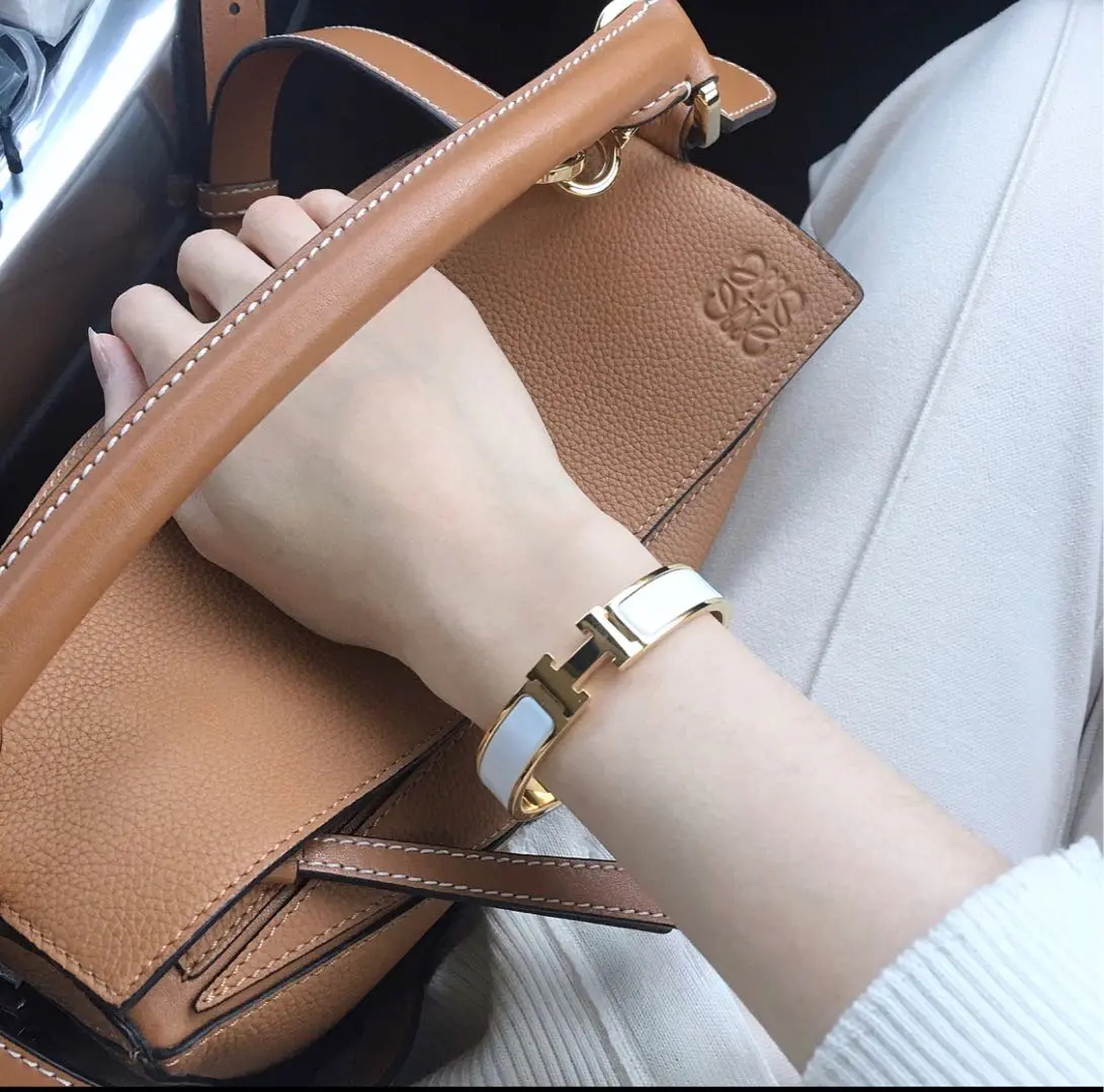 【商品详情】正品二手 爱马仕 H 小号 白金色 珐琅 手镯🎡 98新 17cm 全套配件:票 吊牌 说明书 防尘袋 盒子。时尚必备单品