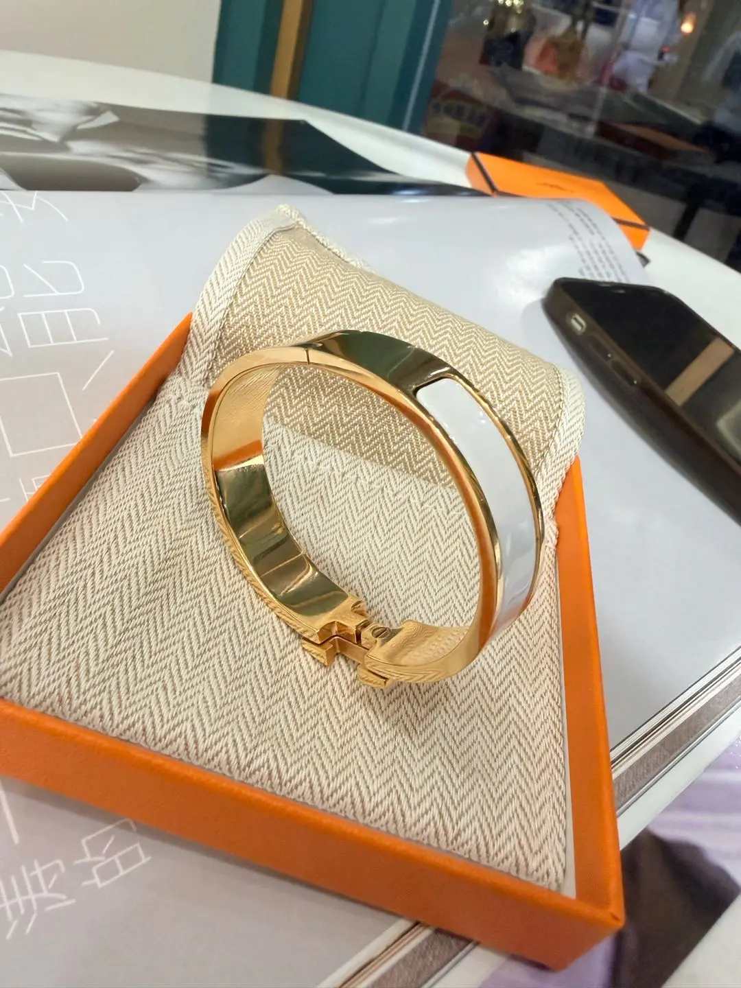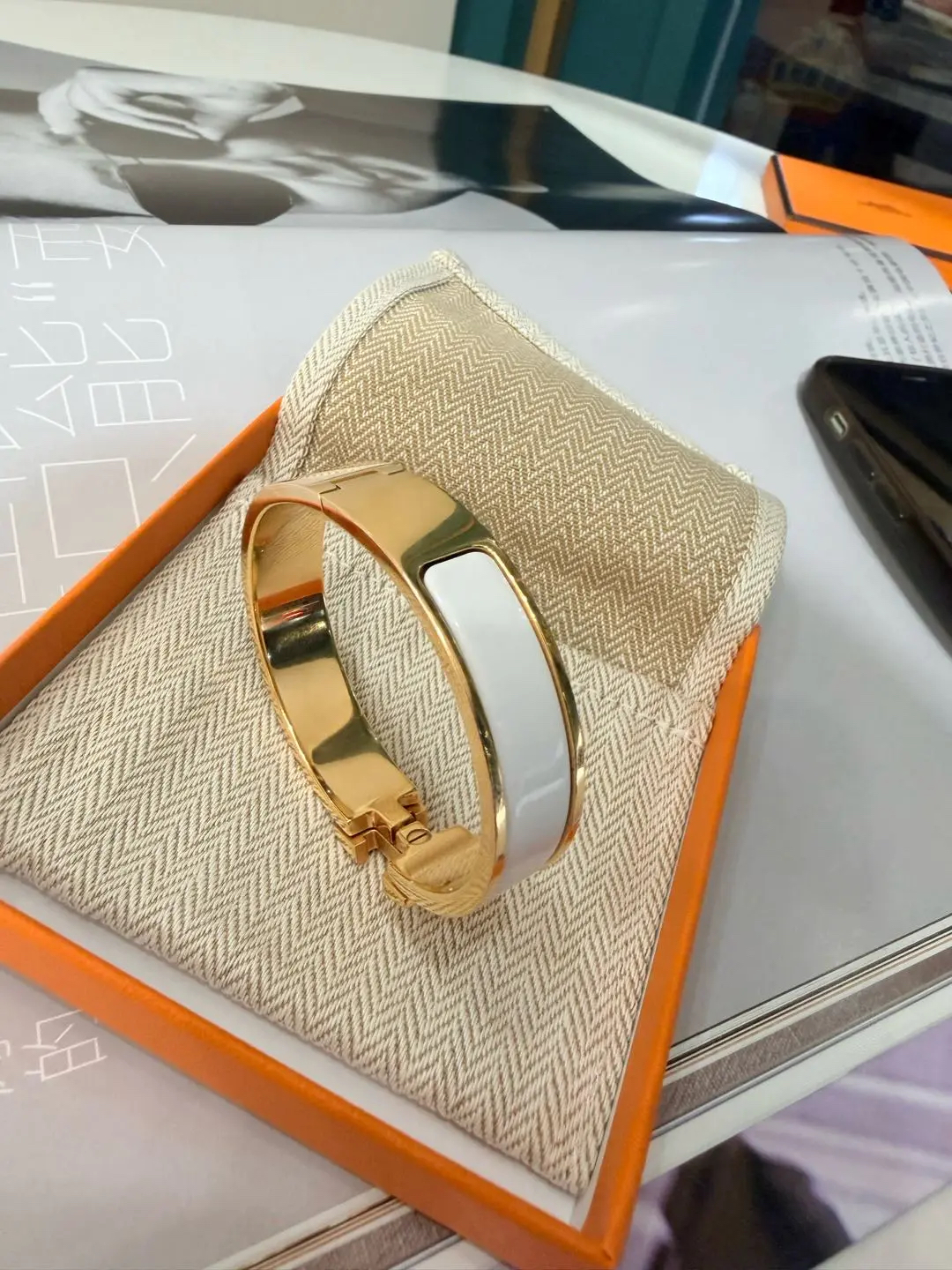 从橙盒到腕间,每一道折痕都藏着仪式感。金白Clic H,让‘高级’成为触手可及的日常💛