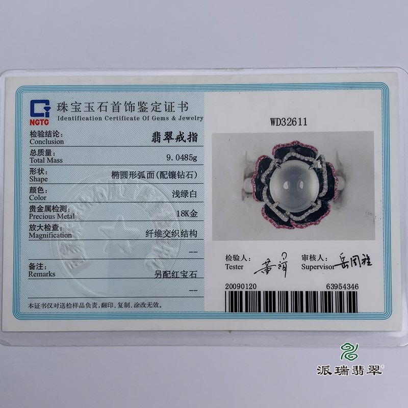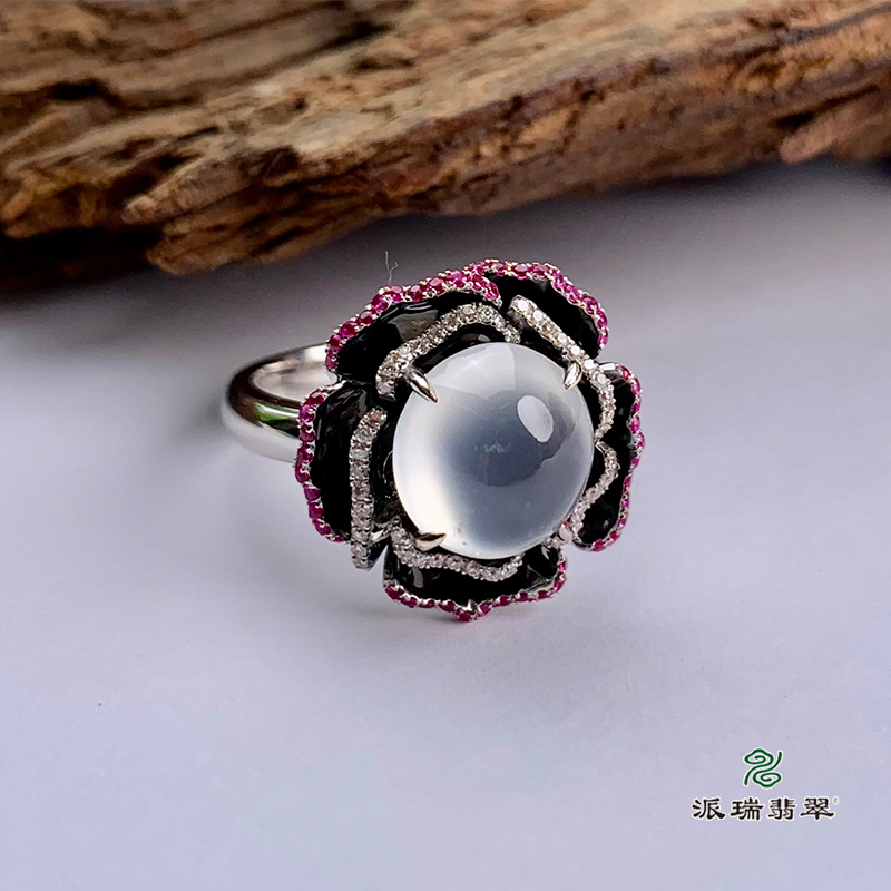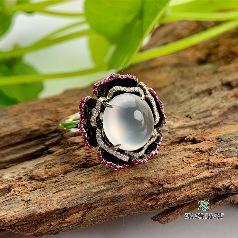 派瑞翡翠 18k金翡翠戒指 冰种 无色