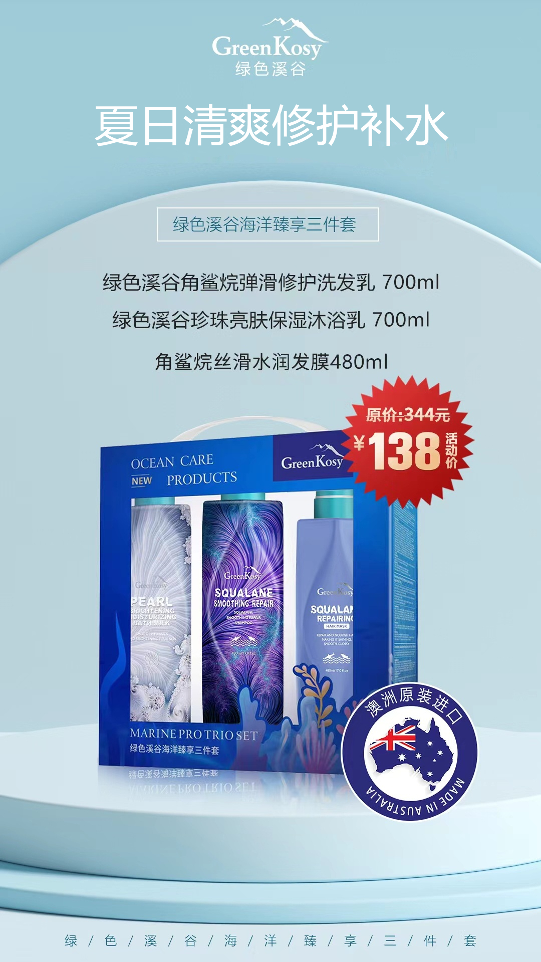 绿色溪谷角鲨烷洗护三件 大 套组 角鲨烷弹滑修护洗发乳700ml+珍珠亮肤保湿沐浴乳700ml+角鲨烷滋养修护发膜480ml