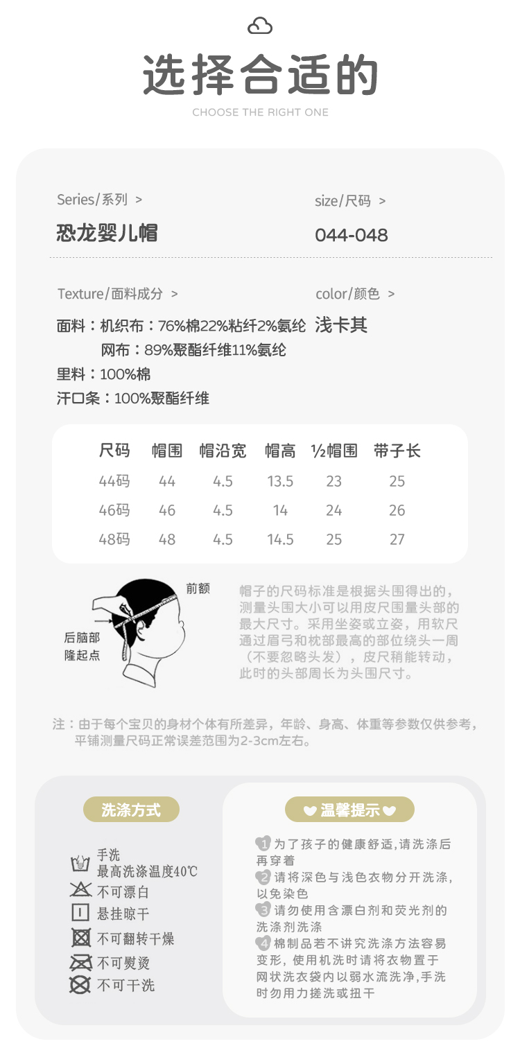 拉比-配饰l类(春)I5恐龙婴儿帽浅卡其LYBD103601