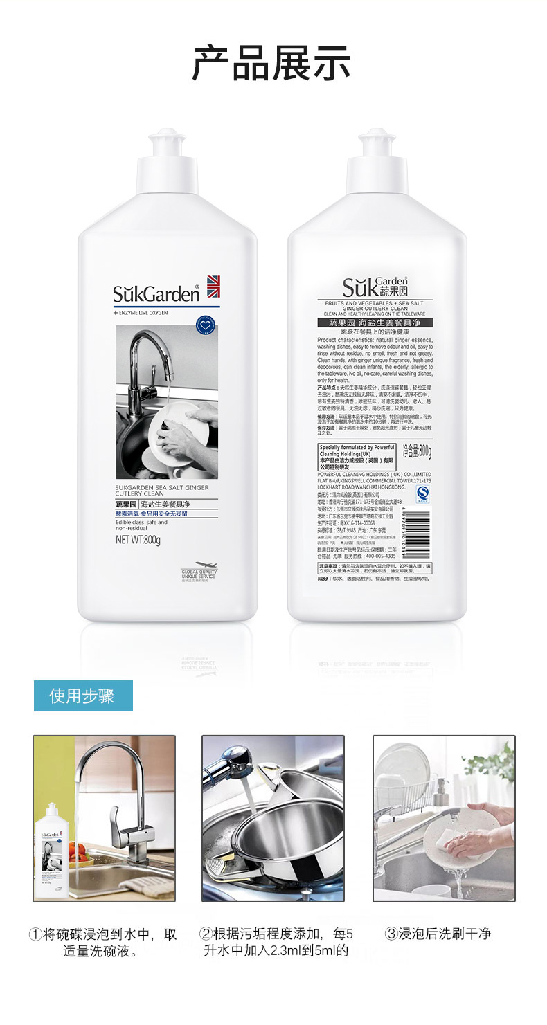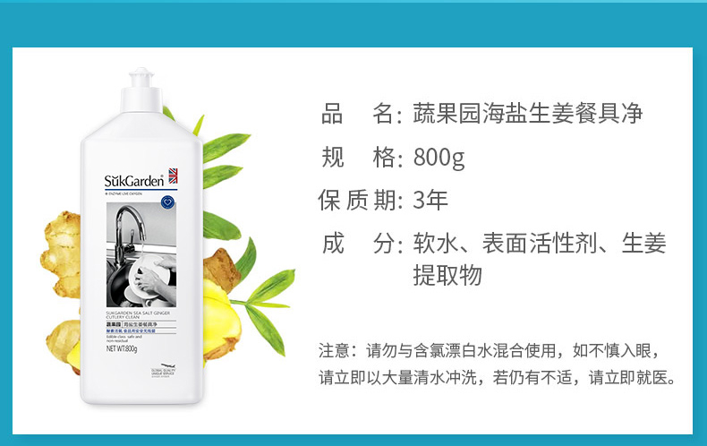 蔬果园海盐生姜洗洁精餐具净800g-2212