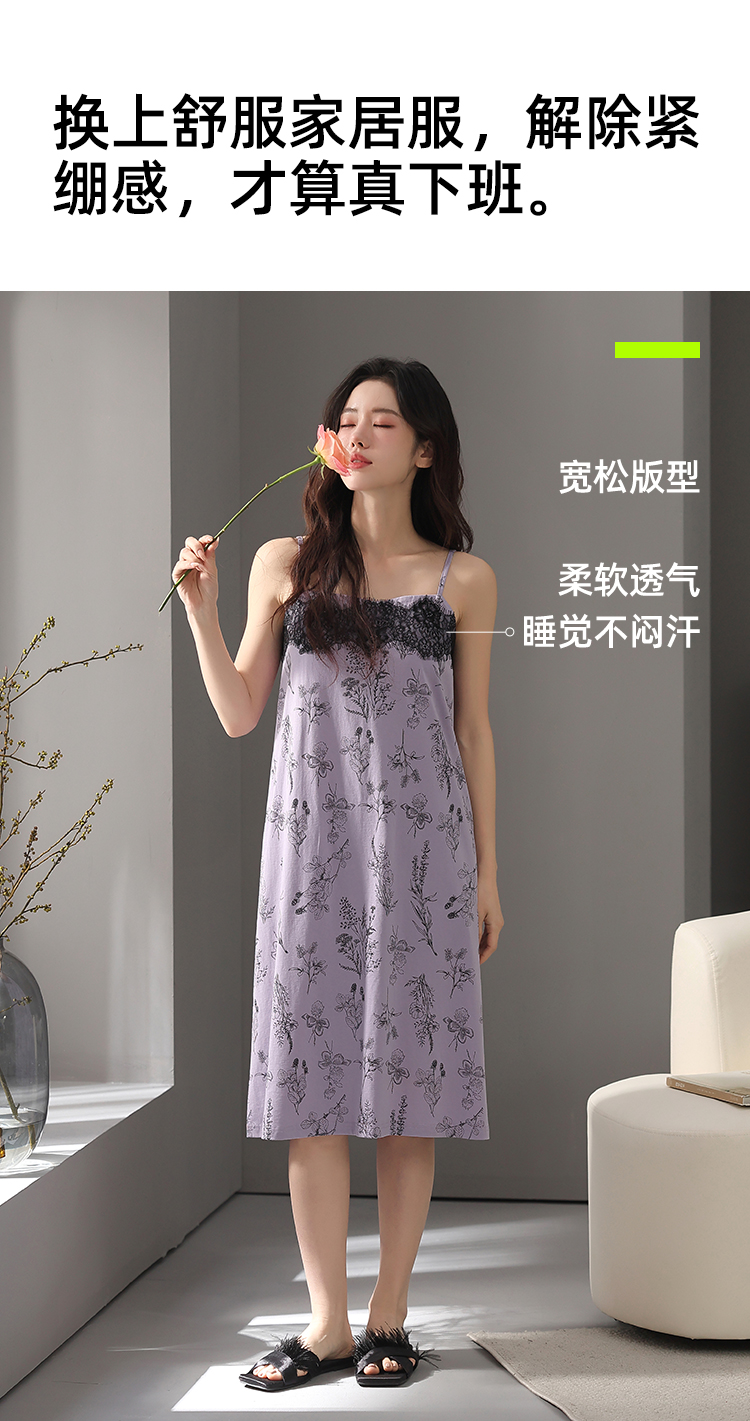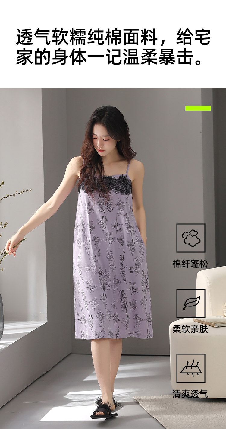 【有棵树】【100%新疆棉+免穿文胸】【M-2XL】女士吊带睡裙