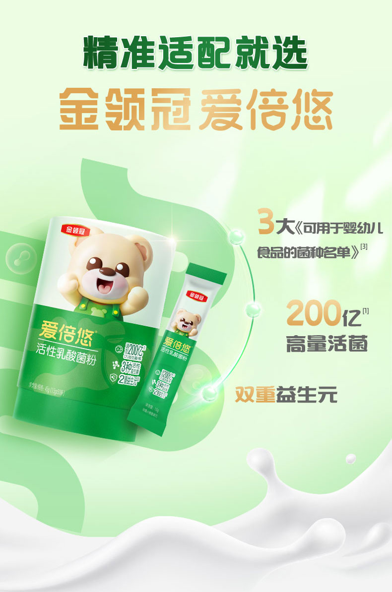 【新客专享】金领冠爱倍悠婴幼儿活性益生菌专利菌种3合1乳酸菌粉30条
