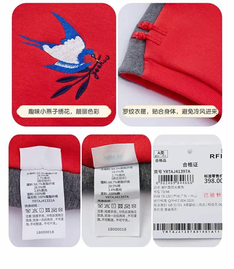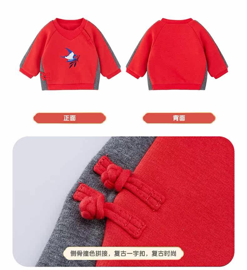 英氏儿童V领套头开肩卫衣春秋款男童绒衫新年唐装YRTAJ41331A