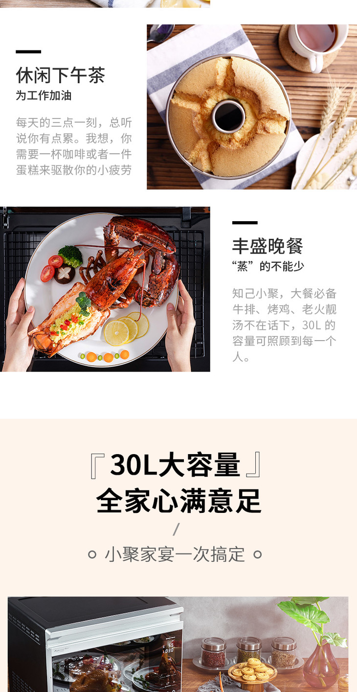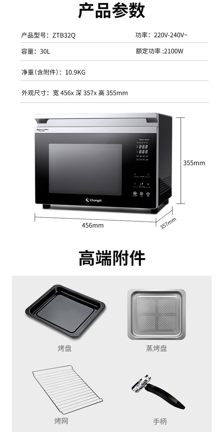 长帝ZTB32Q烤箱家用小型烘焙多功能全自动蒸烤箱电子蒸烤一体机