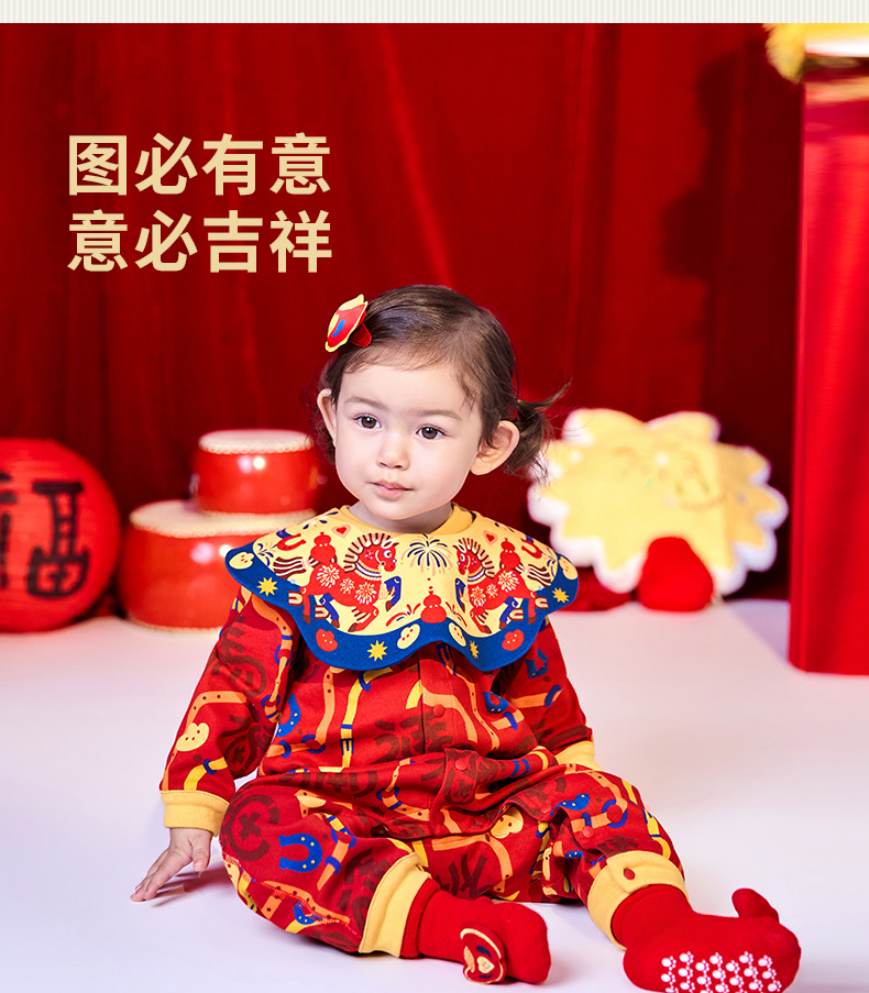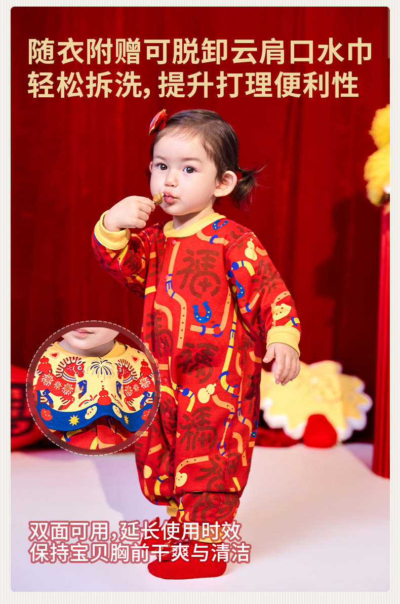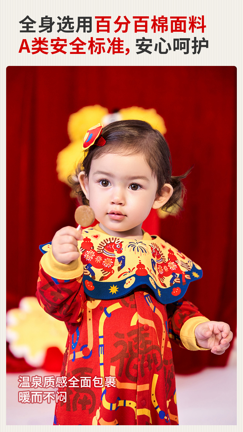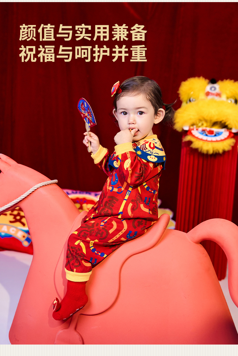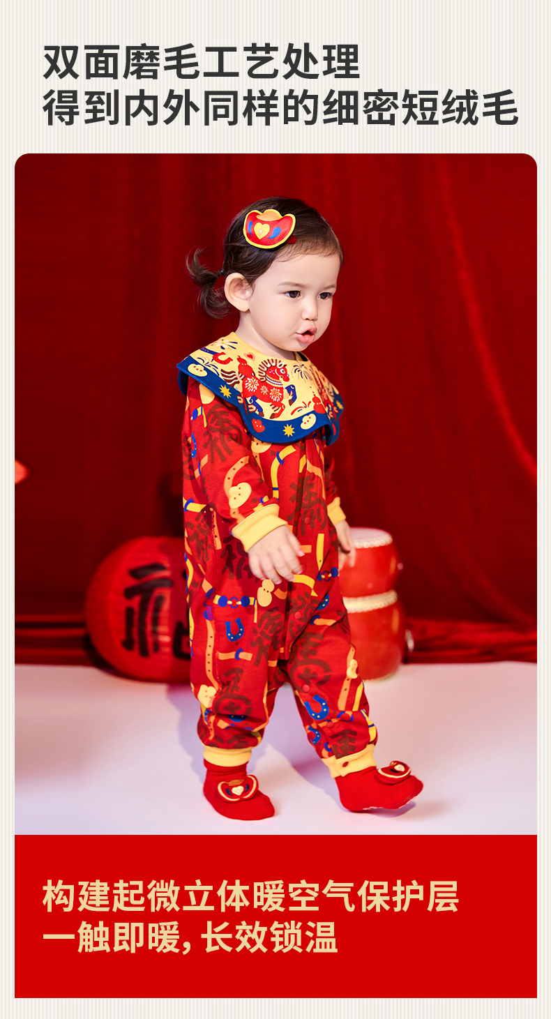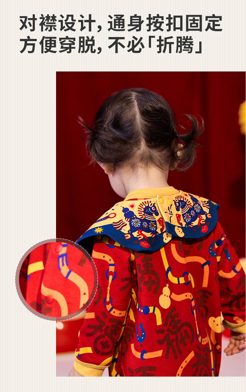 年衣婴童哈衣爬服冬款宝宝男女童连体衣中式新年马上有福哈衣