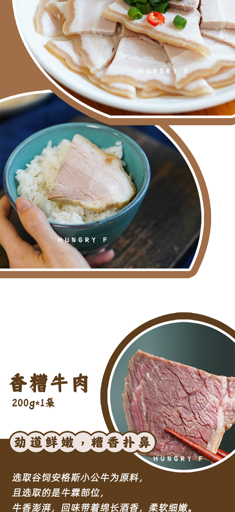 香糟鸡450g*2袋+香糟牛肉200g*1袋+香糟猪肉200g*1袋+香糟大黄鱼208g*1袋+香糟鹅300g*1袋