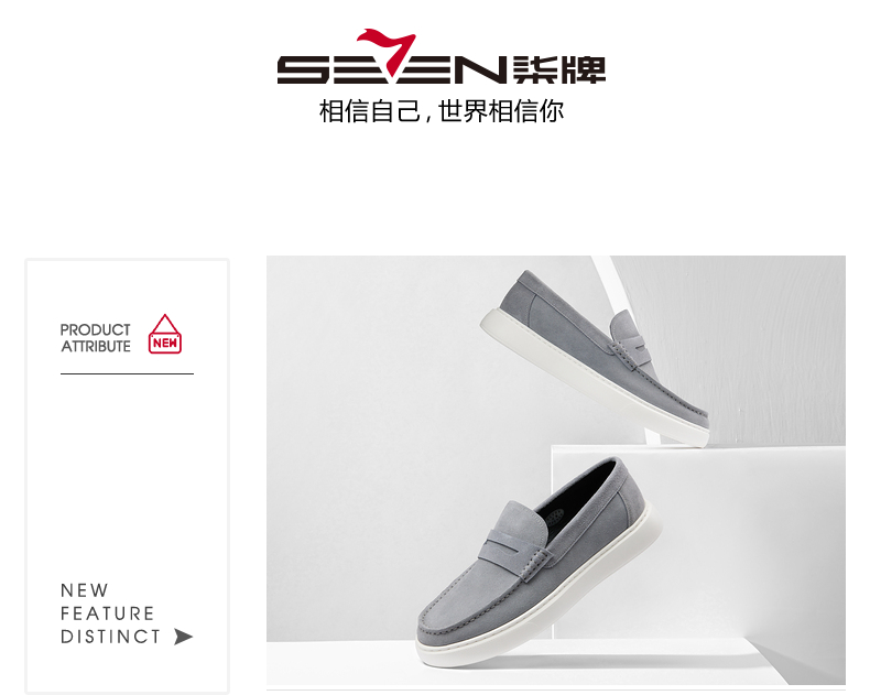 柒牌男鞋休闲鞋2024春秋款时尚百搭青年一脚蹬男士套脚皮鞋懒人鞋 126X70480