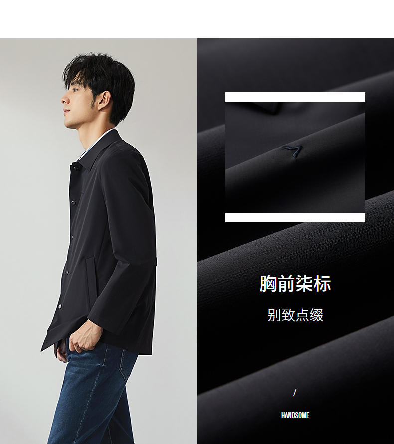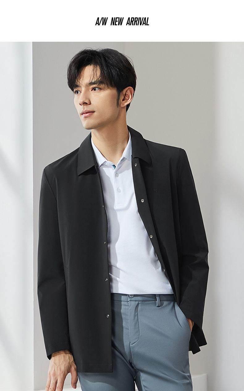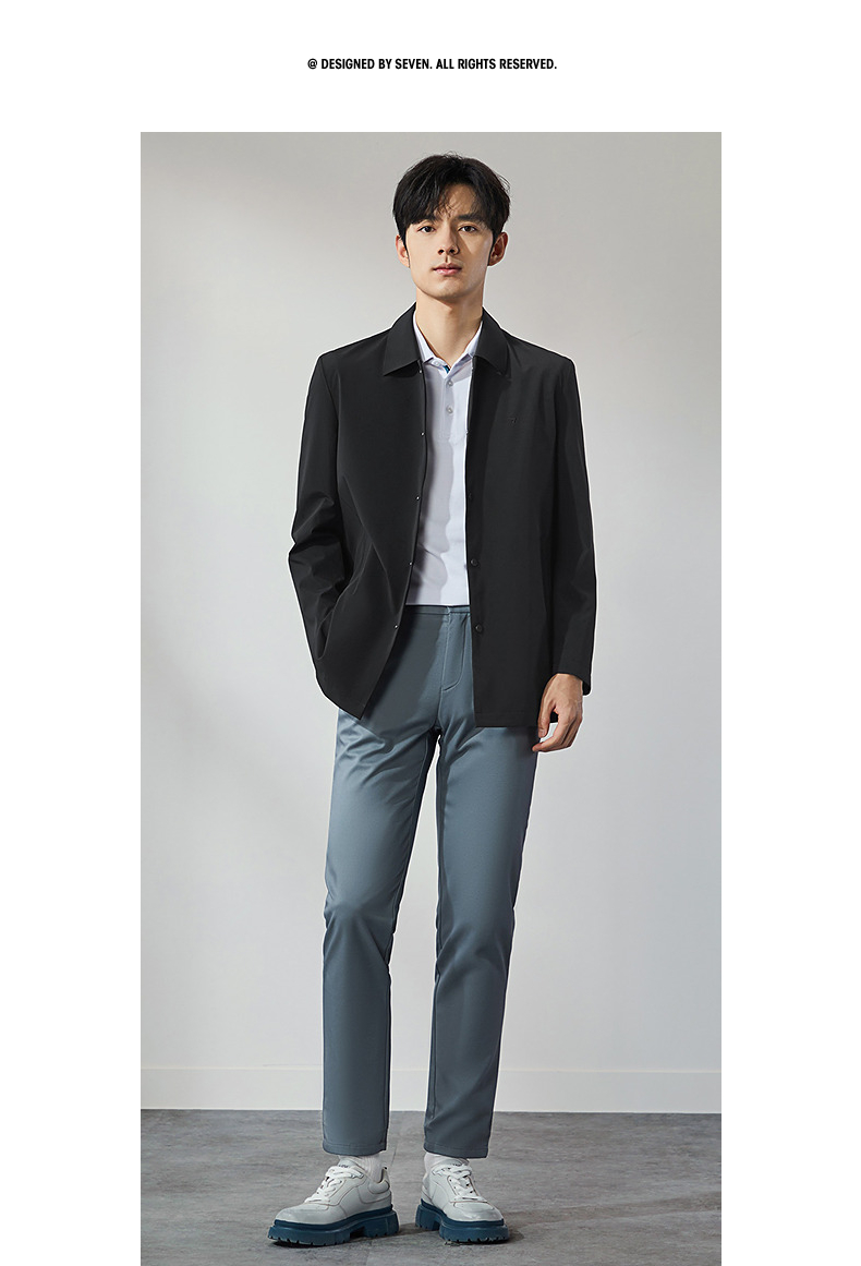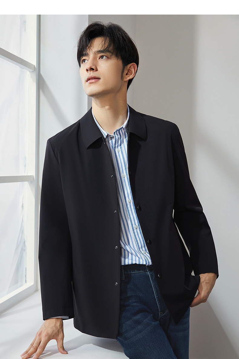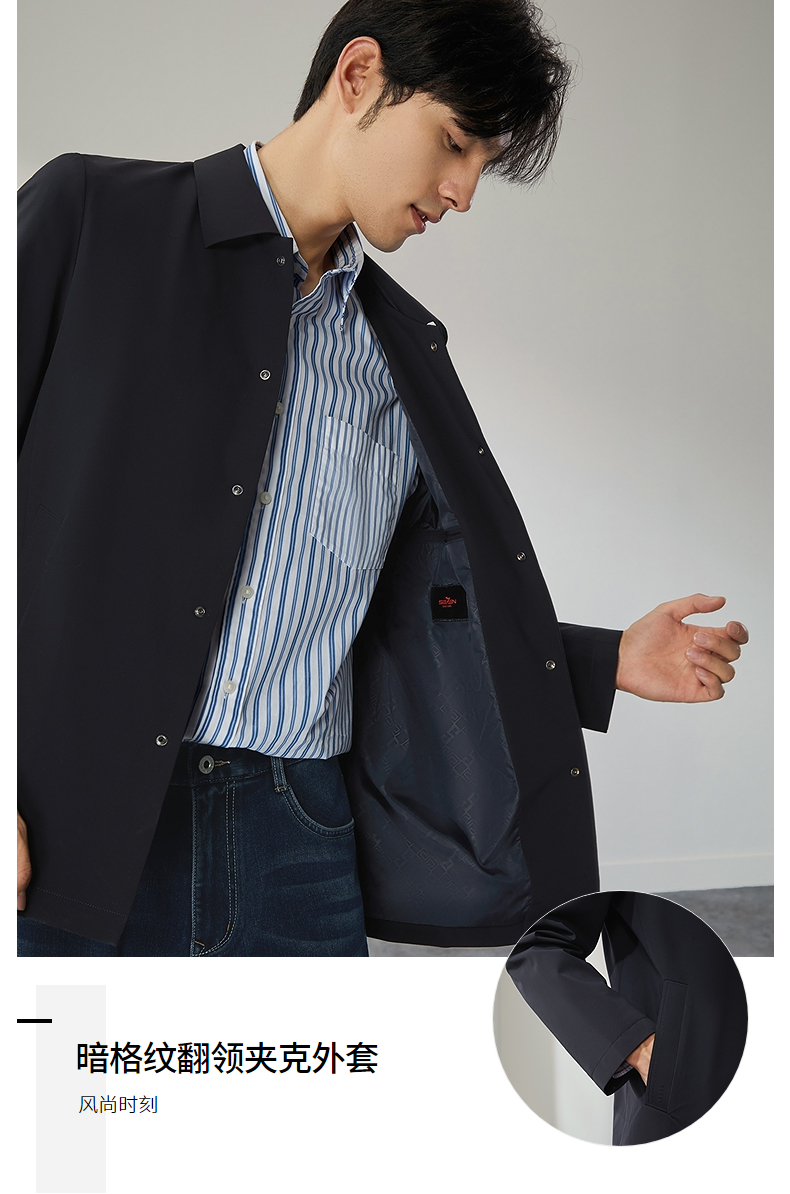 柒牌风衣外套男2024秋季新款商务休闲暗格纹休闲百搭男士翻领夹克 127K70360