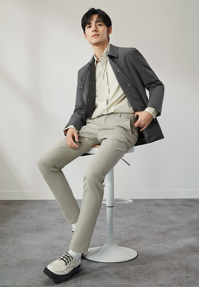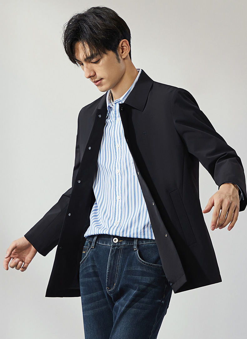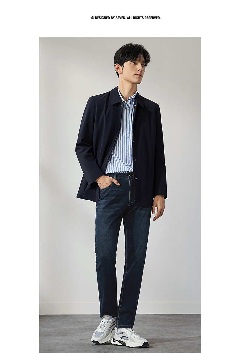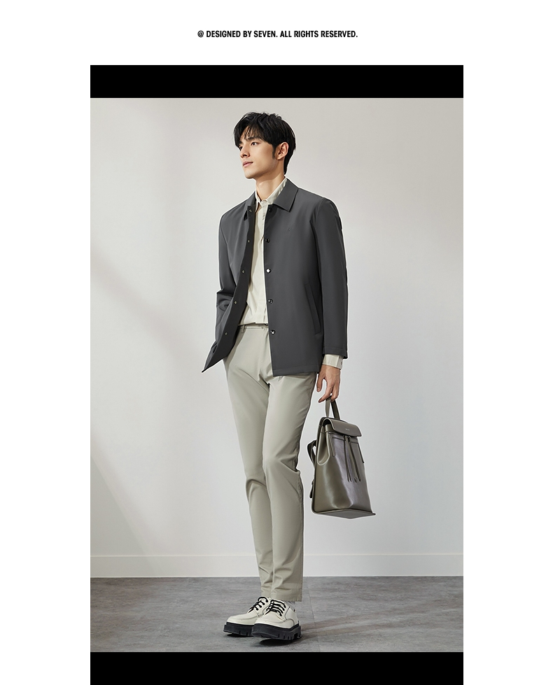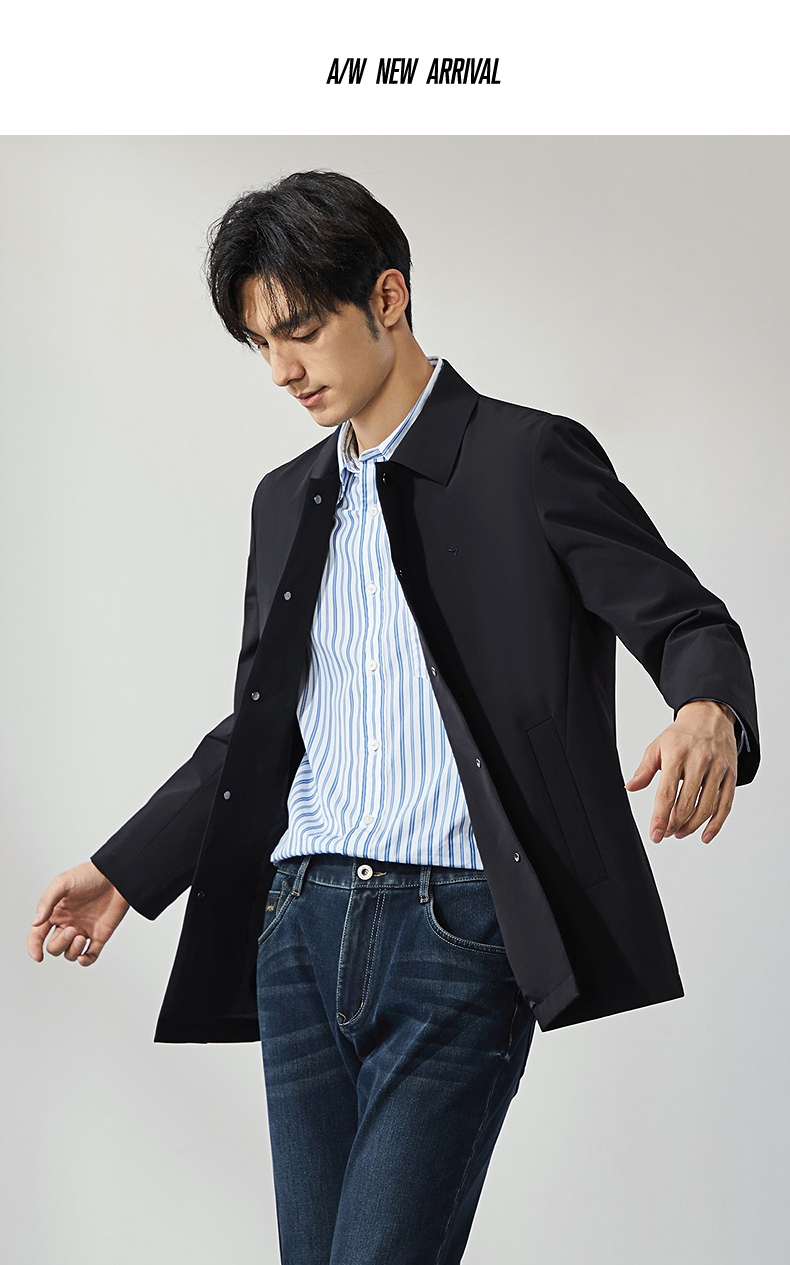 柒牌风衣外套男2024秋季新款商务休闲暗格纹休闲百搭男士翻领夹克 127K70360