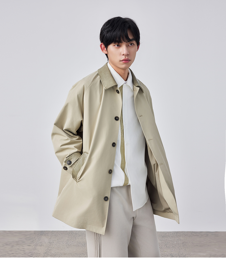 墨麦客男装经典风衣外套男士春秋季新款时尚休闲宽松中长款大衣。