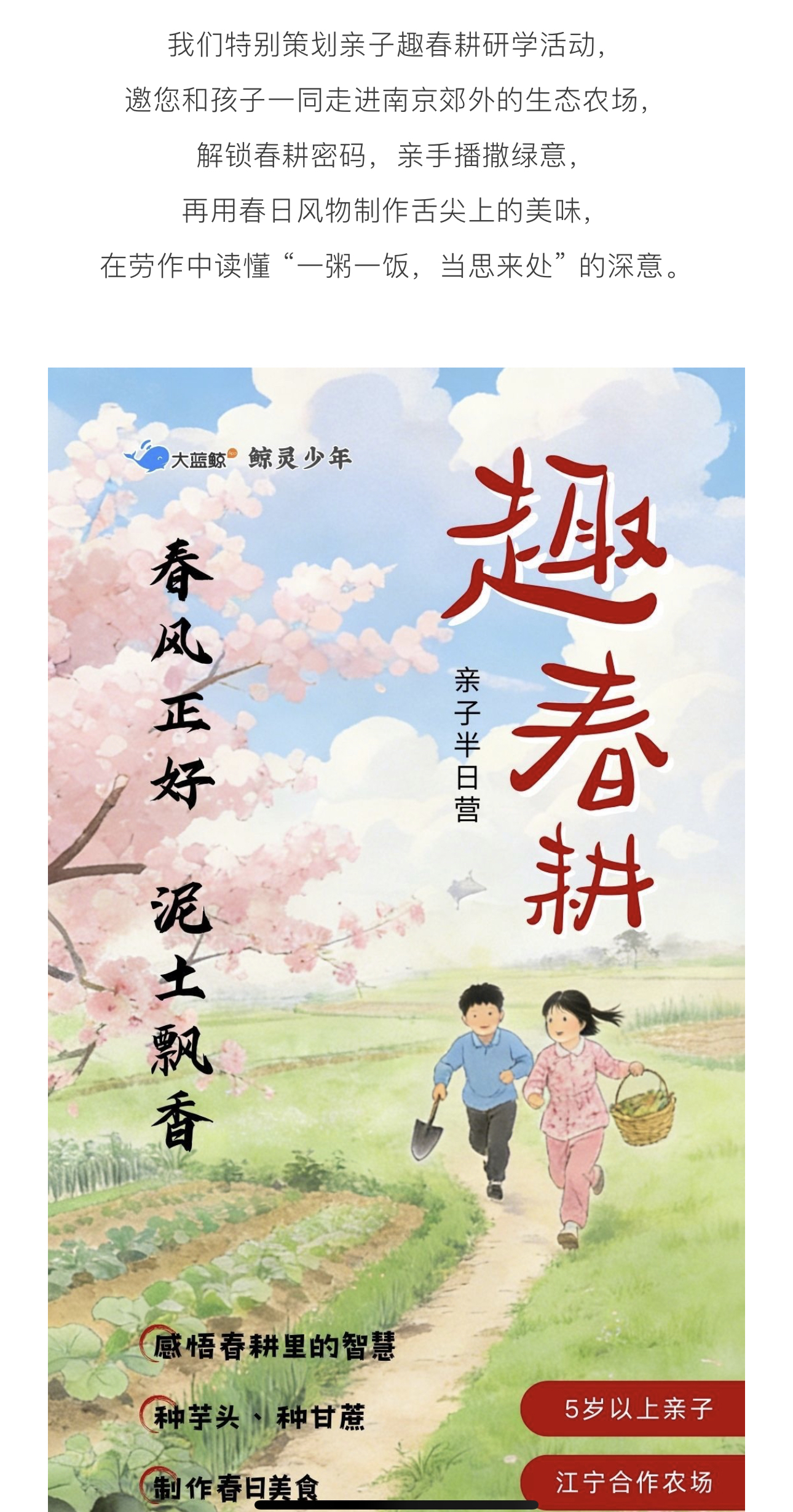大蓝鲸爱研学|亲子半日营,春风正好,泥土飘香,赴一场田间撒欢的春日农耕奇遇