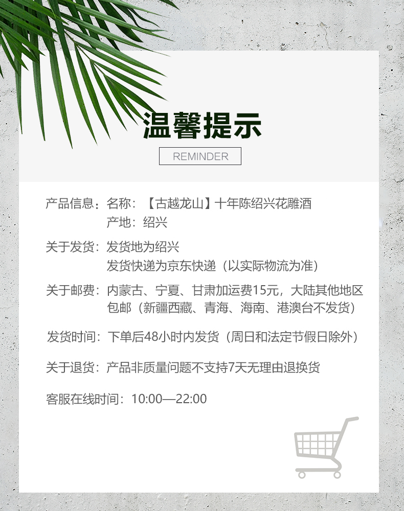 温馨提示:酒水非质量问题不支持7天无理由退换货