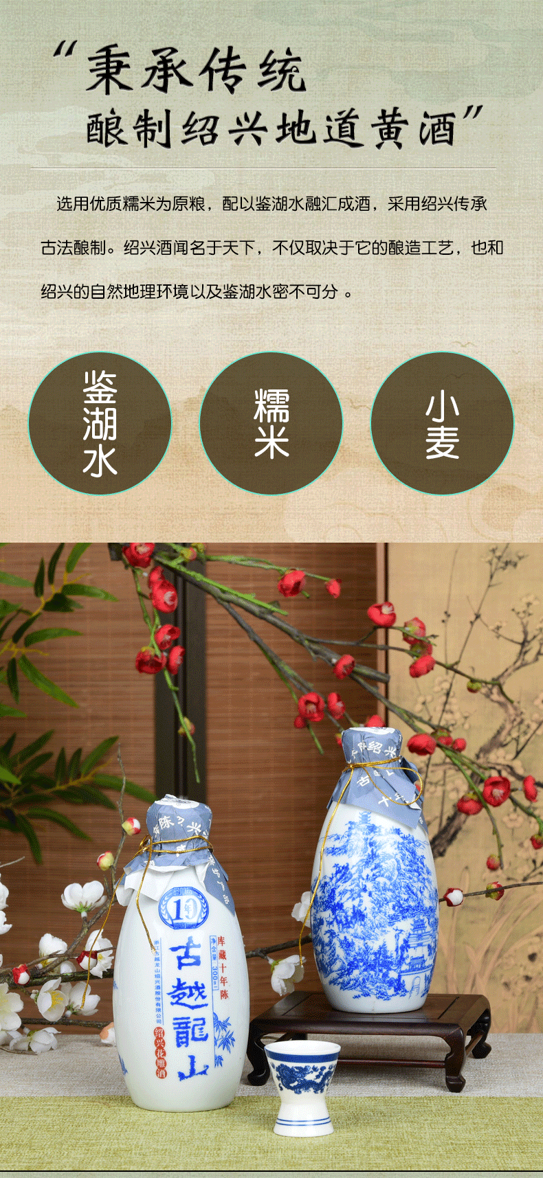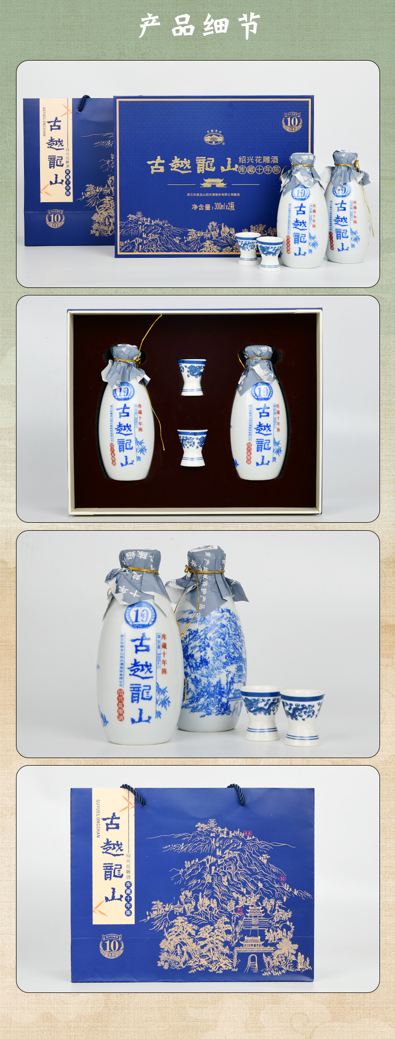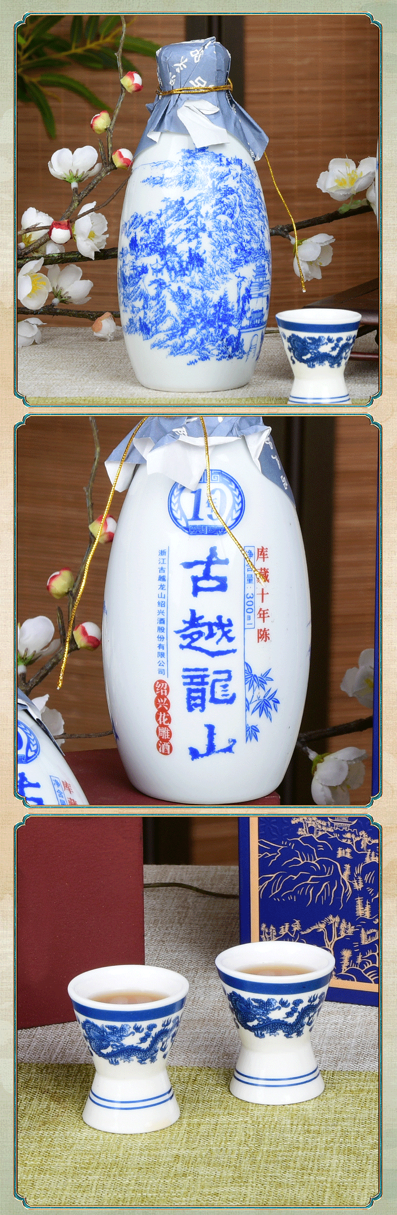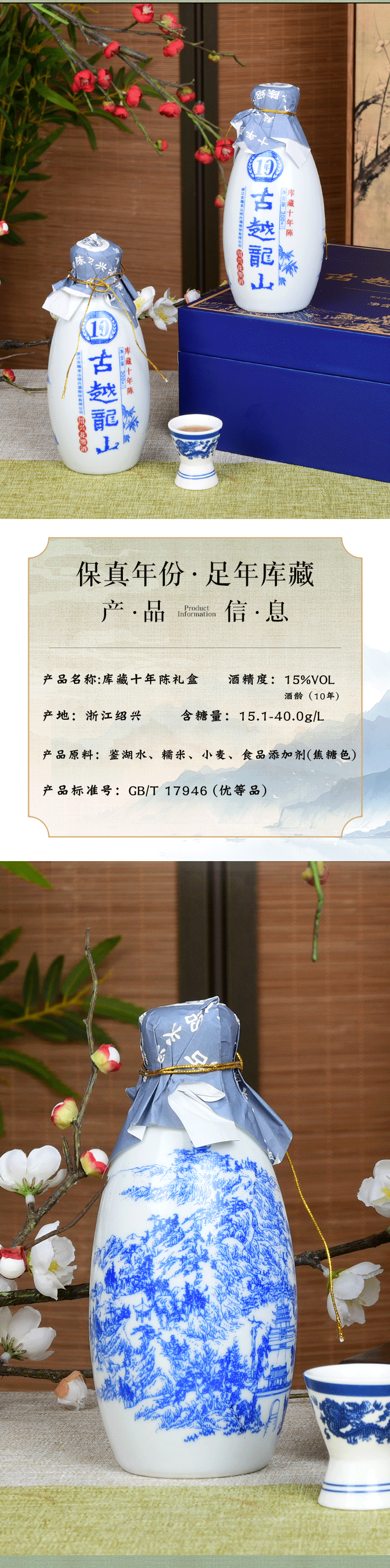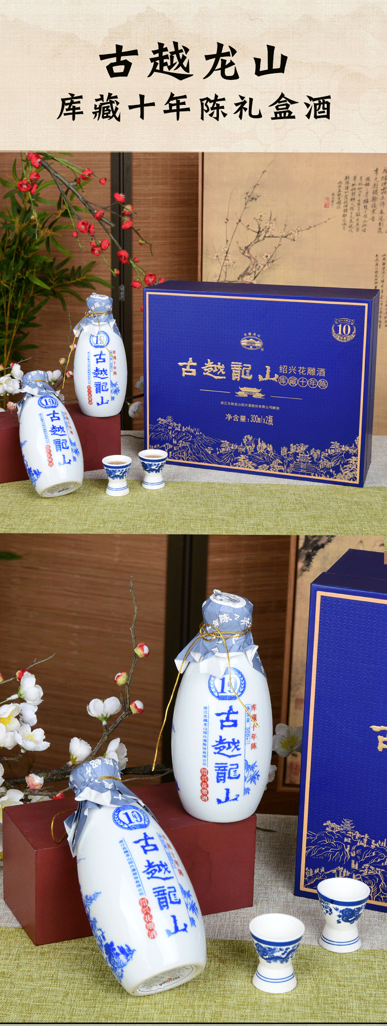 热卖中!!【赠温酒器1套+高端定制青花瓷酒杯4个+手提袋2个】古越龙山 窖藏10年陈绍兴花雕酒礼盒