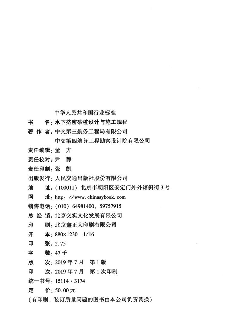 书名:水下挤密砂桩设计与施工规程
