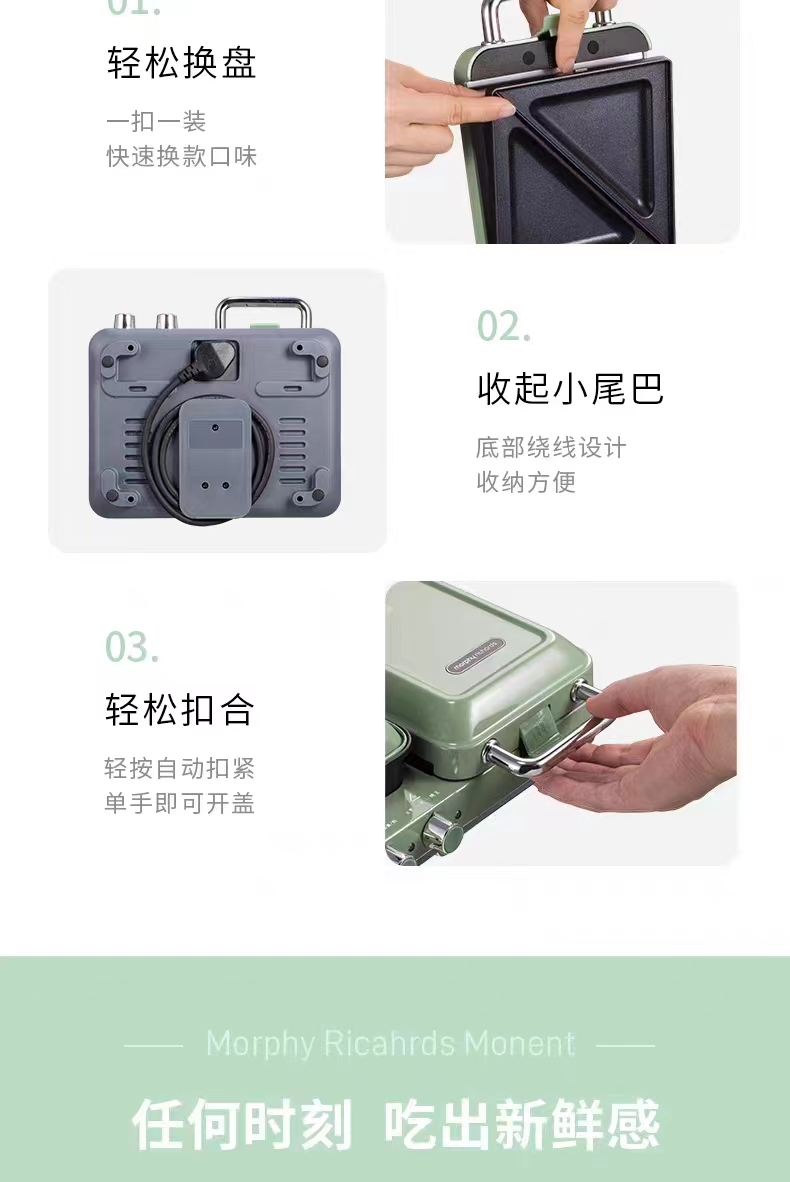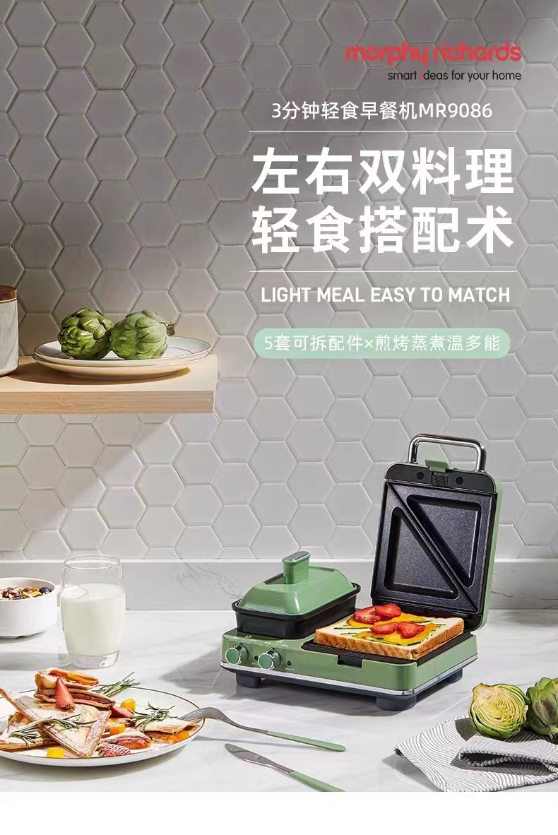 【摩飞多功能轻食机】早餐机神器、三明治轻食机、小型家用华夫饼机、烤吐司面包机【一机多用,方便快捷】】