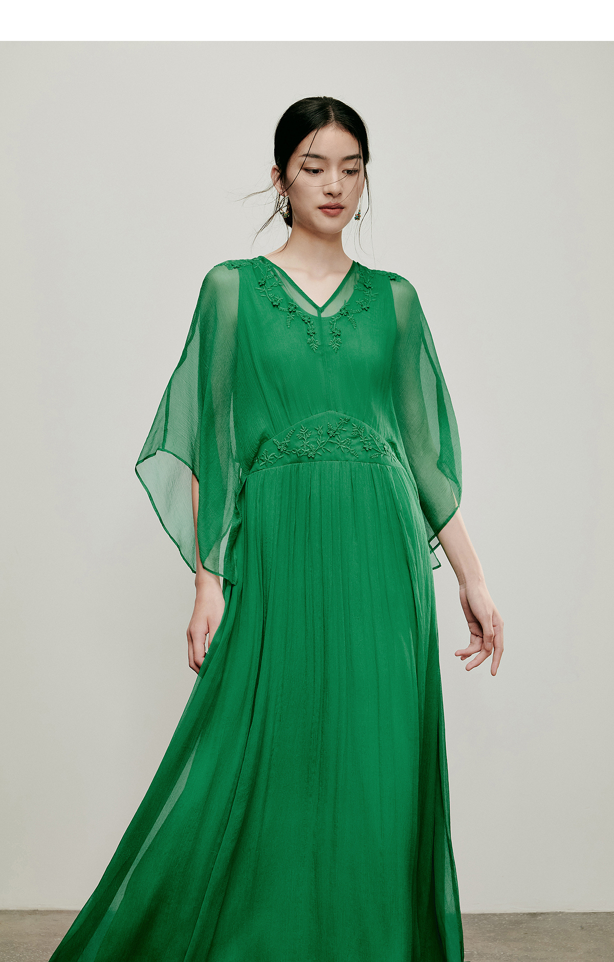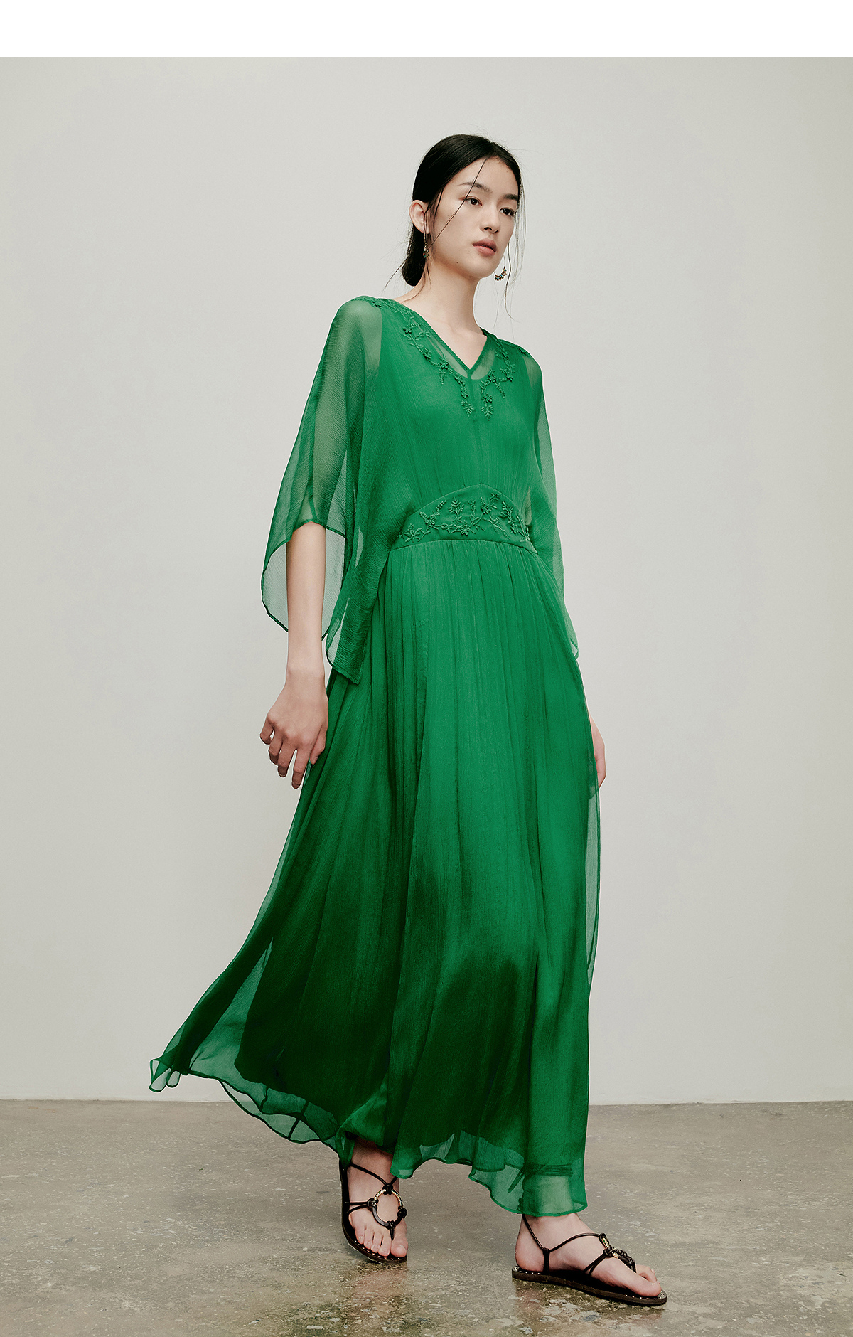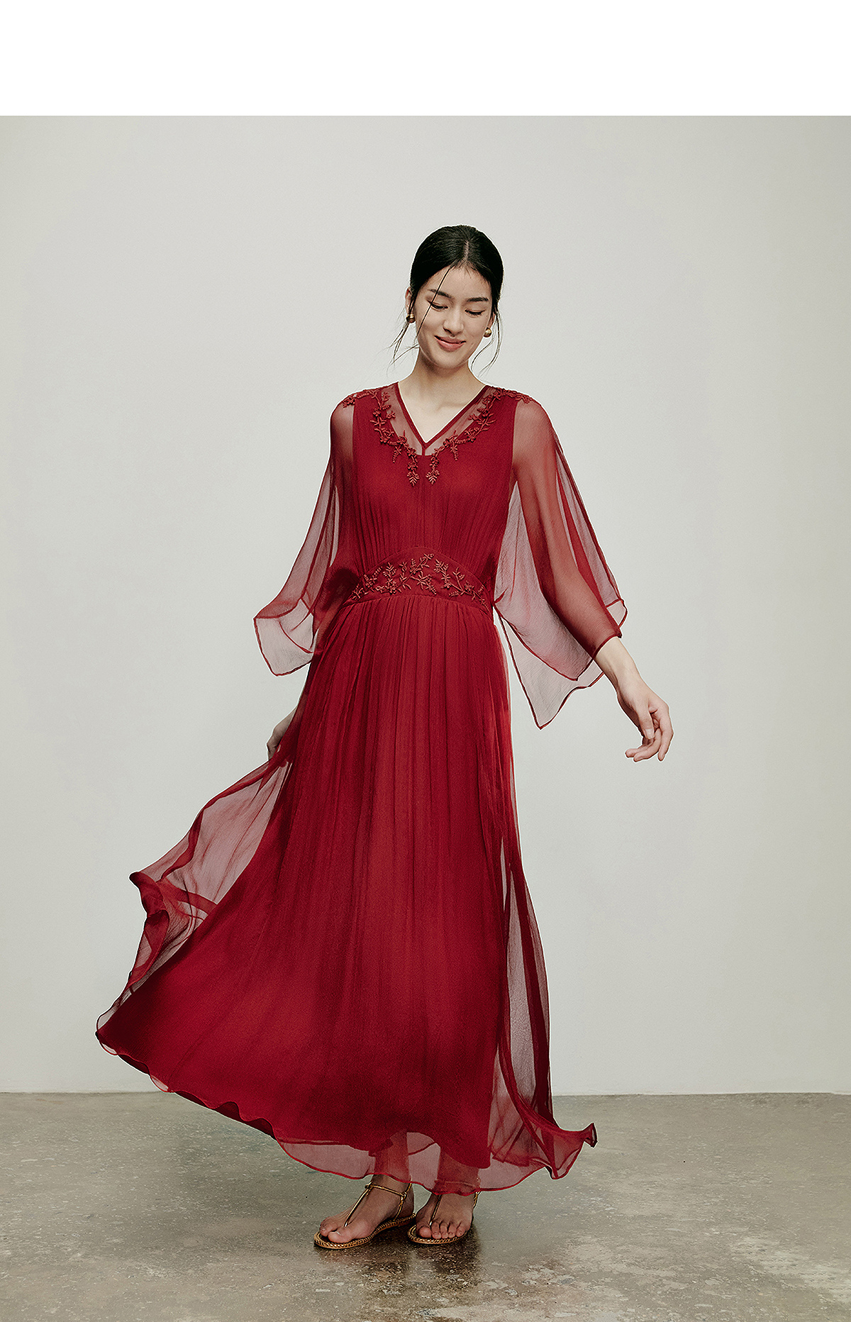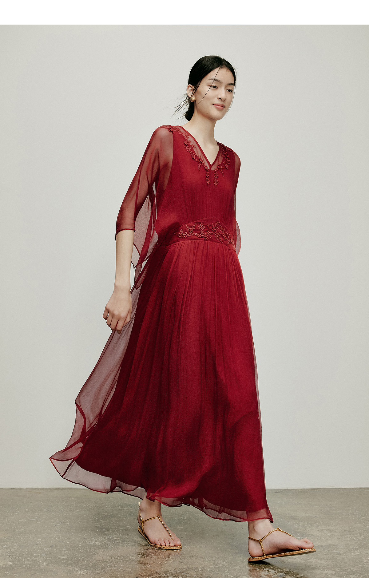 【林栖设计小店】花间缱绻|优雅绣花多色修身显瘦2026夏新款真丝连衣裙1962200