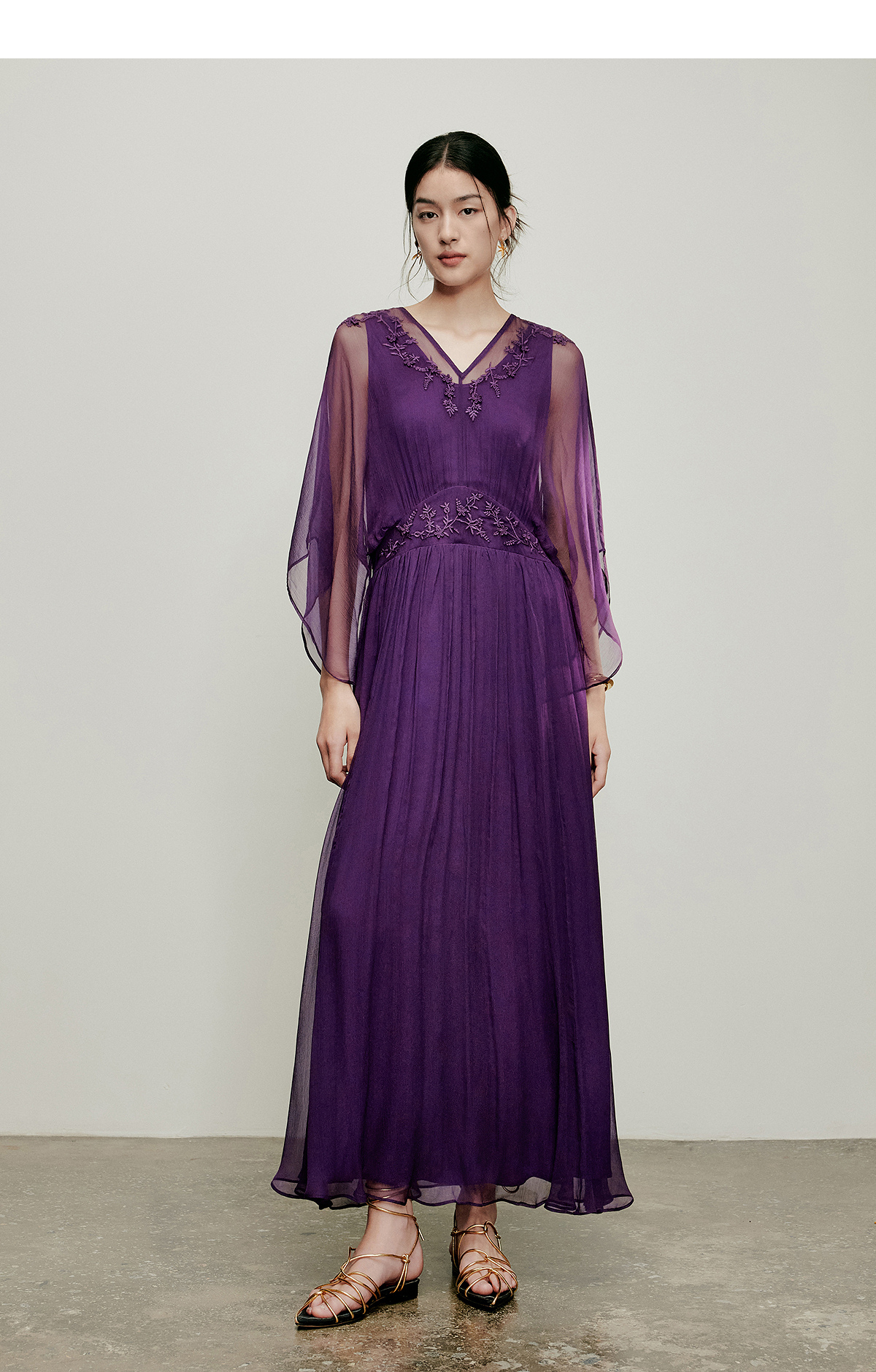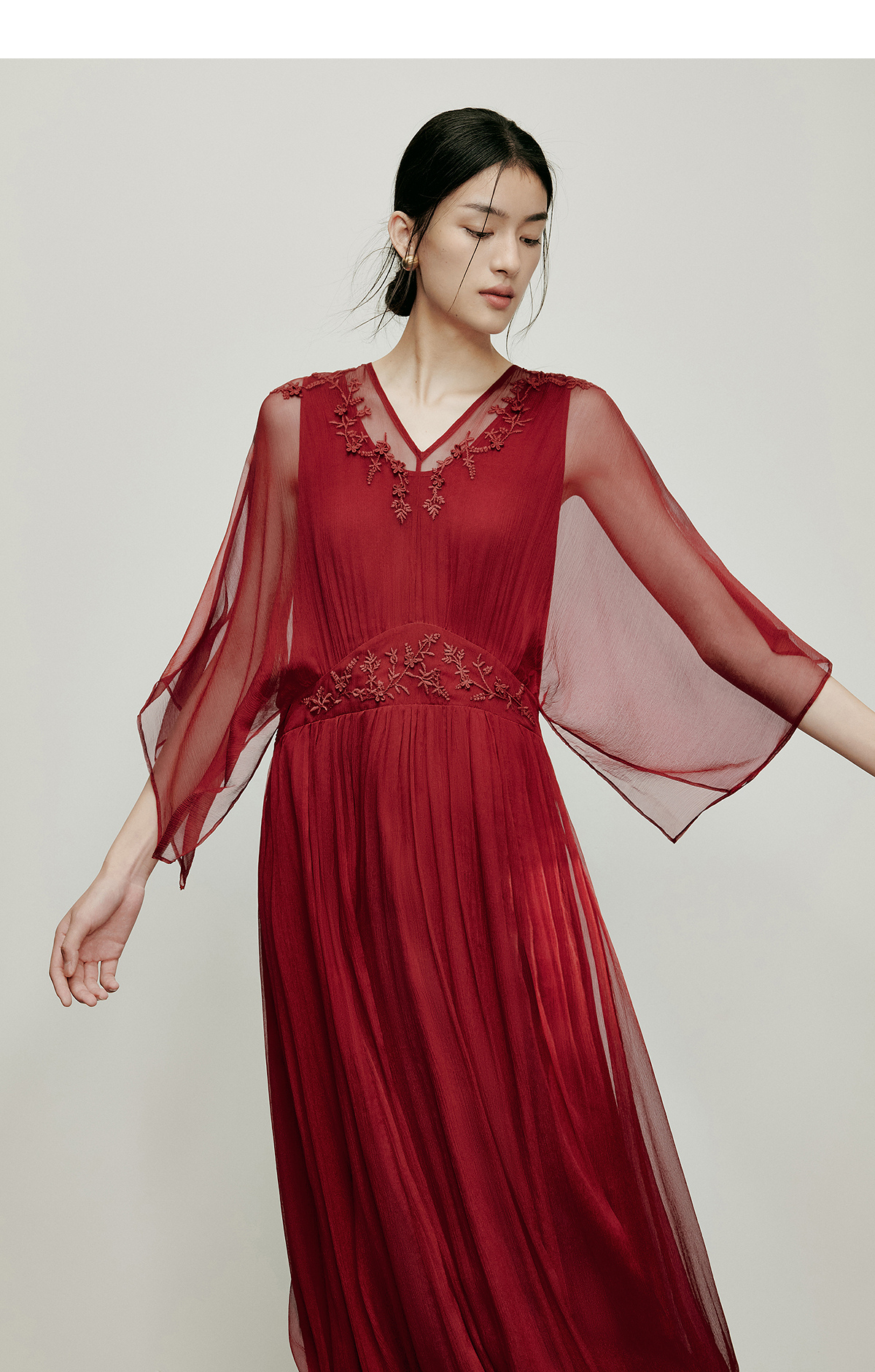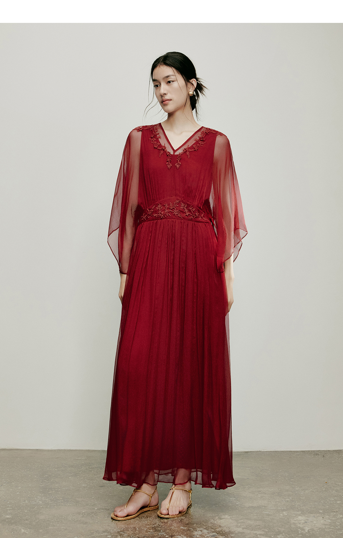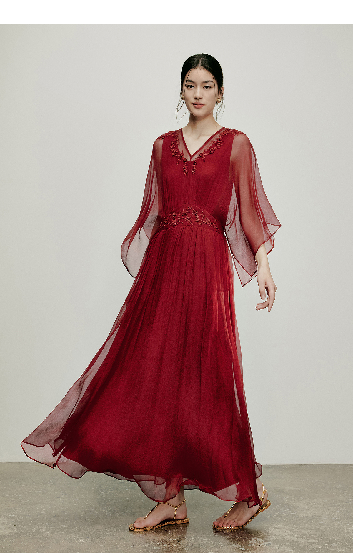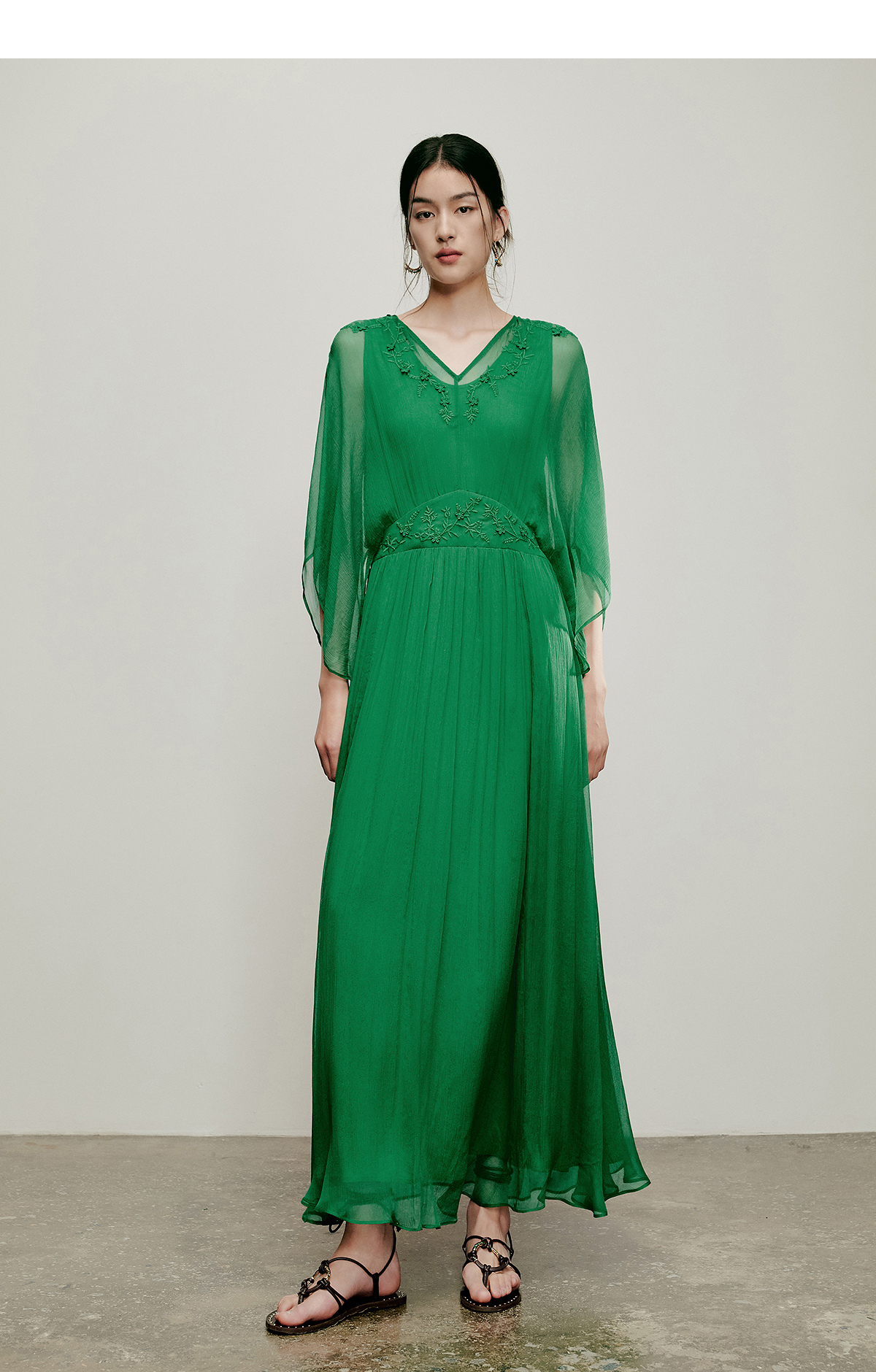 【林栖设计小店】花间缱绻|优雅绣花多色修身显瘦2026夏新款真丝连衣裙1962200