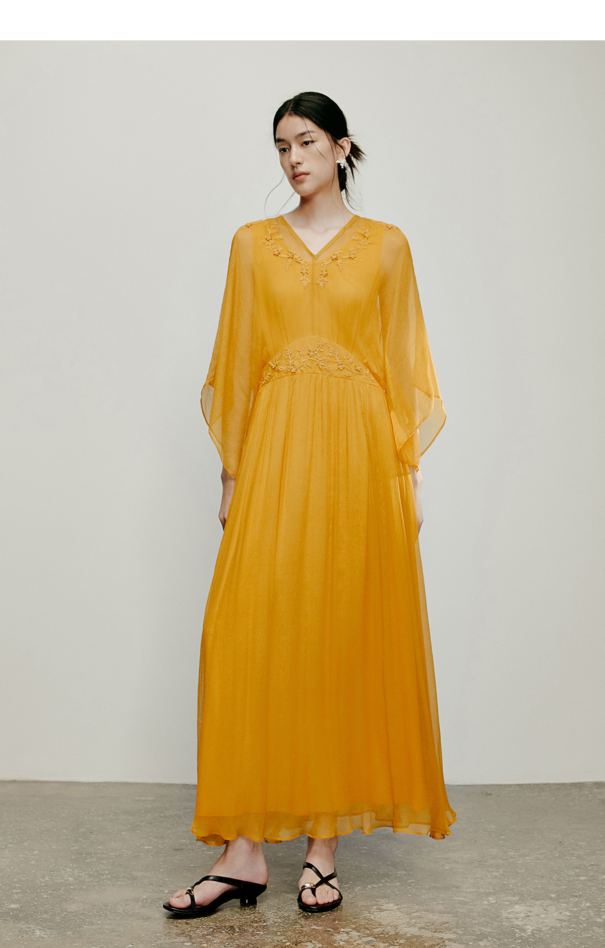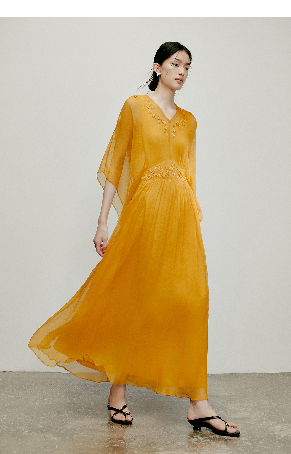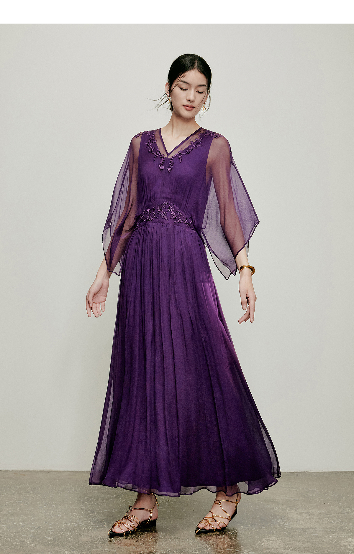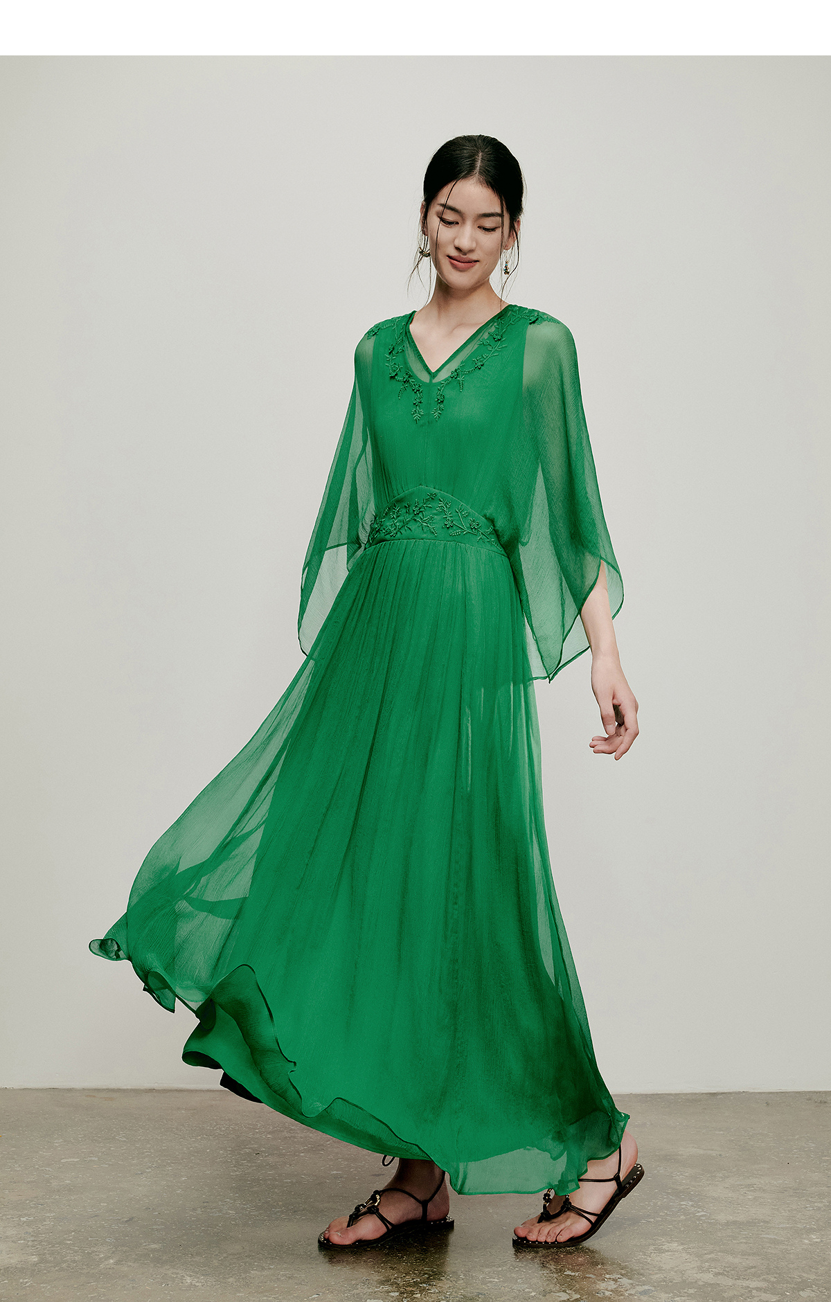 【林栖设计小店】花间缱绻|优雅绣花多色修身显瘦2026夏新款真丝连衣裙1962200