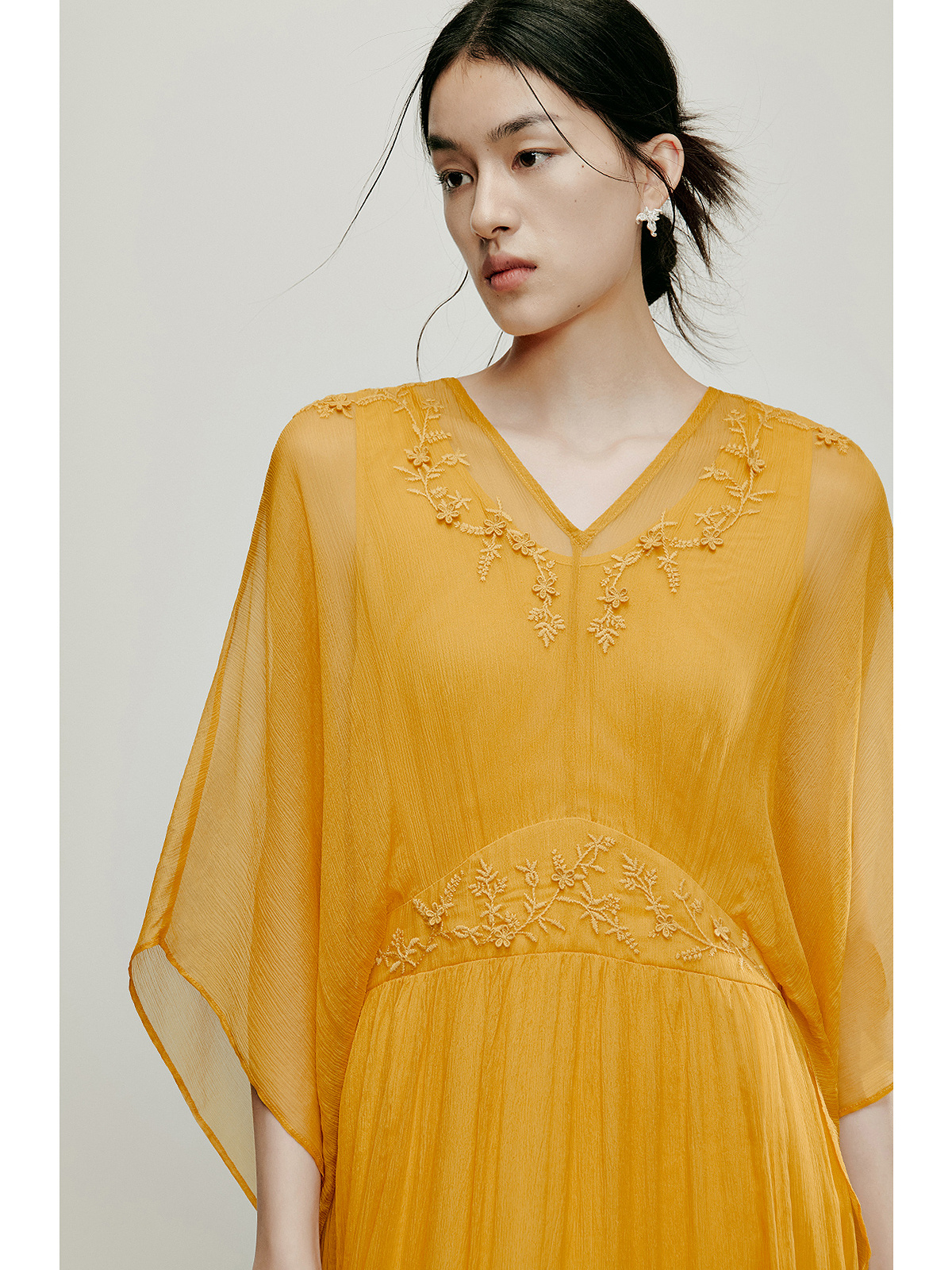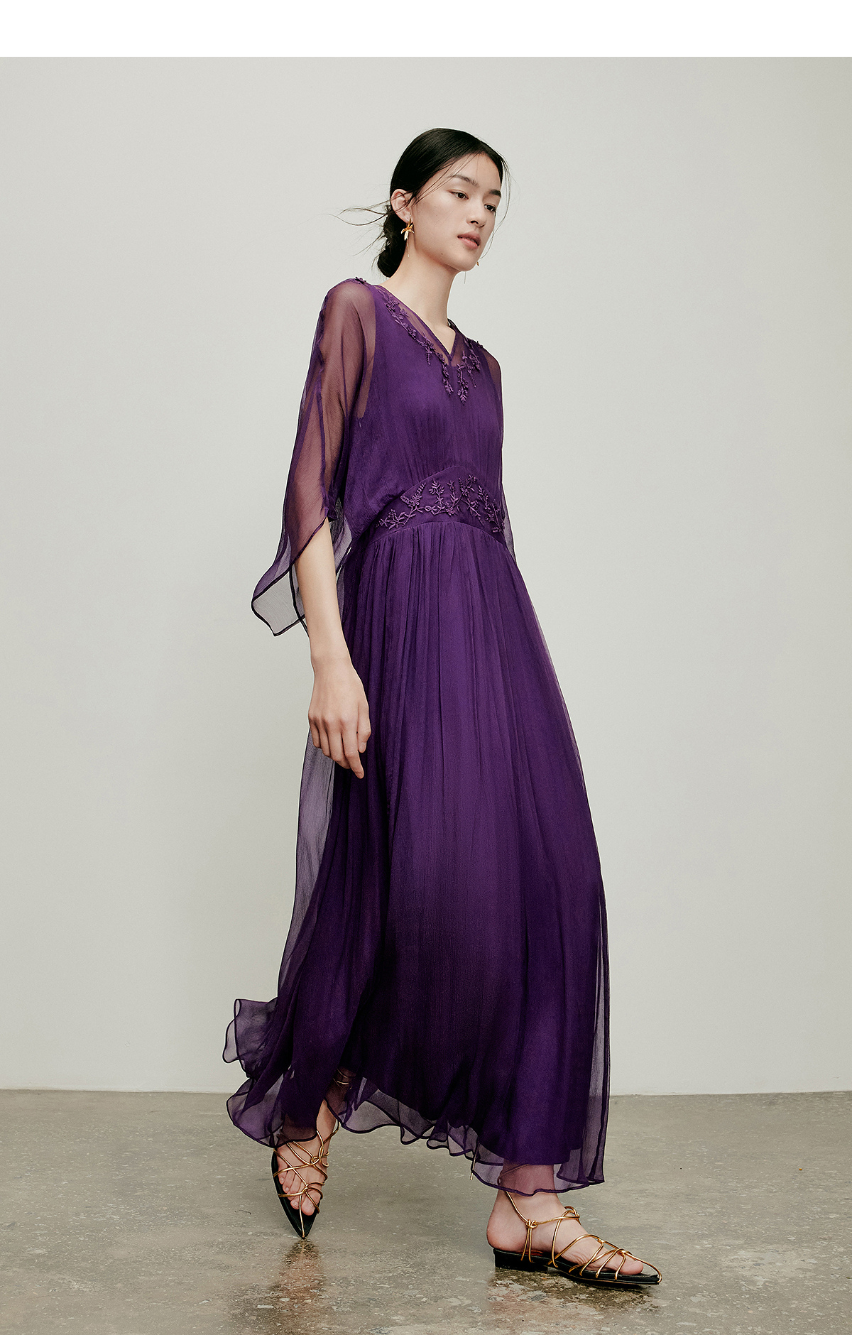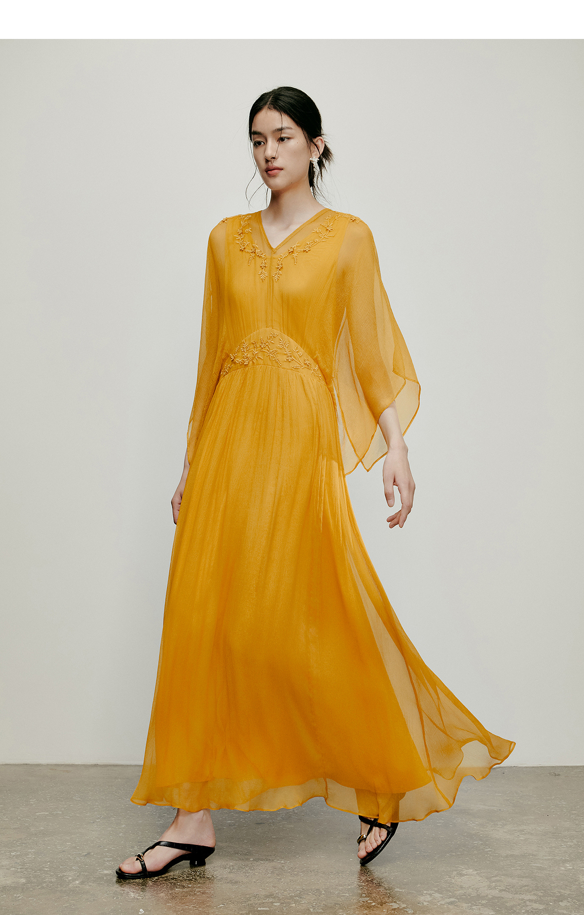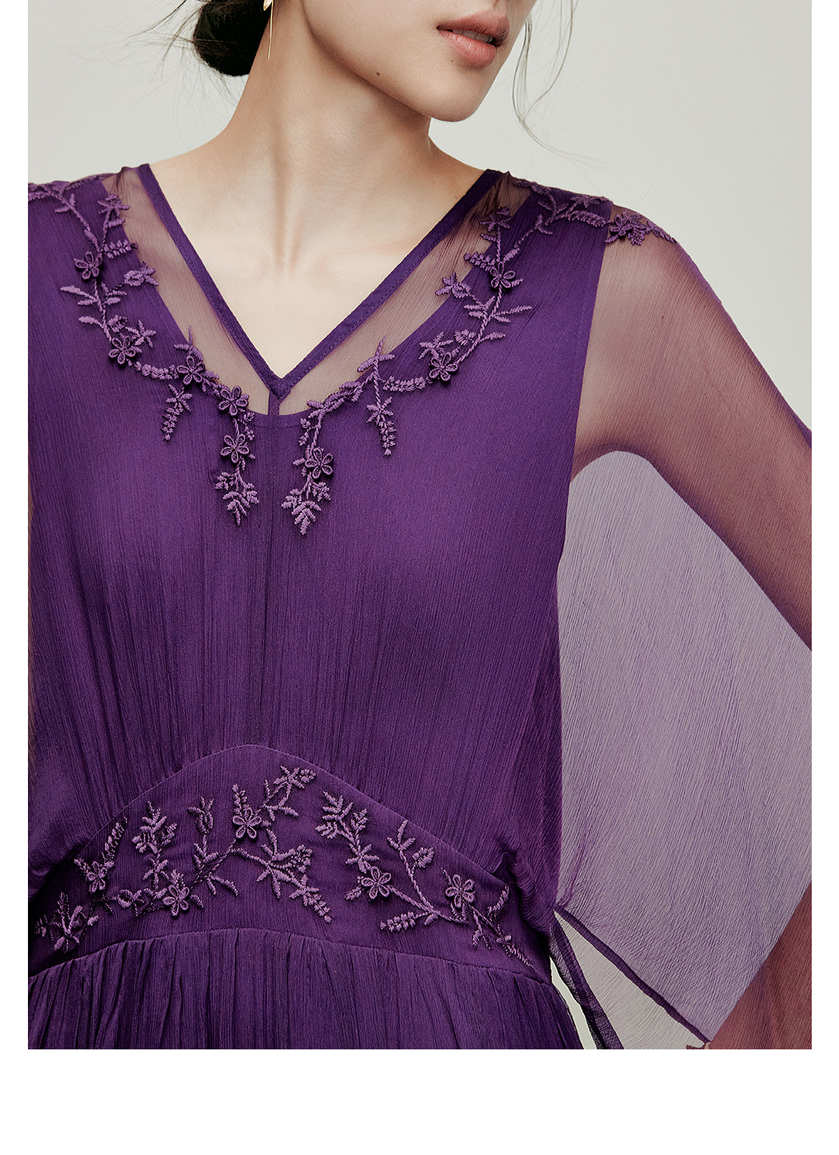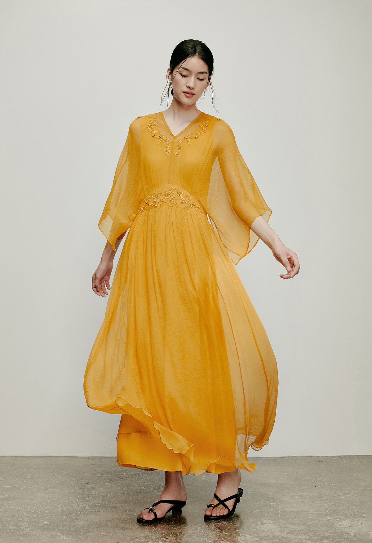 【林栖设计小店】花间缱绻|优雅绣花多色修身显瘦2026夏新款真丝连衣裙1962200