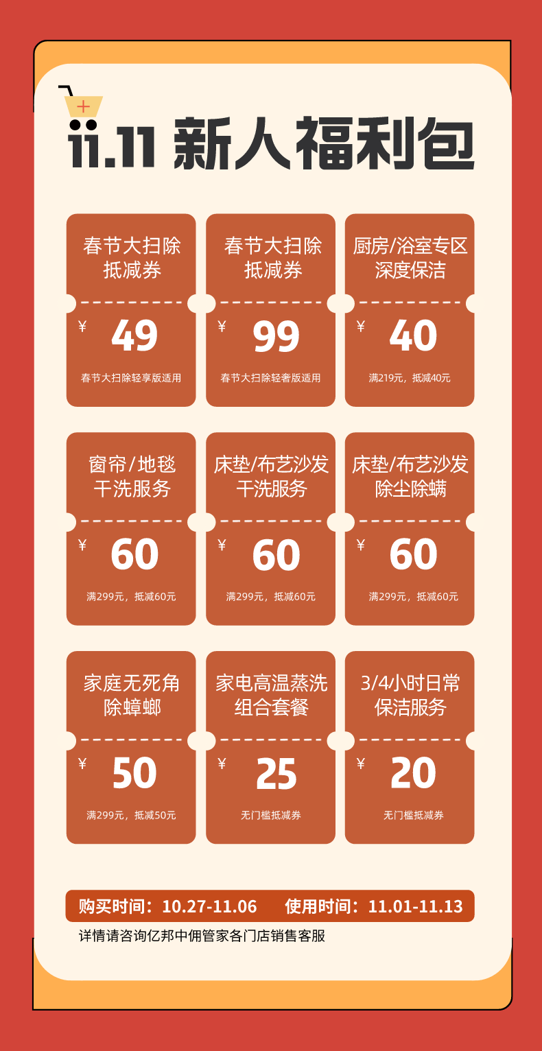 【双11】新人福利大礼包 双11家务狂欢节