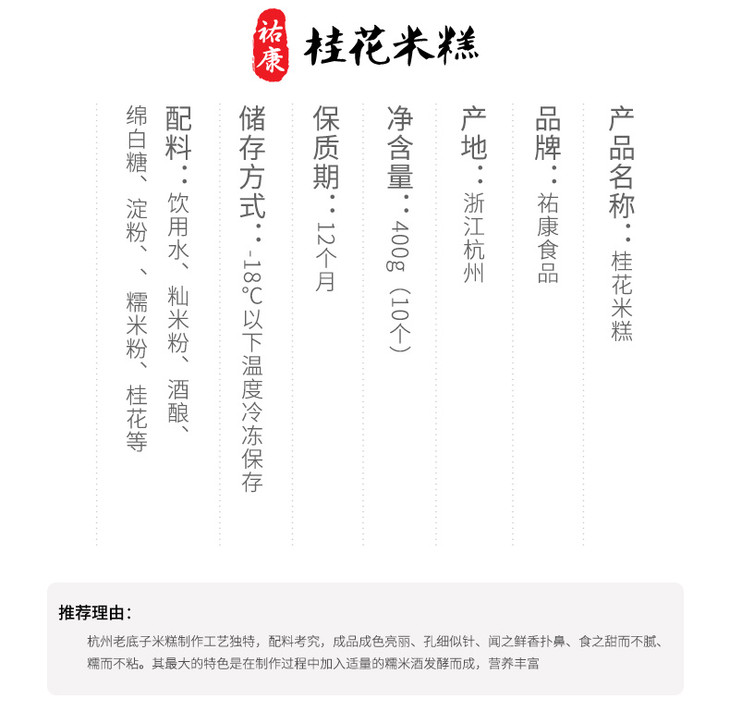 【包邮套餐】祐康杭州老底子400g桂花米糕*3包
