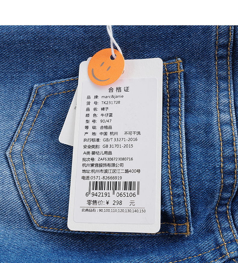 马克珍妮秋装新款 女童时尚纯棉窄口牛仔裤 儿童裤子231728