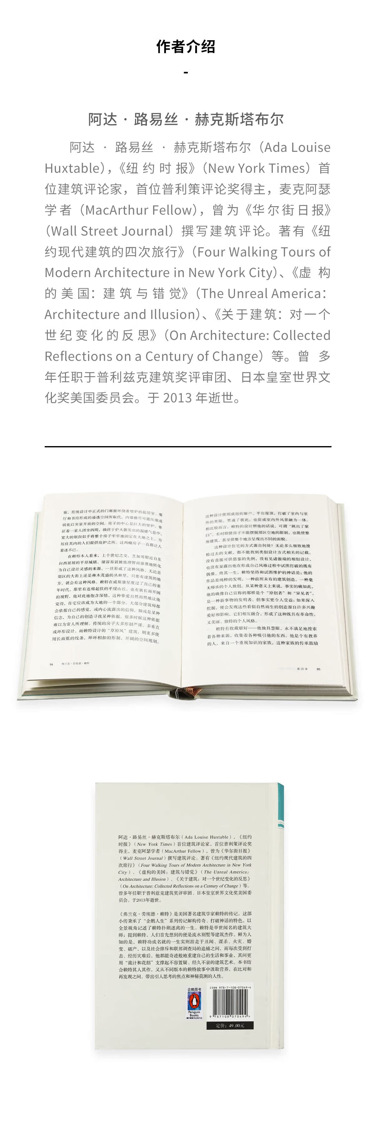 企鹅人生:弗兰克 劳埃德 赖特 阿达·路易丝·赫克斯塔布尔 著 三联书店 商品图4