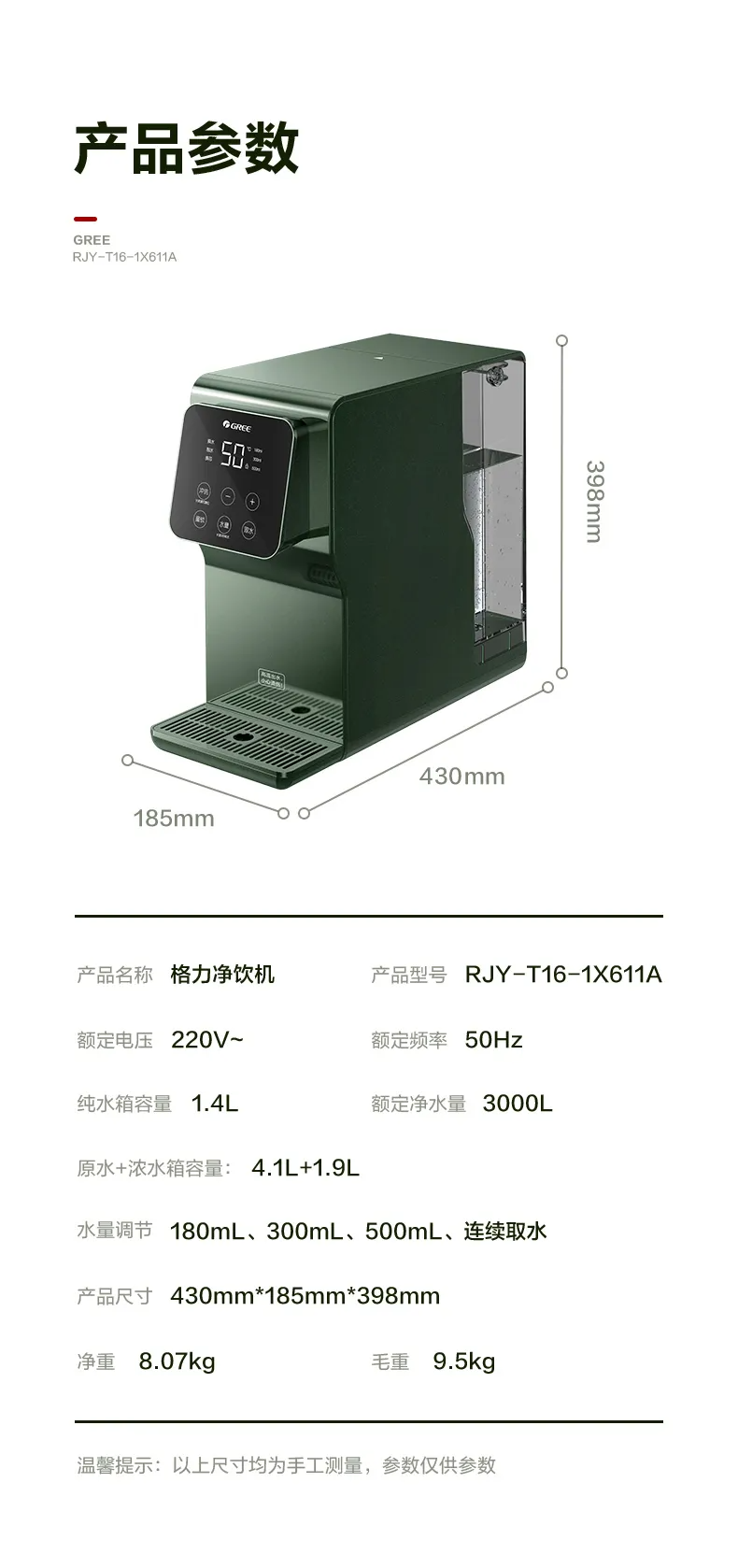 格力·台式净水机 净饮一体机 RJY-T16-1X611A 松杉绿