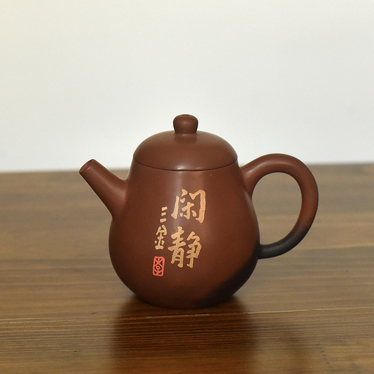三金,本名李鑫,启正陶社社员,2010年在朝阳楼跟随半根先生学习制壶。三金制陶随性而发,平淡天真,器型古朴,装饰淡雅,常作闲人、傻鱼、呆僧图饰······生趣盎然。制陶应是玩,不作高态,能让喜欢的人观之用之心生愉悦,便是乐事。虽有不足,但制陶路漫漫,坚持下去,必有所收获。