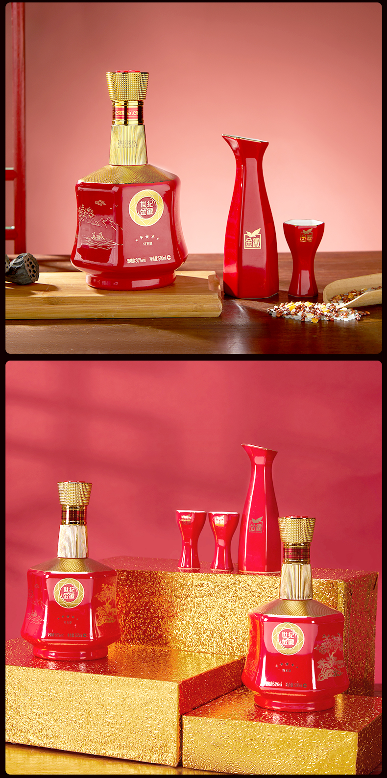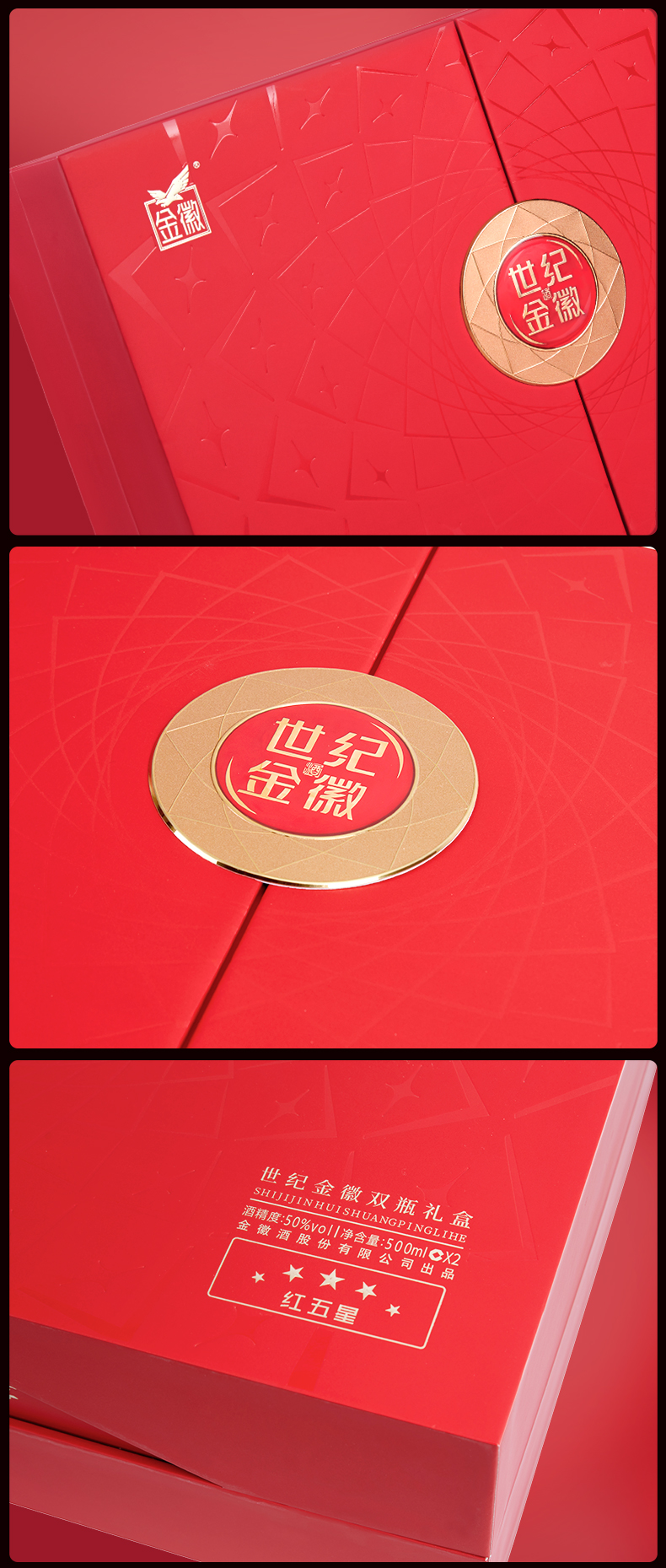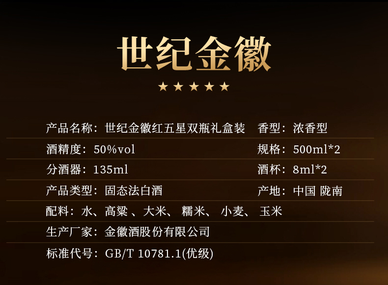 【员工专属】金徽酒 50度世纪金徽红五星礼盒 500ml*2瓶 浓香型白酒