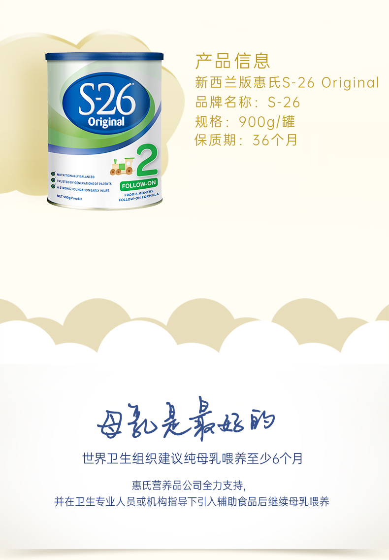 HNMG新西兰惠氏奶粉 S26金装 2段900g (新加坡版本)