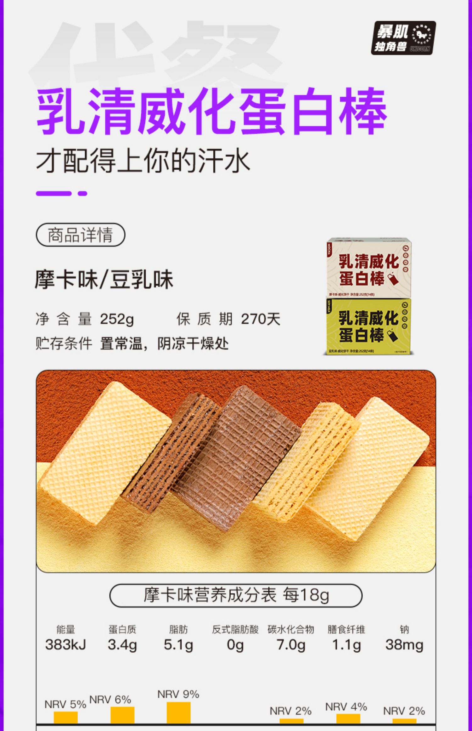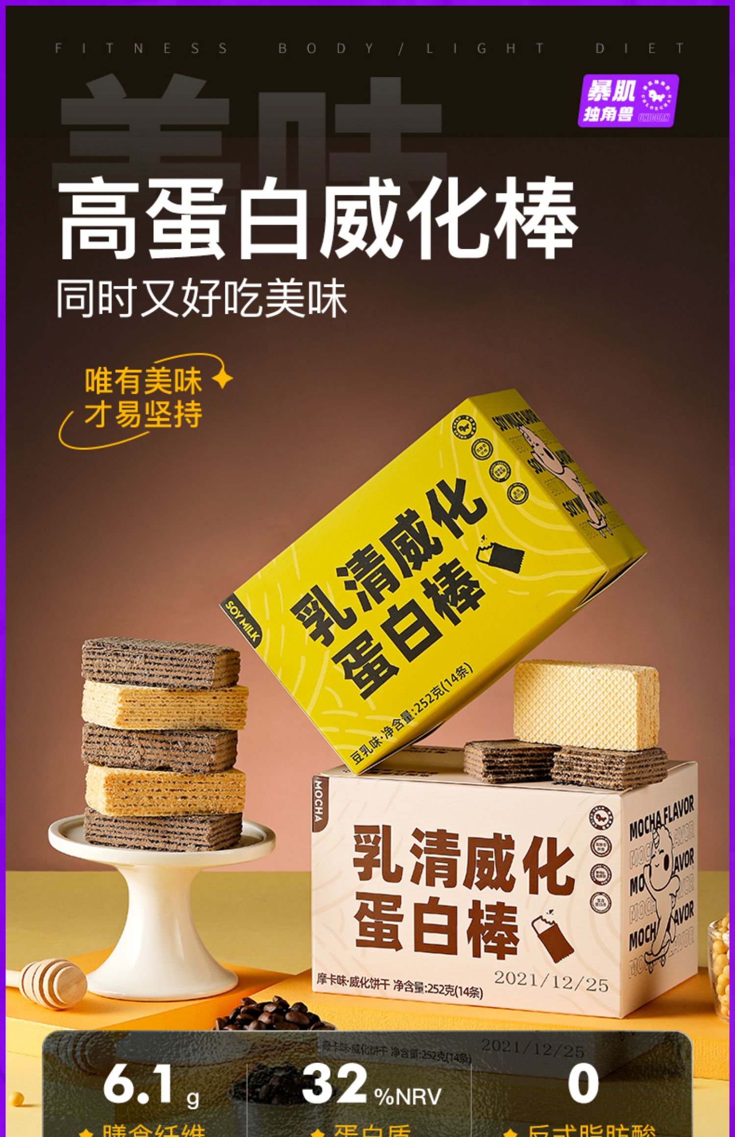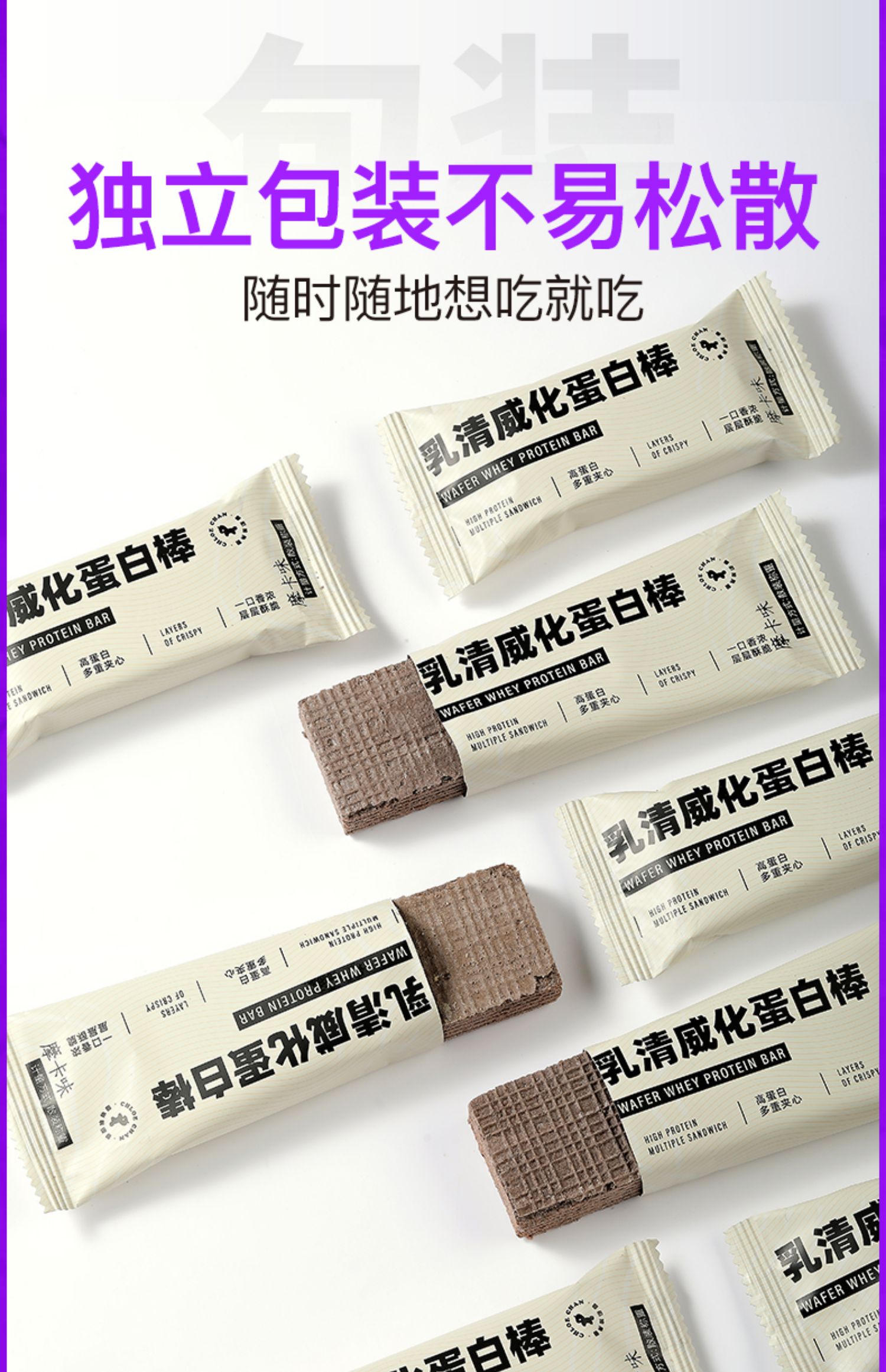 威化乳清蛋白棒能量健身代餐饱腹零食品无糖精热量脂肪卡饼干低0