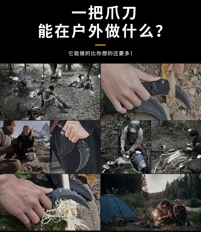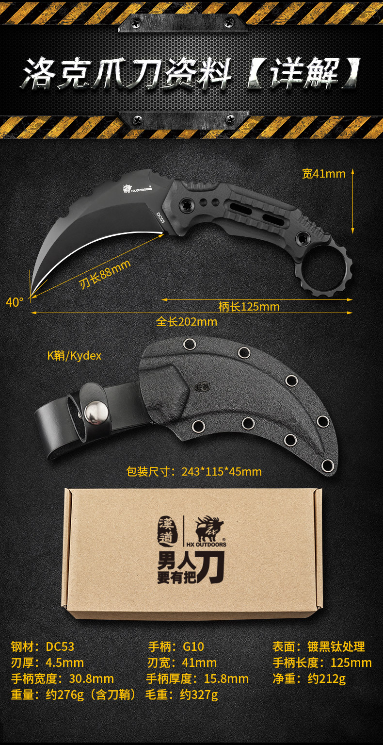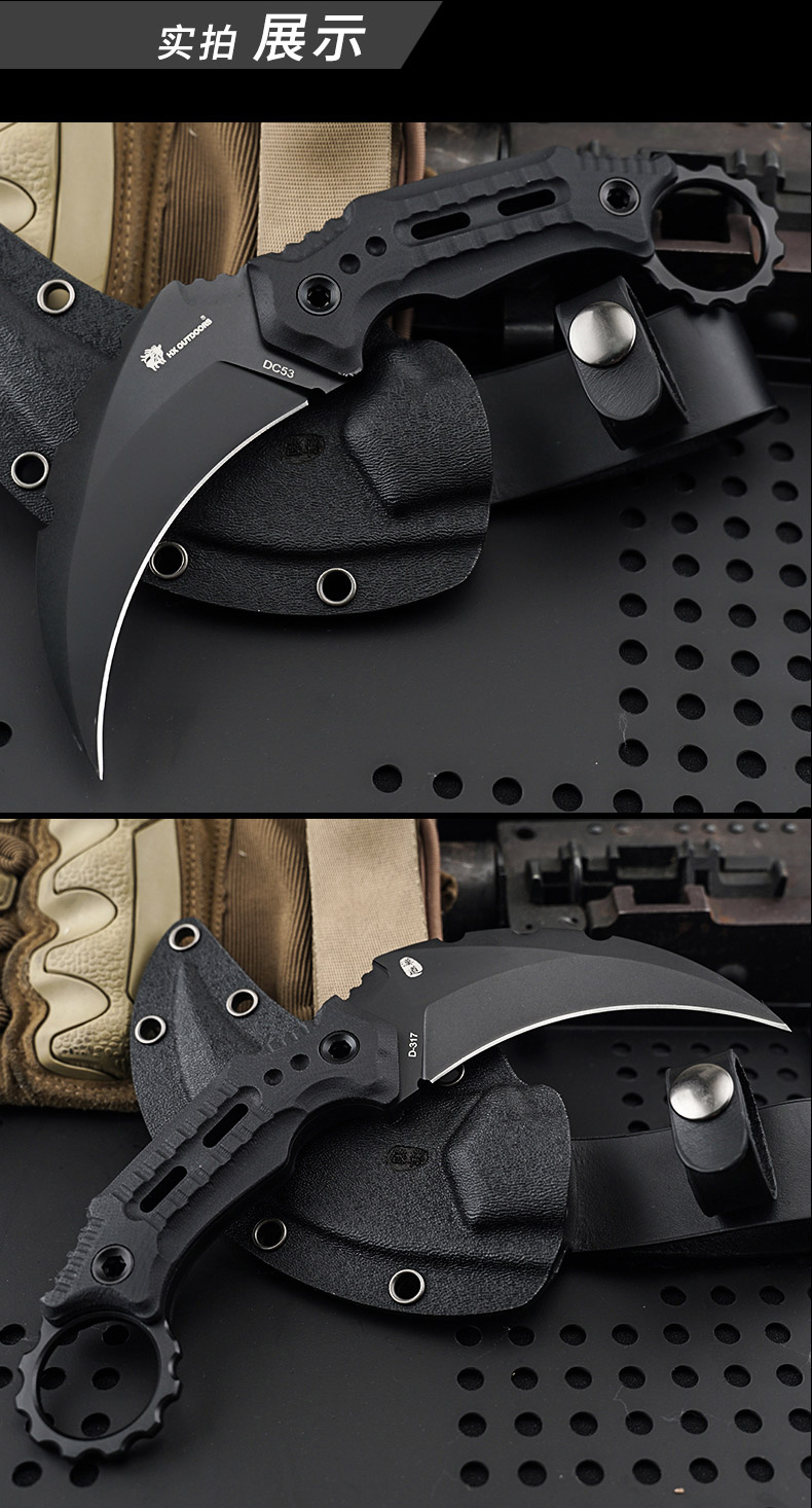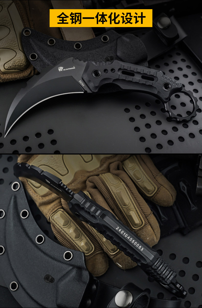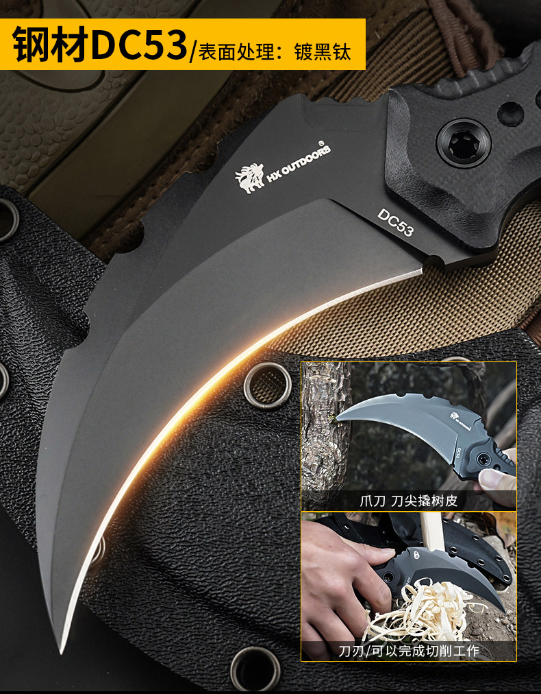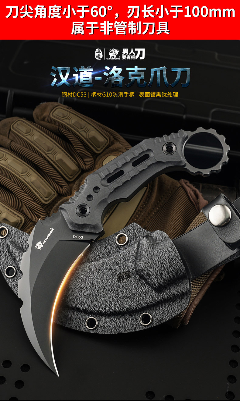 汉道【洛克爪刀】DC53钢户外小弯刀荒野求生防身小刀锋利高硬度随身刀战术爪刀
