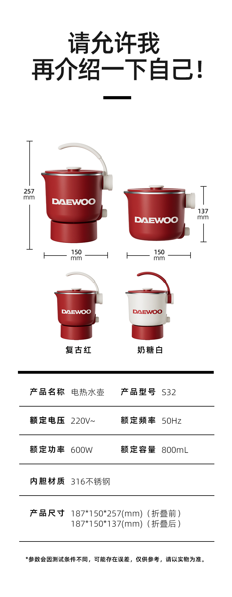 DAEWOO 大宇便携式电热水壶S32