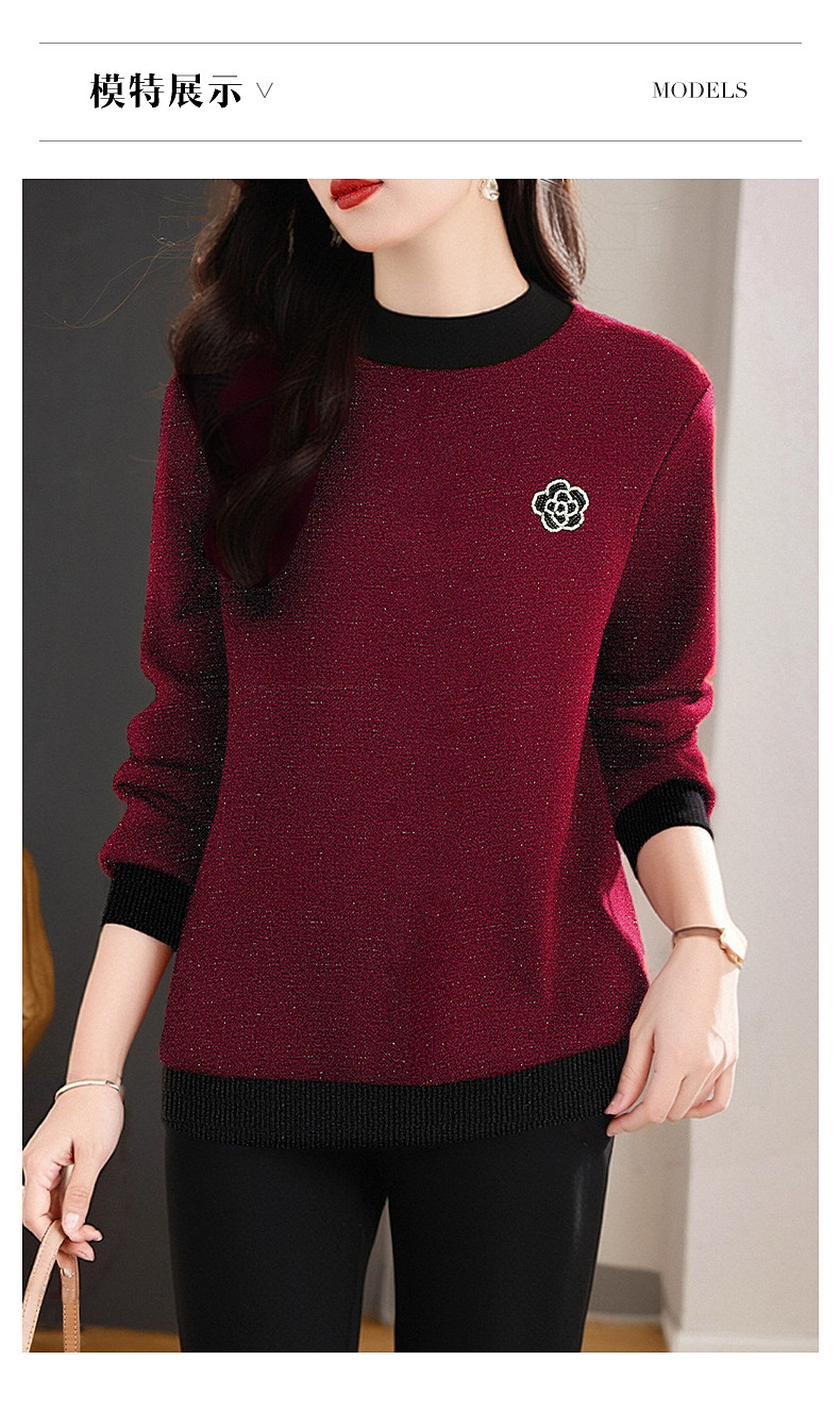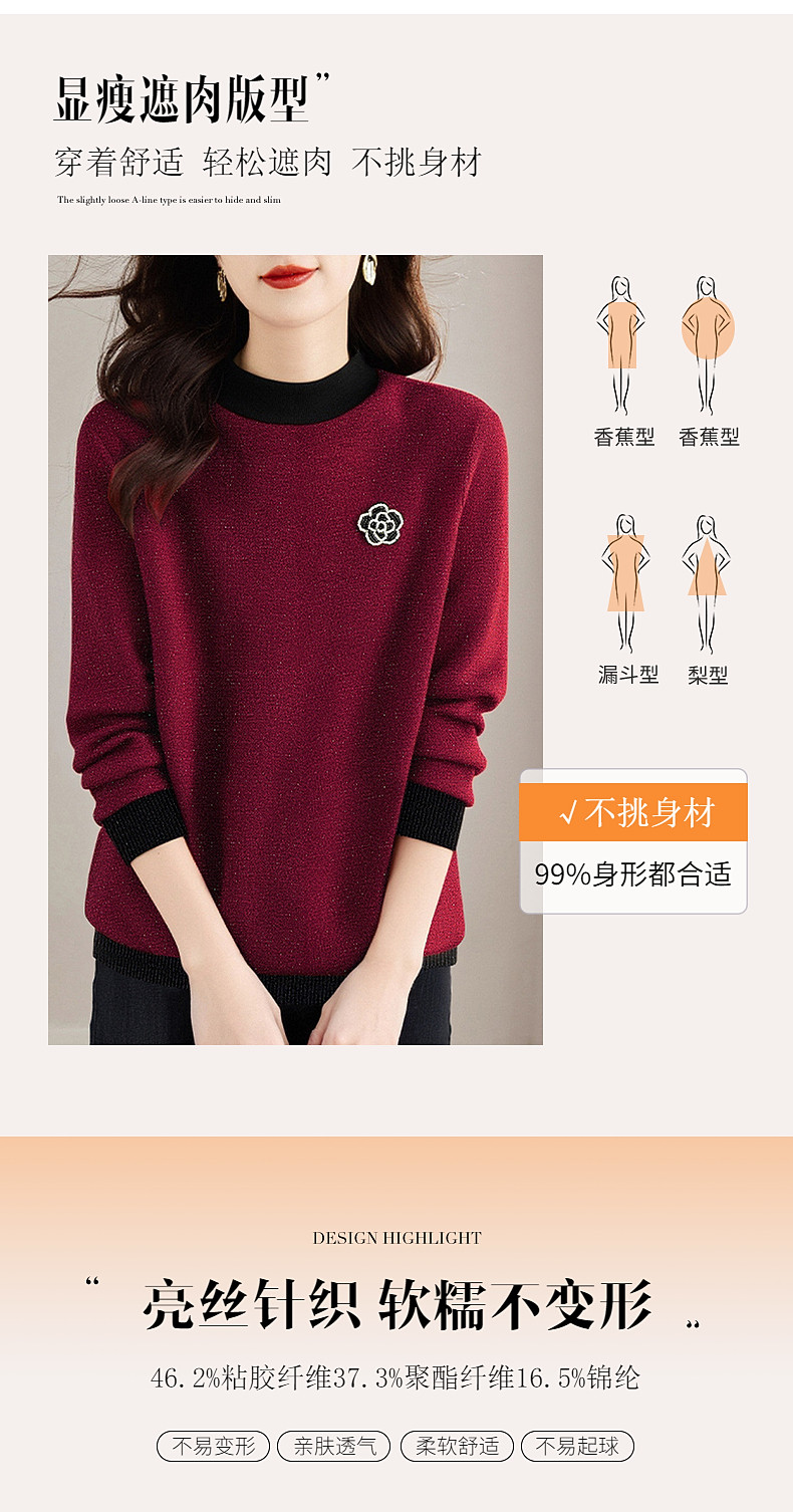 圣诞红色女士毛衣半高领打底衫秋冬季新款中年妈妈上衣大码针织衫