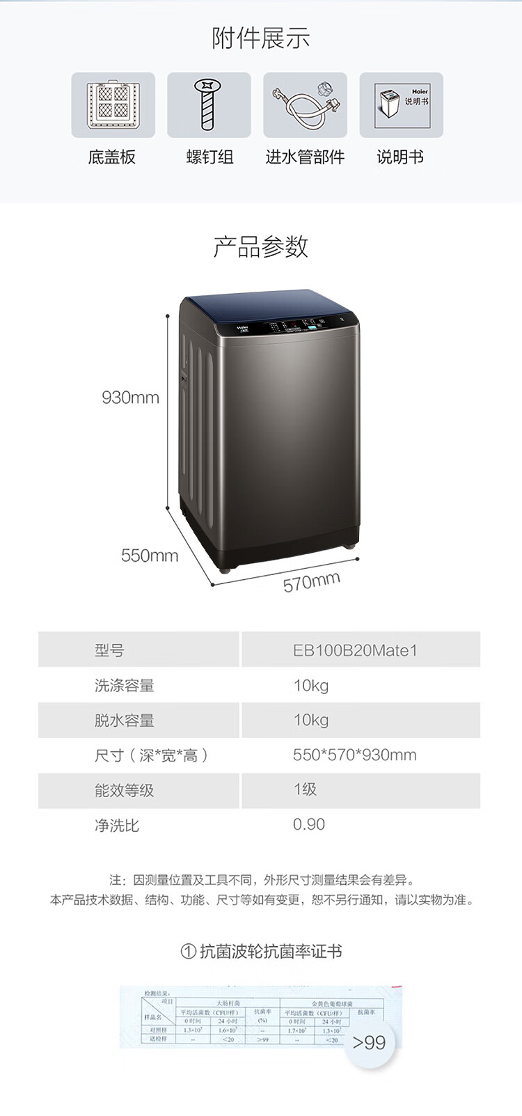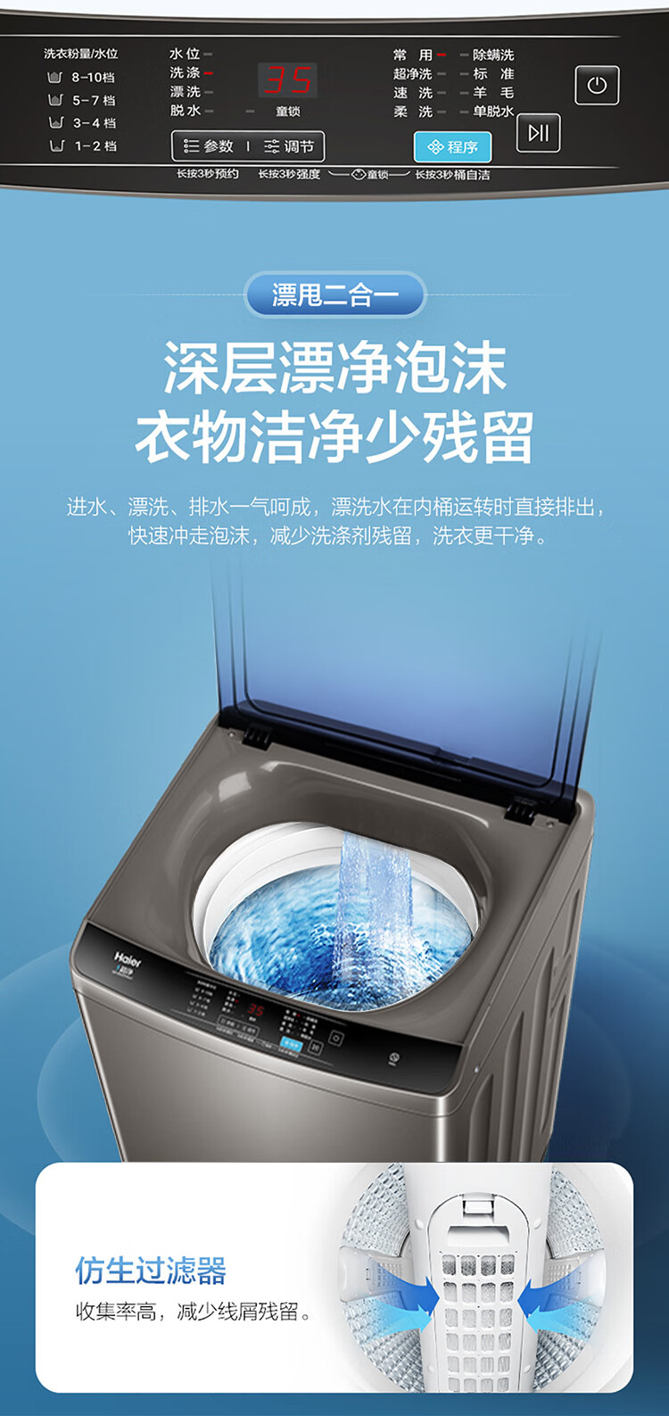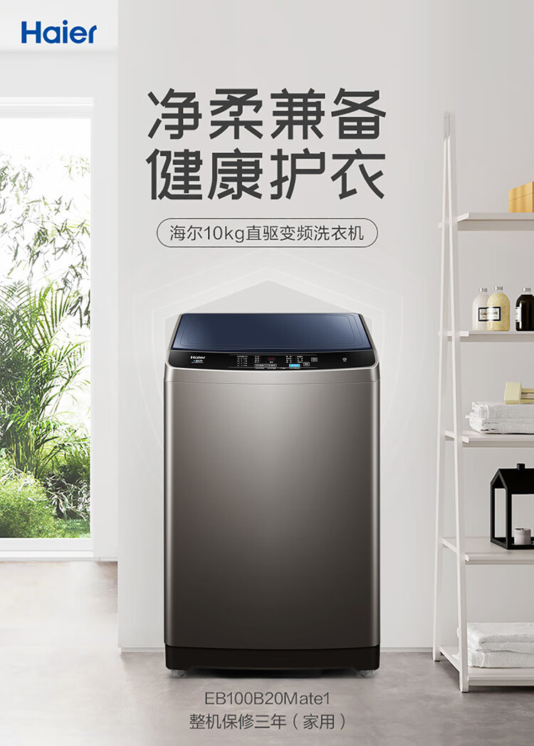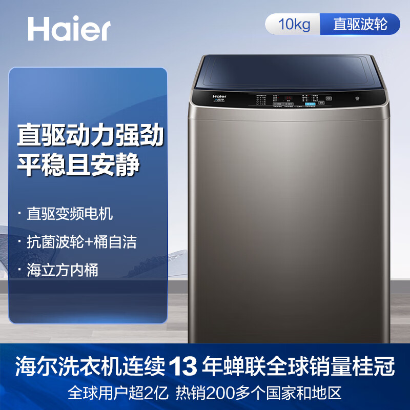 海尔(Haier) 波轮洗衣机全自动家电 10公斤直驱变频 蝶型水流 除螨洗 EB100B20Mate1