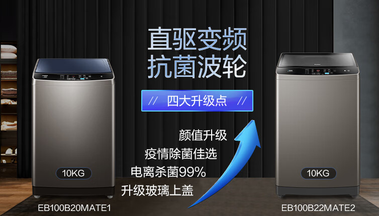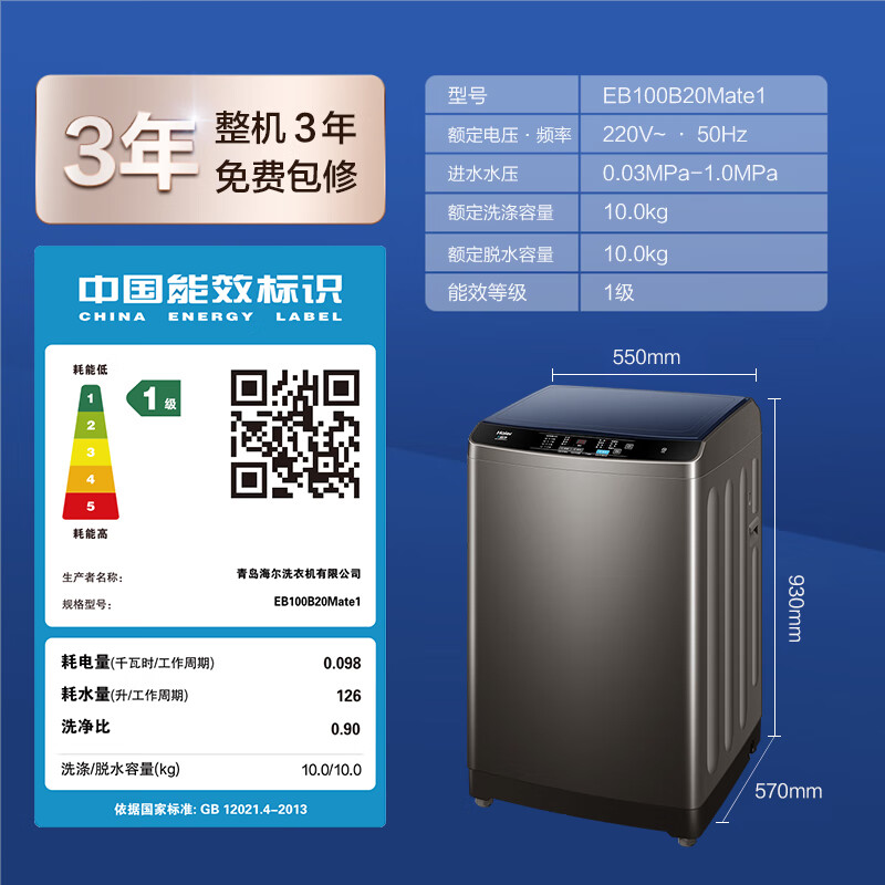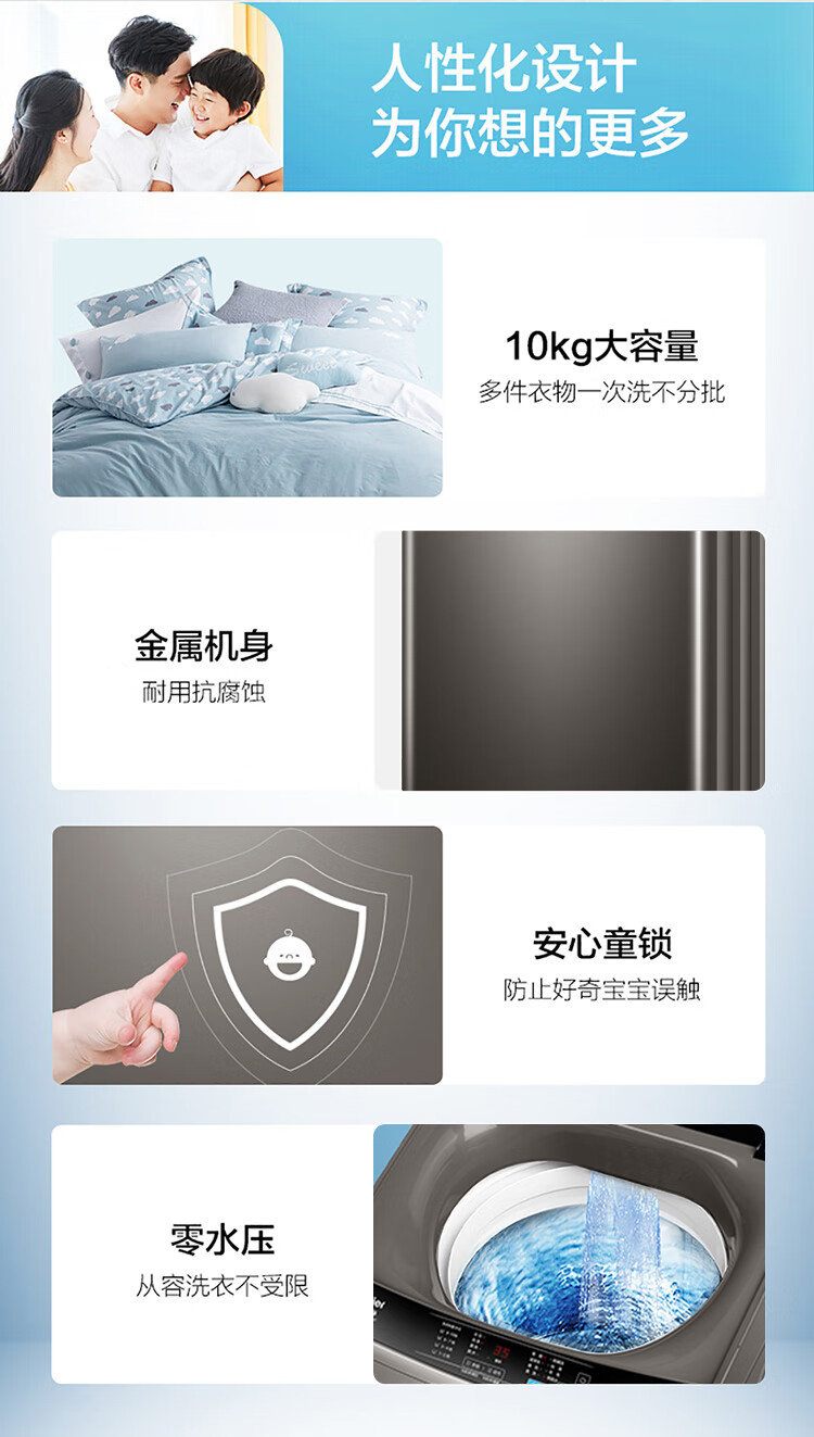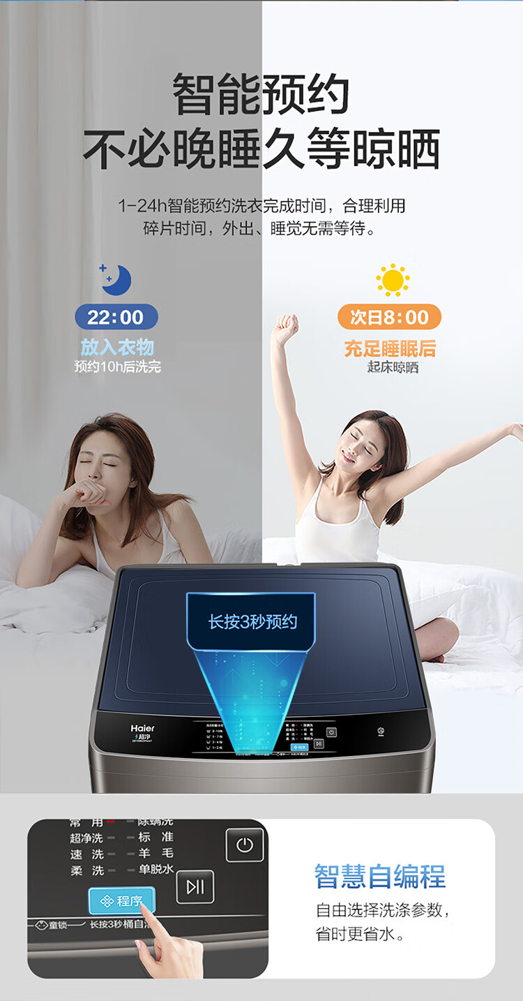 海尔(Haier) 波轮洗衣机全自动家电 10公斤直驱变频 蝶型水流 除螨洗 EB100B20Mate1