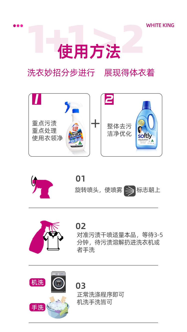 衣领净强力去污澳洲进口WhiteKing洁白王衣领袖口洗衣喷雾500ml