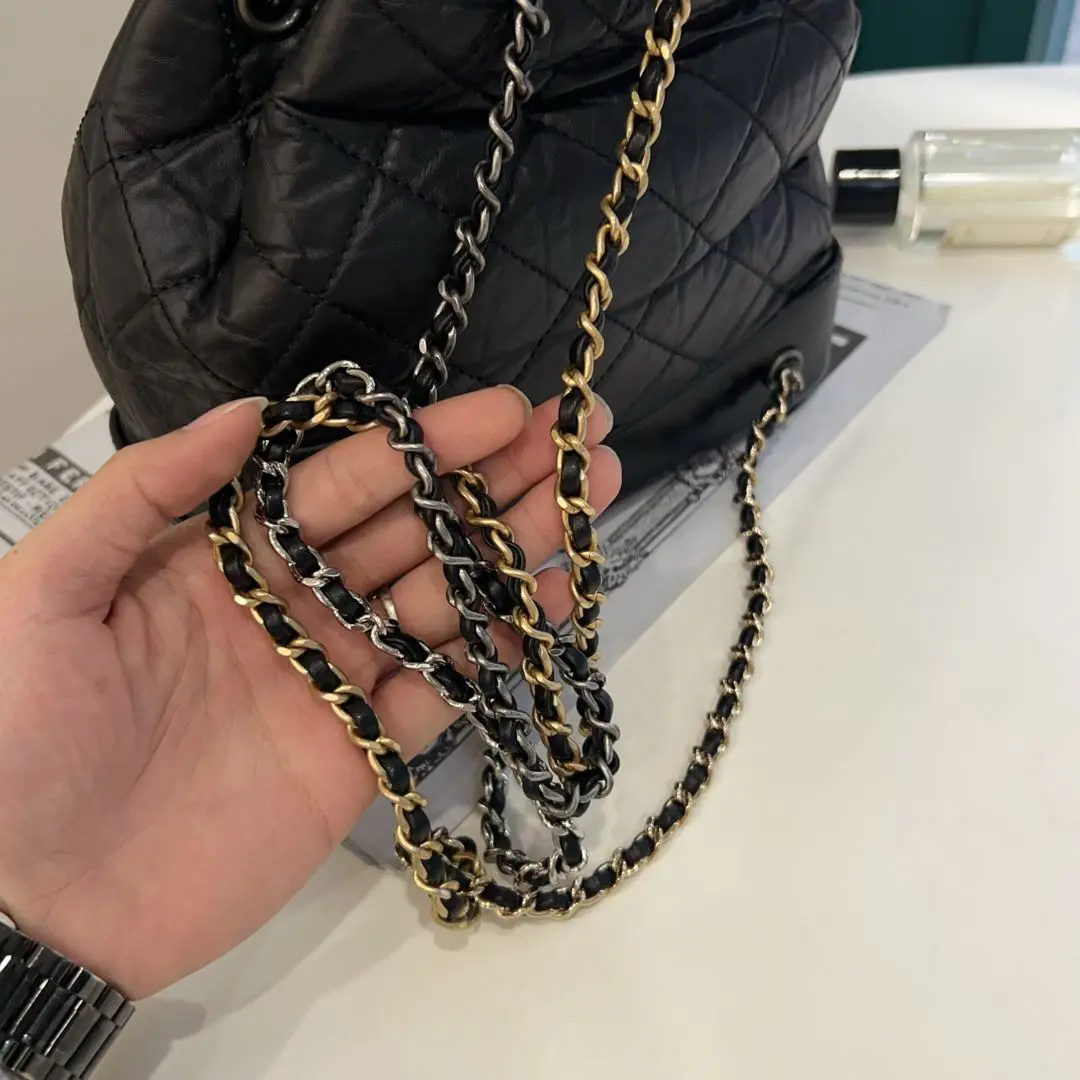 【商品详情】正品二手 Chanel 流浪 双肩包🎒98新 22*23 镭射30开 配件:卡 票 防尘袋。hobo风格极强