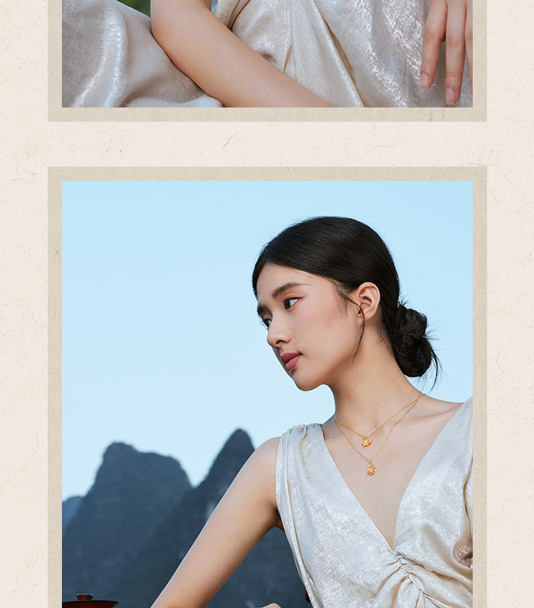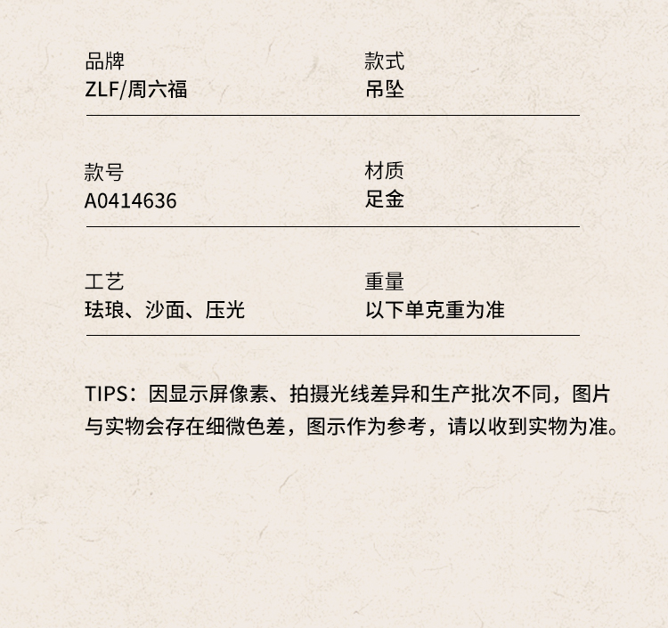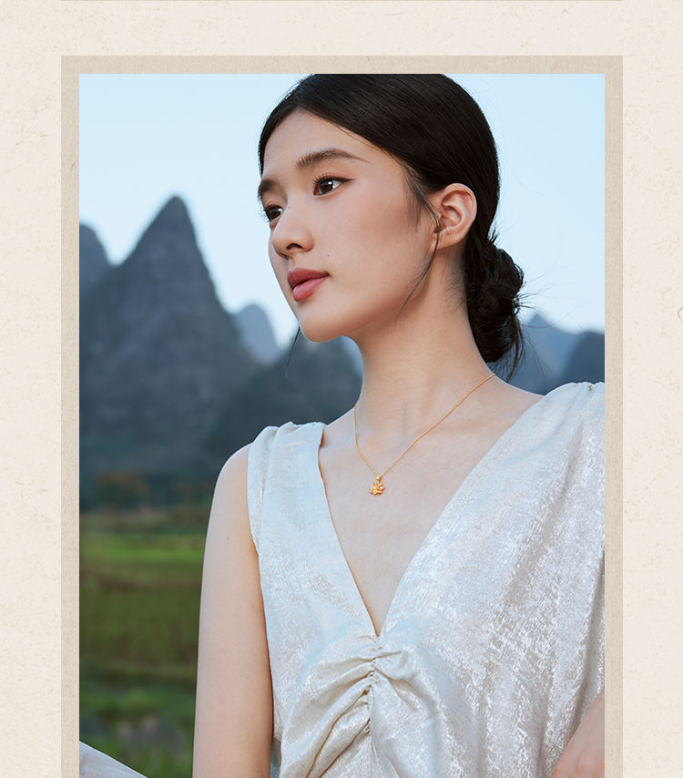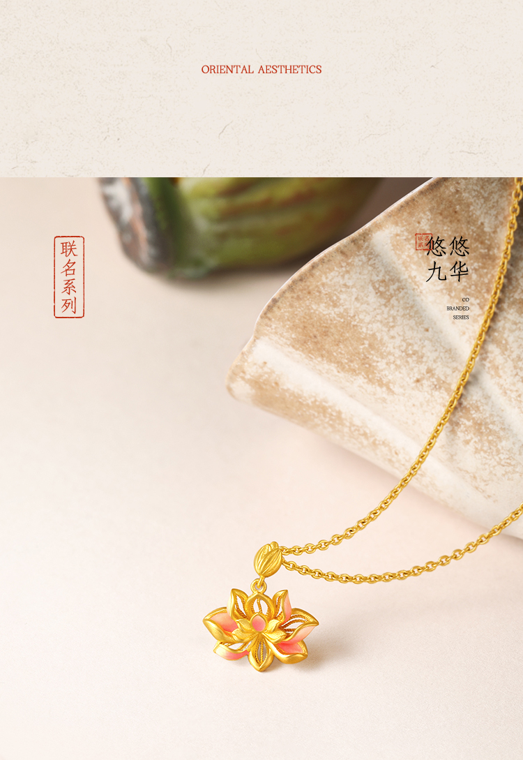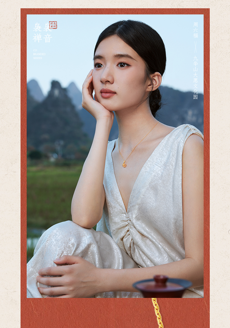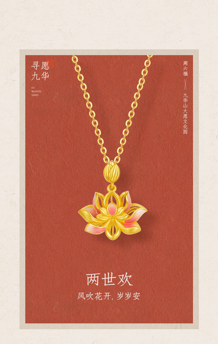 周六福精品足金两世欢计价黄金吊坠九华山系列节日礼物