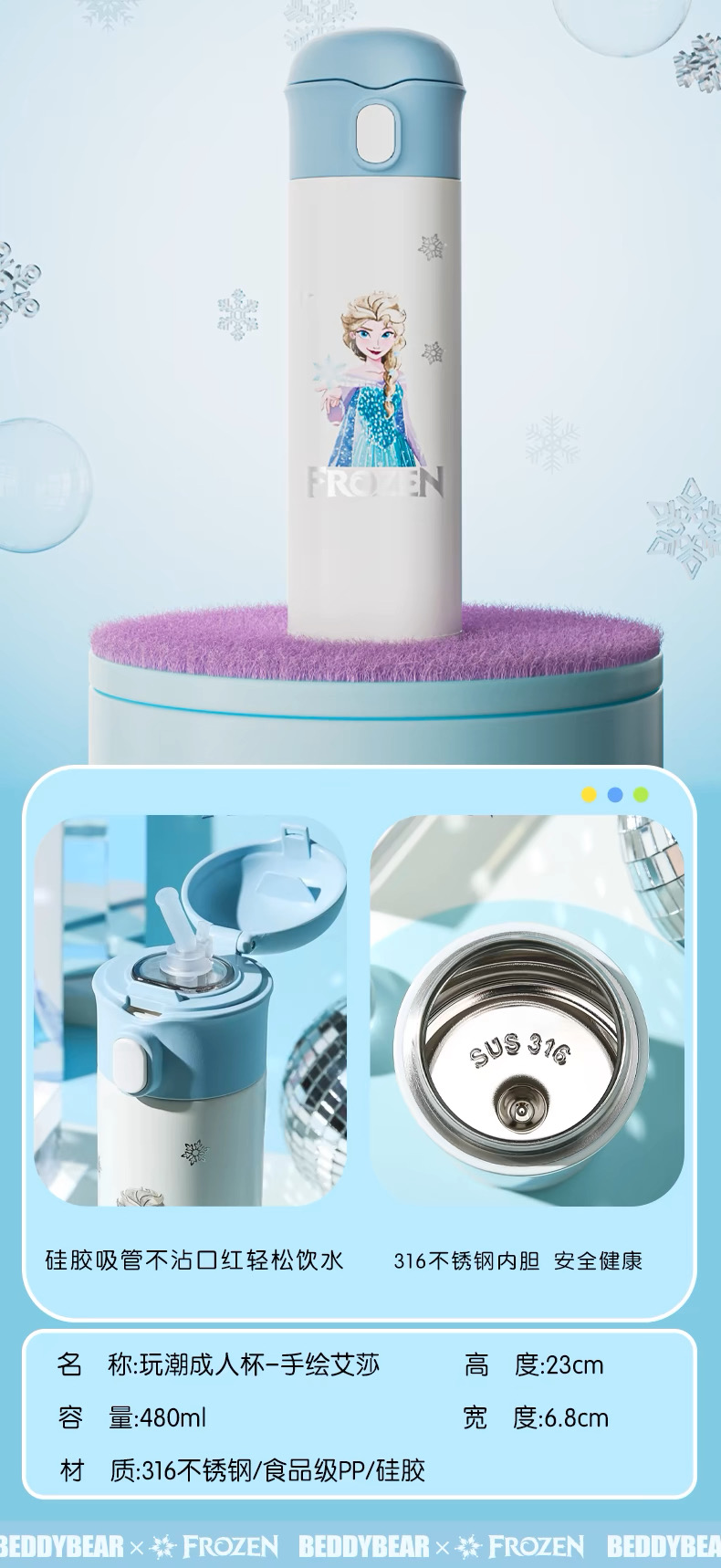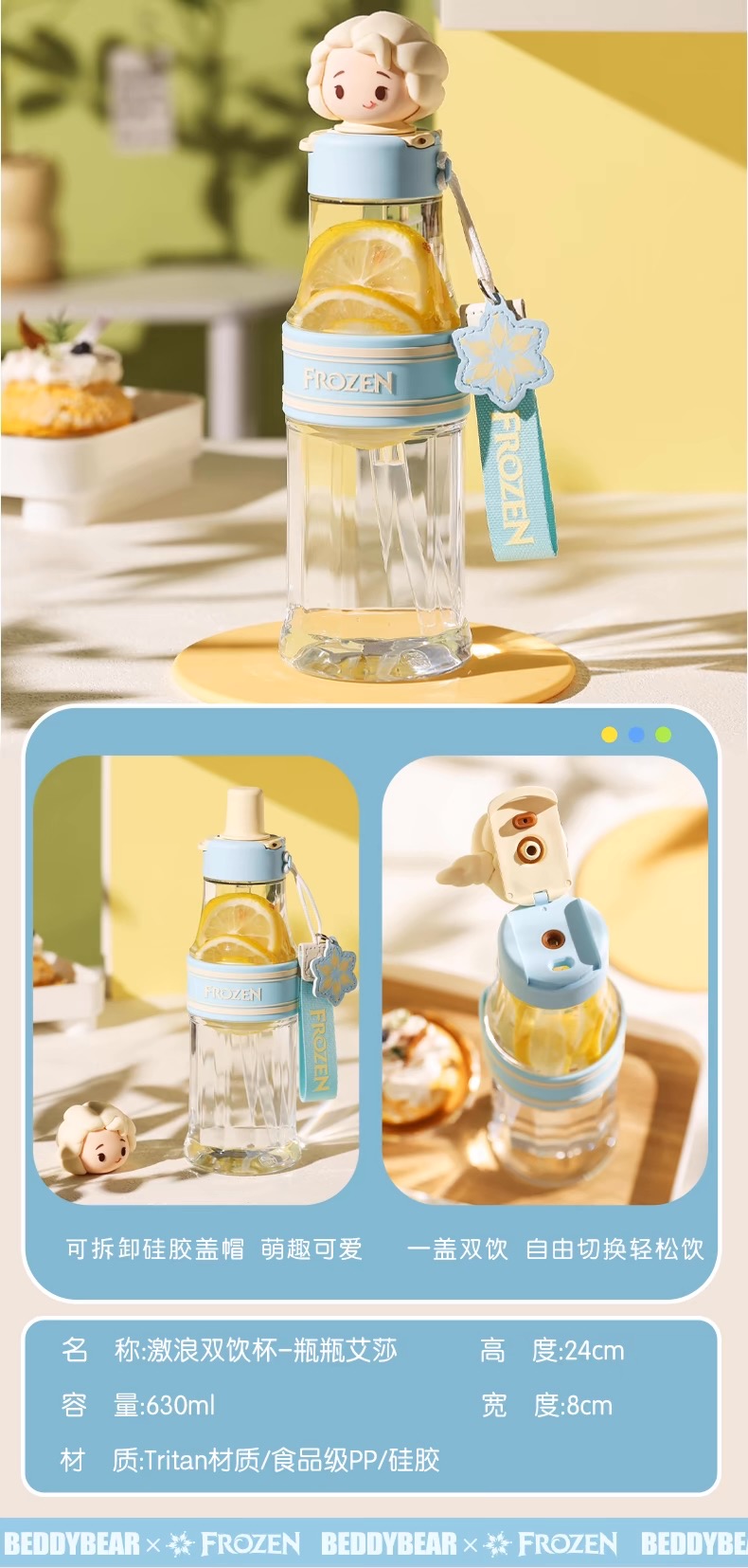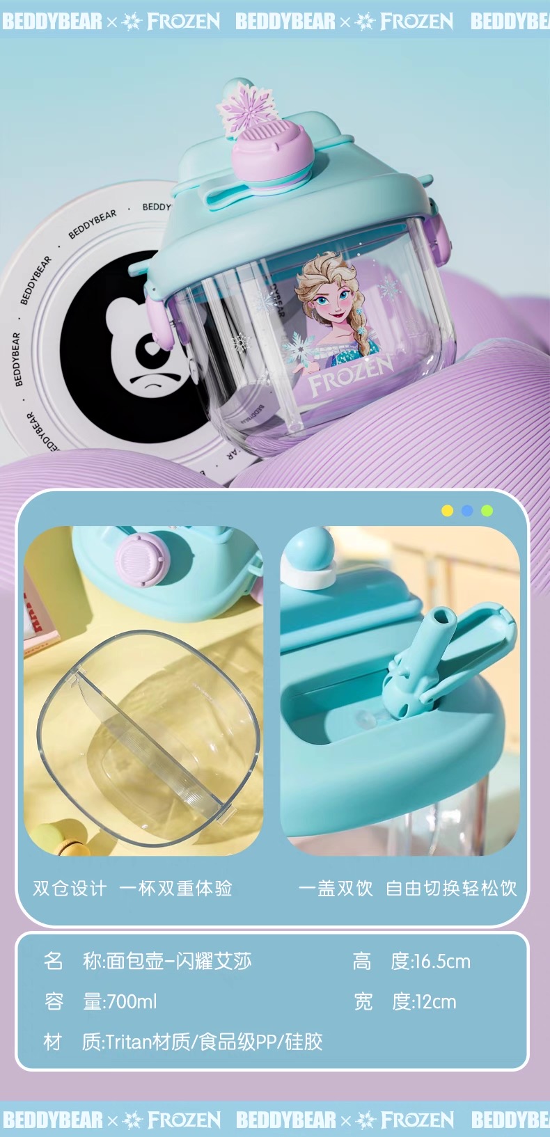 【品牌直发】【杯具熊迪士尼公主女王联名系列】 运动杯保温杯 塑料杯冷萃杯双饮杯咖啡随手杯