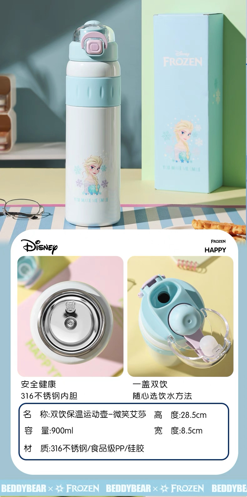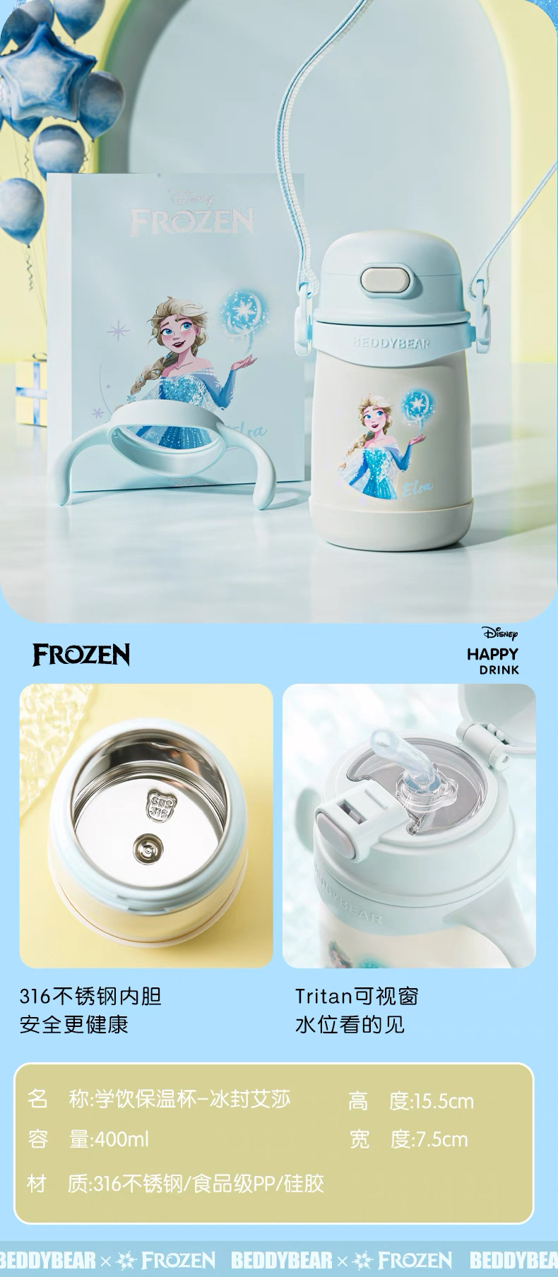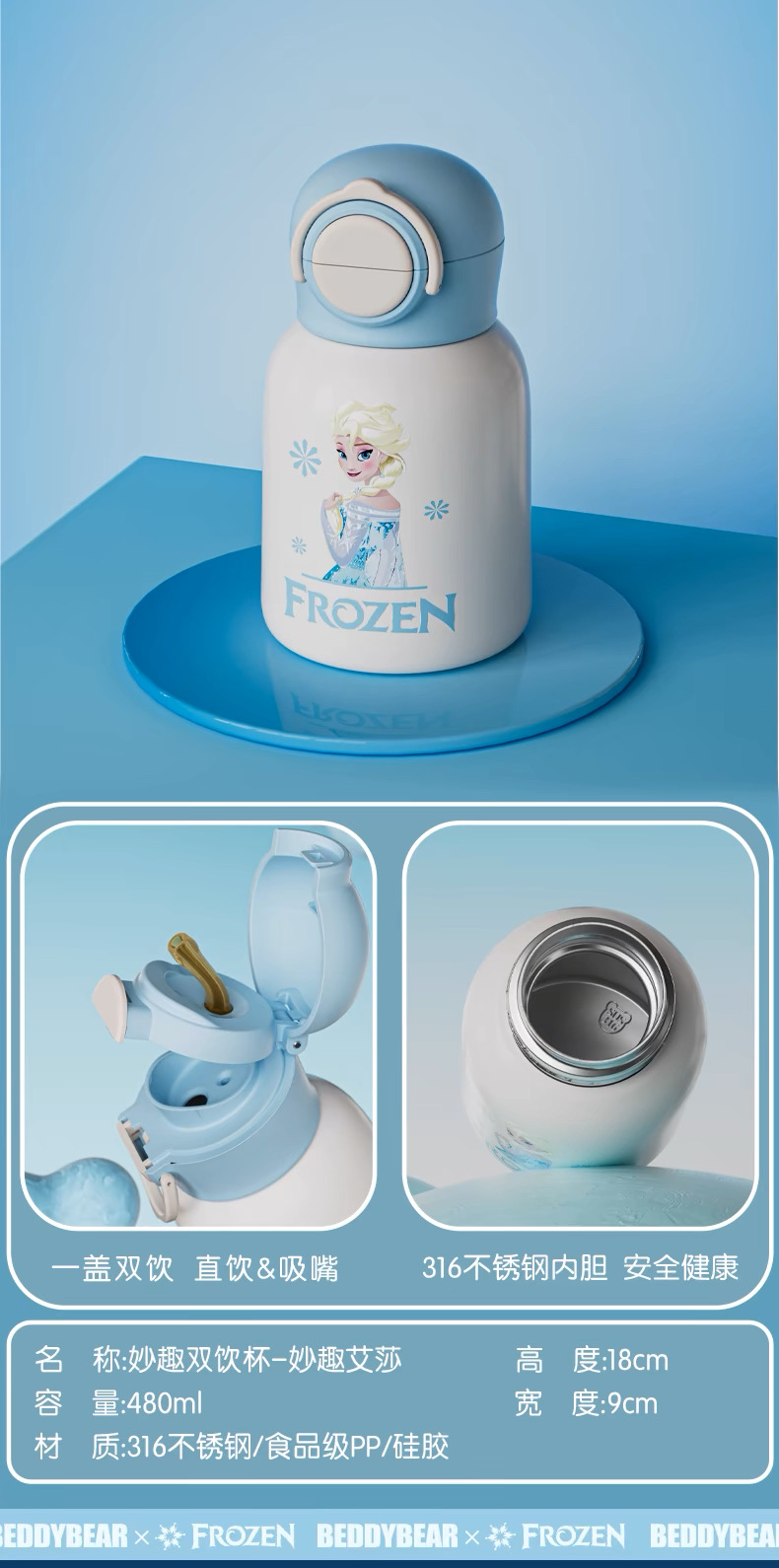 【品牌直发】【杯具熊迪士尼公主女王联名系列】 运动杯保温杯 塑料杯冷萃杯双饮杯咖啡随手杯