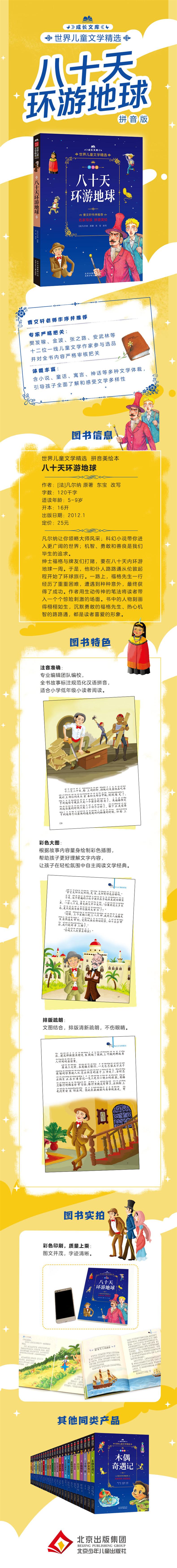 绅士福格与牌友们打赌,要在八十天内环游地球一周。于是,他和仆人路路通从伦敦启程开始了环球旅行。一路上,福格先生一行经历了重重困难,遭遇到种种意外,最终获得了成功。作者用生动传神的笔法将读者带入一个个惊险刺激的场面。书中的人物刻画得栩栩如生,沉默勇敢的福格先生、热心机智的路路通,都是读者喜爱的形象。