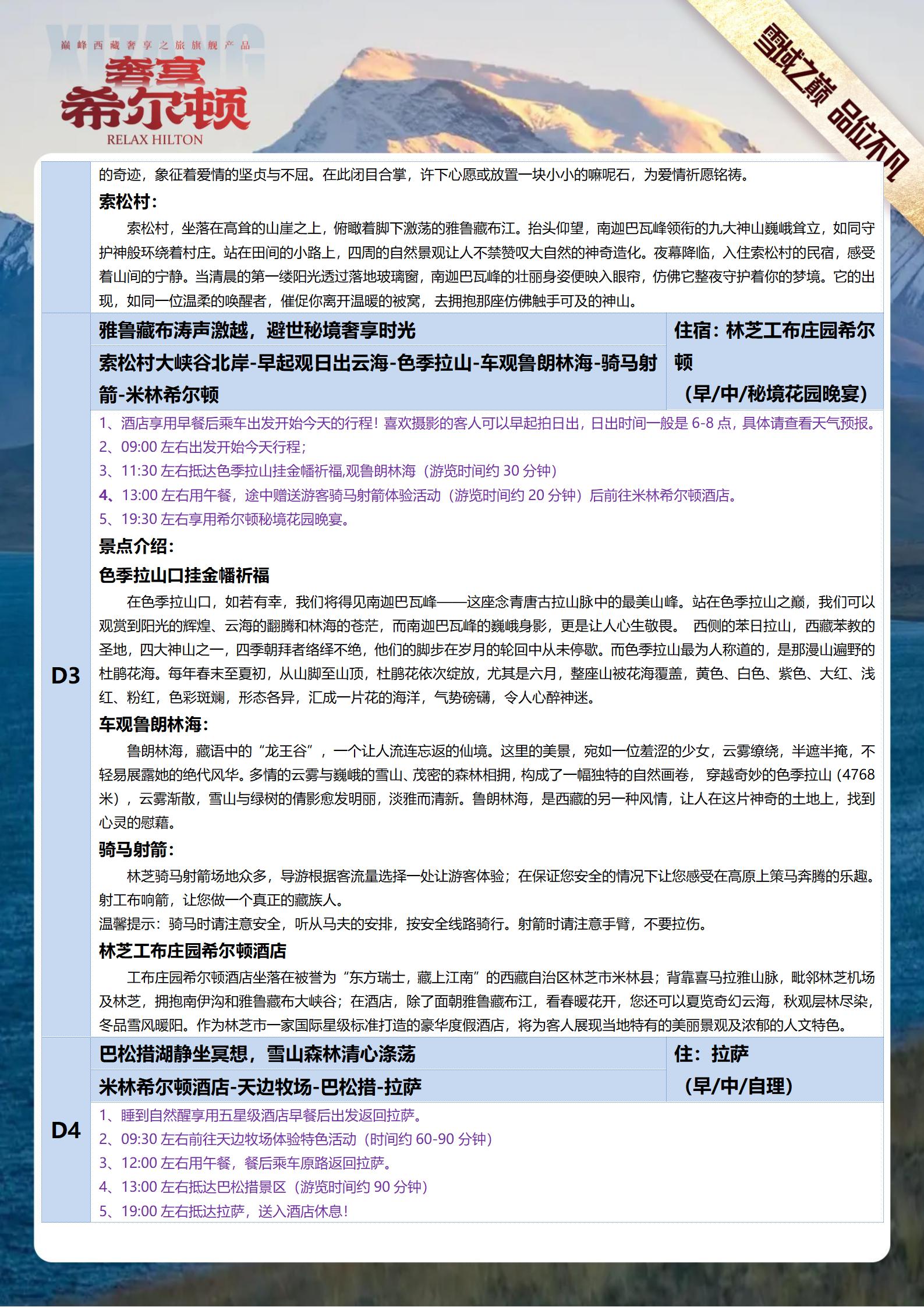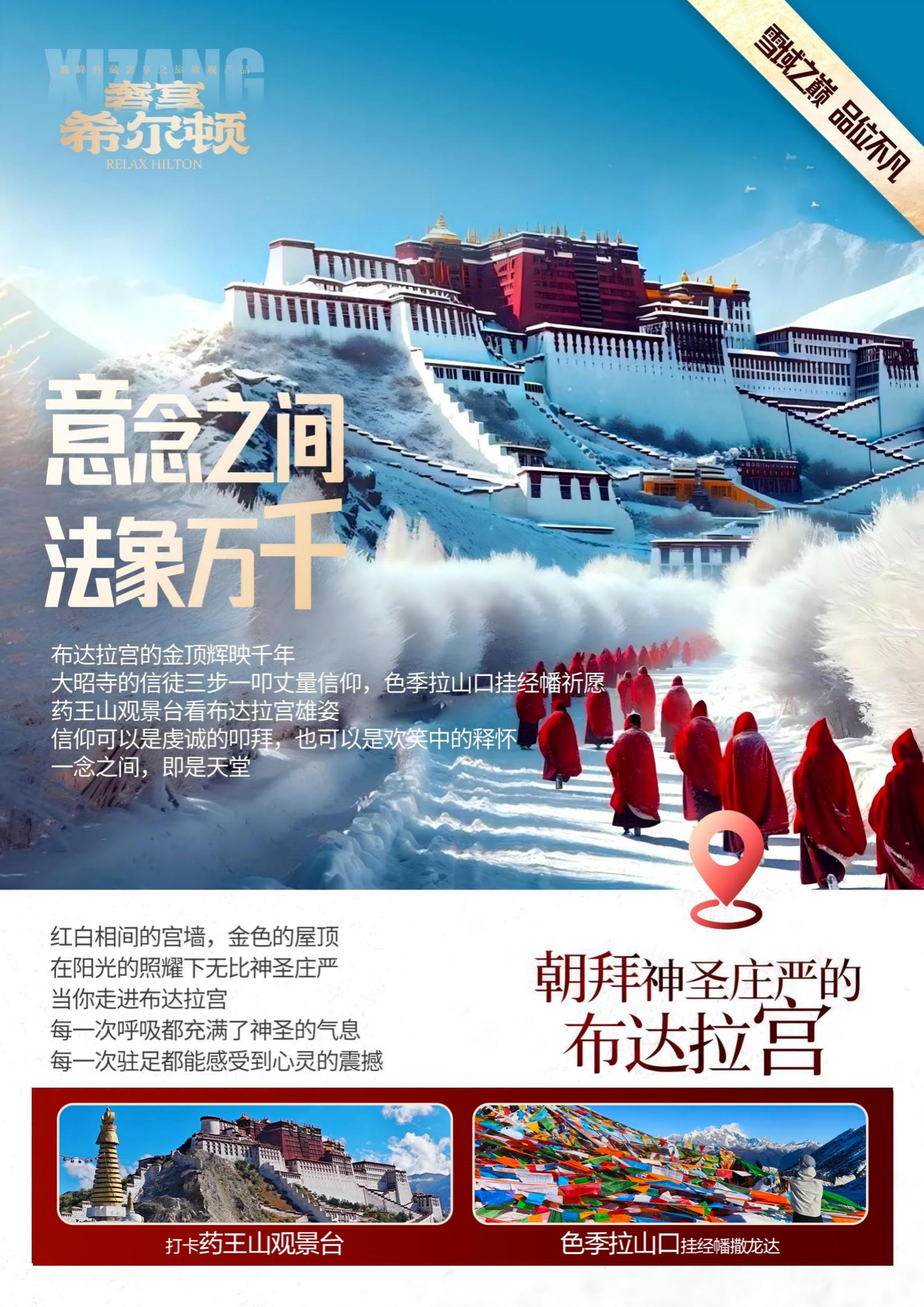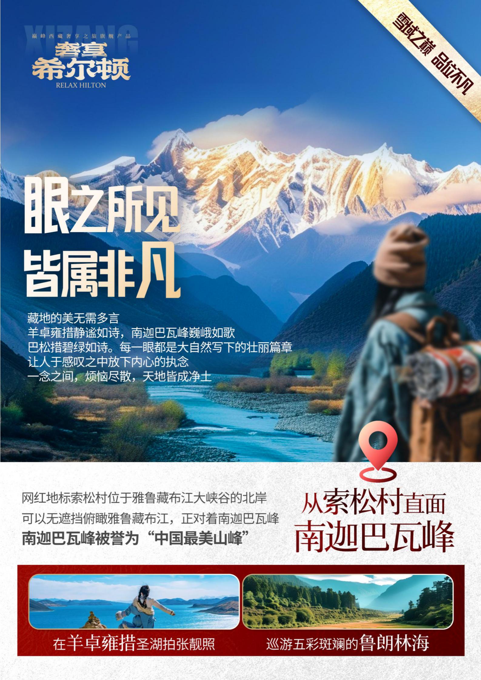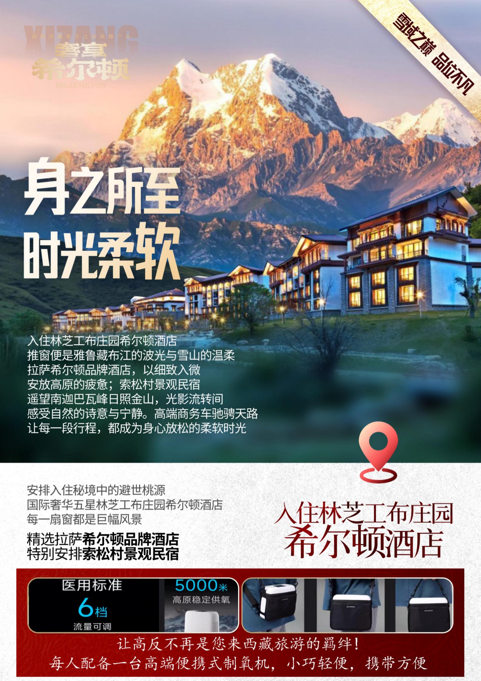 <西藏四飞7日游(2-15人精品小团)>雅尼湿地、雅鲁藏布大峡谷(南岸)、索松村、骑马射箭、林芝工布庄园希尔顿酒店、天边牧场、巴松错、旅拍圣湖羊卓雍措、布达拉宫