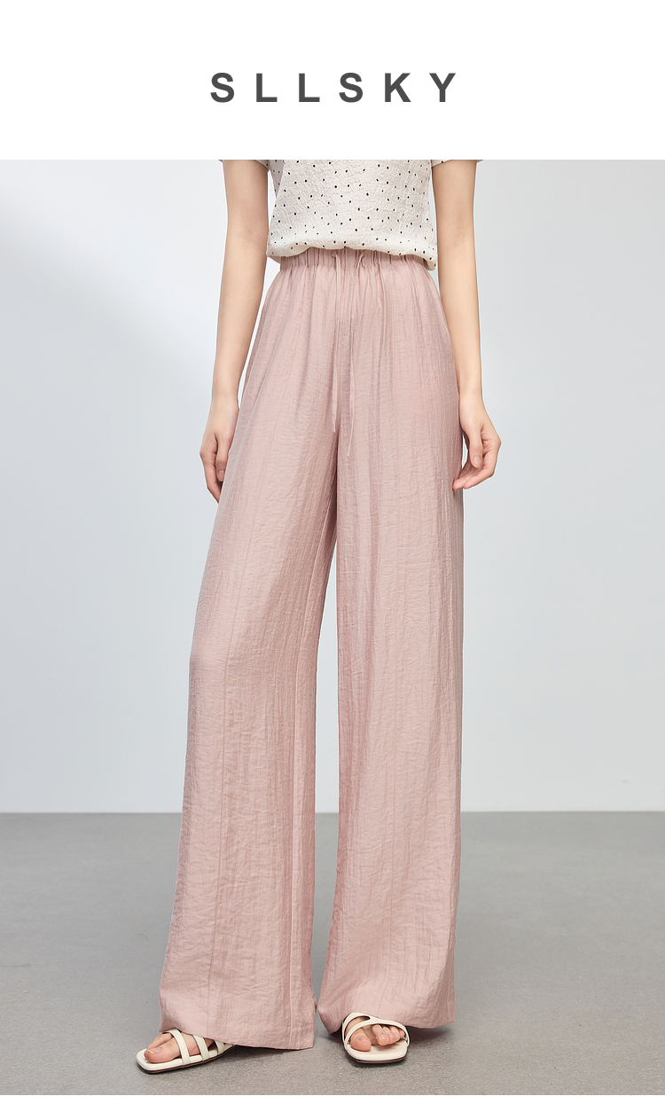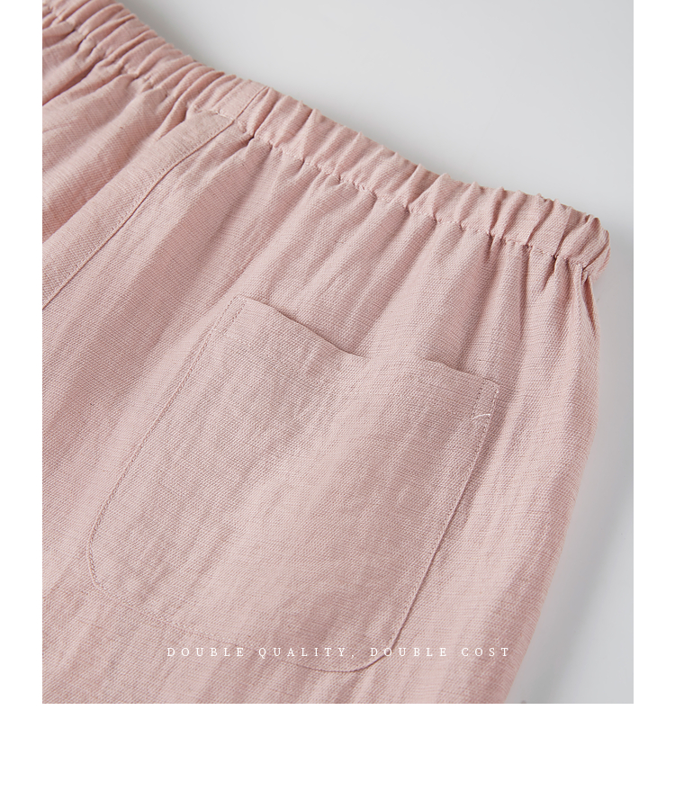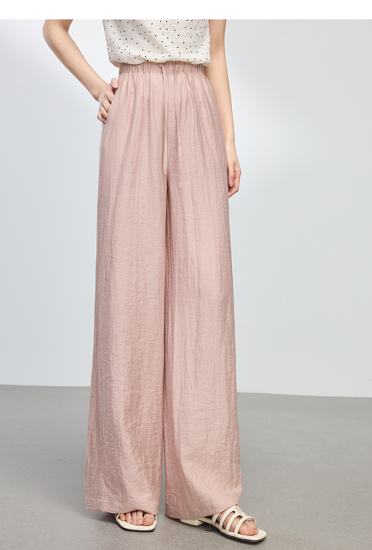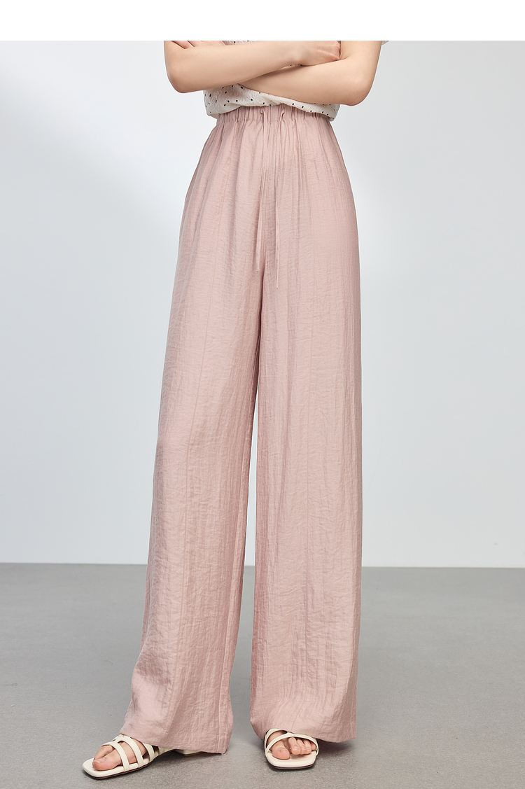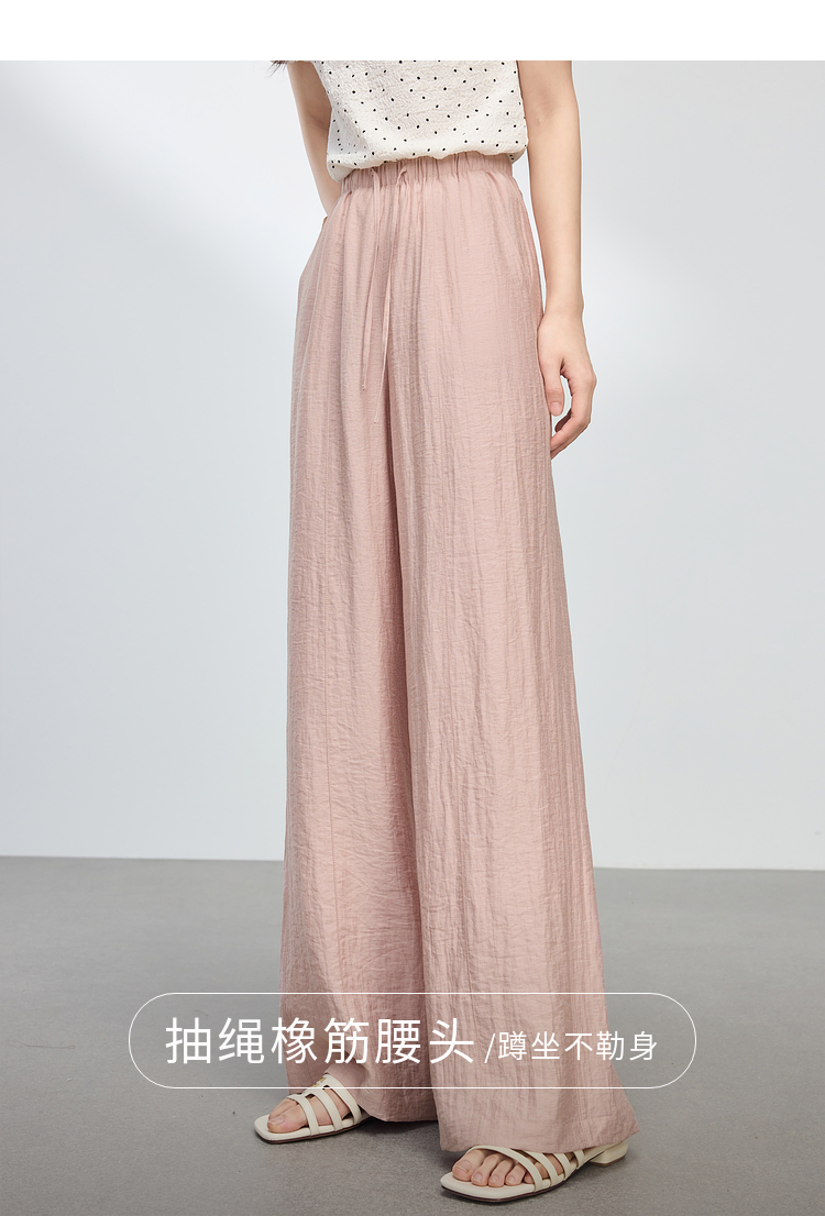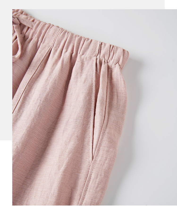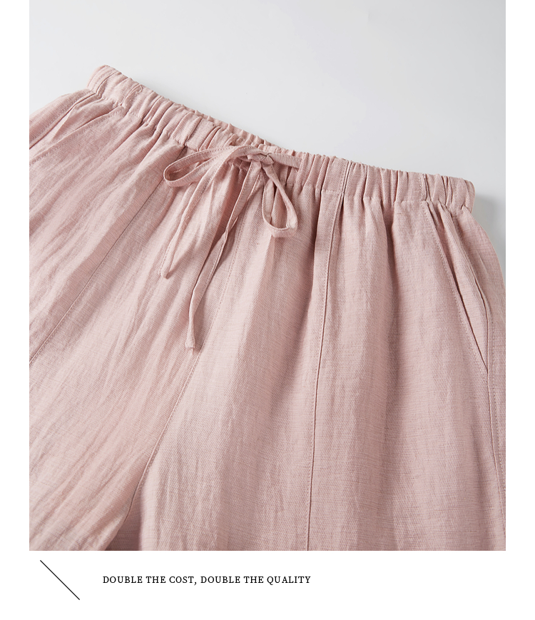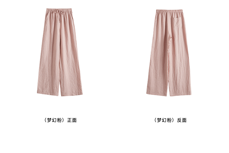 【专属特价】熙世界粉色亚麻阔腿裤女夏季薄淡人穿搭高腰宽松防蚊休闲直筒长裤