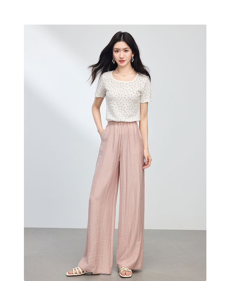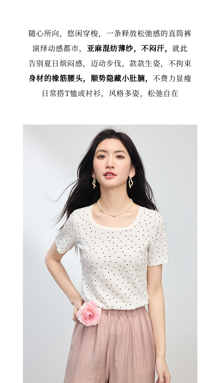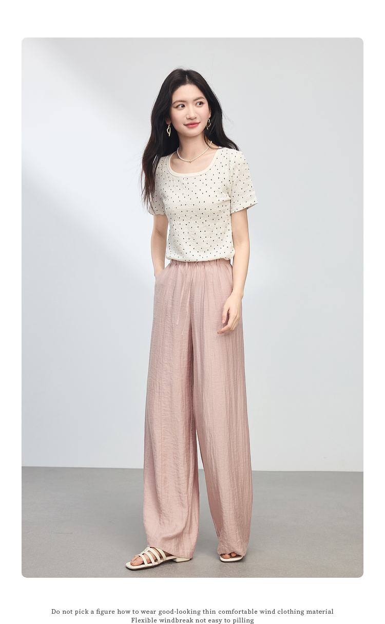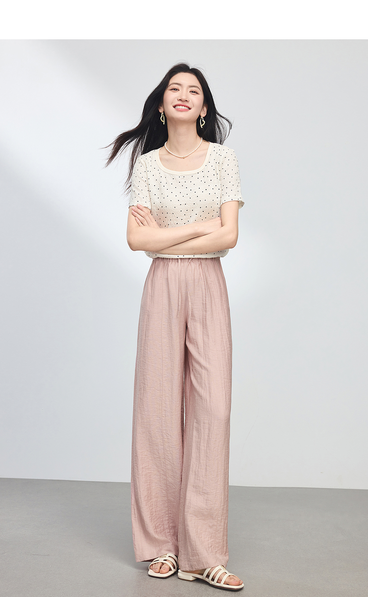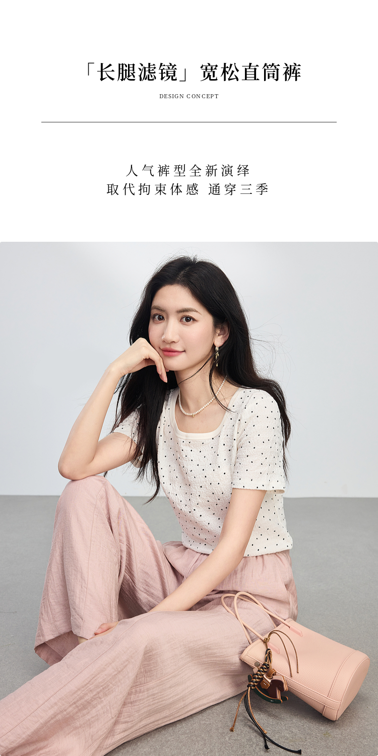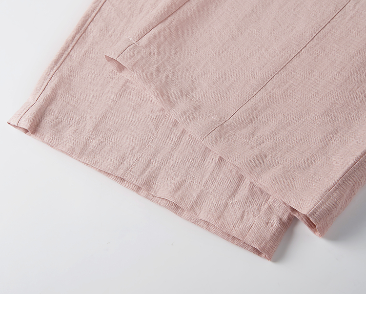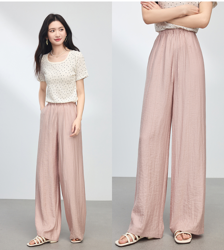 【专属特价】熙世界粉色亚麻阔腿裤女夏季薄淡人穿搭高腰宽松防蚊休闲直筒长裤